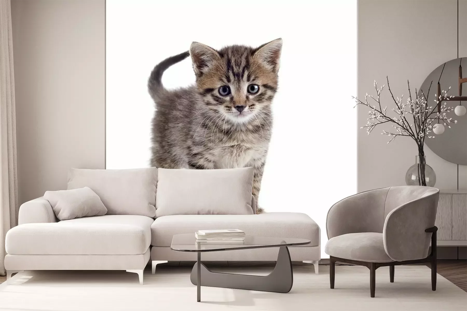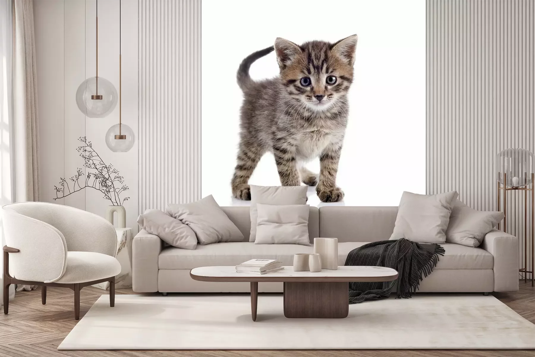 Papier peint  Chat à rayures sur fond clair