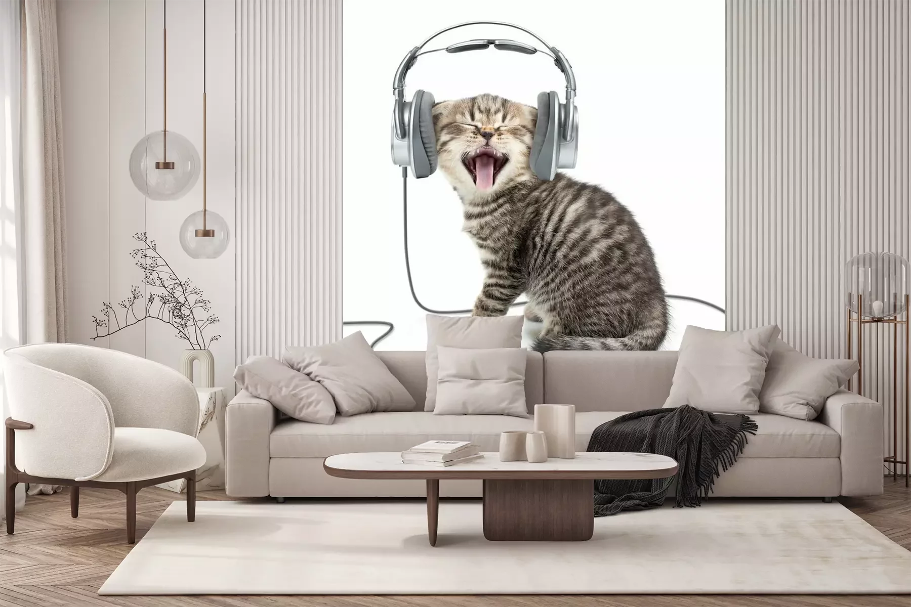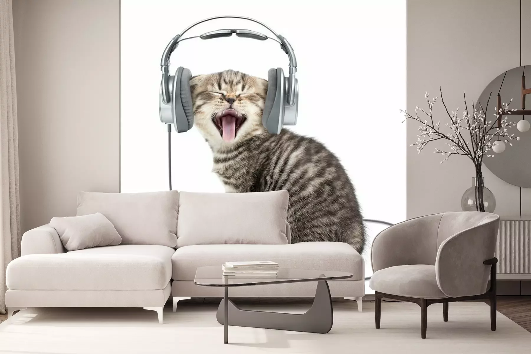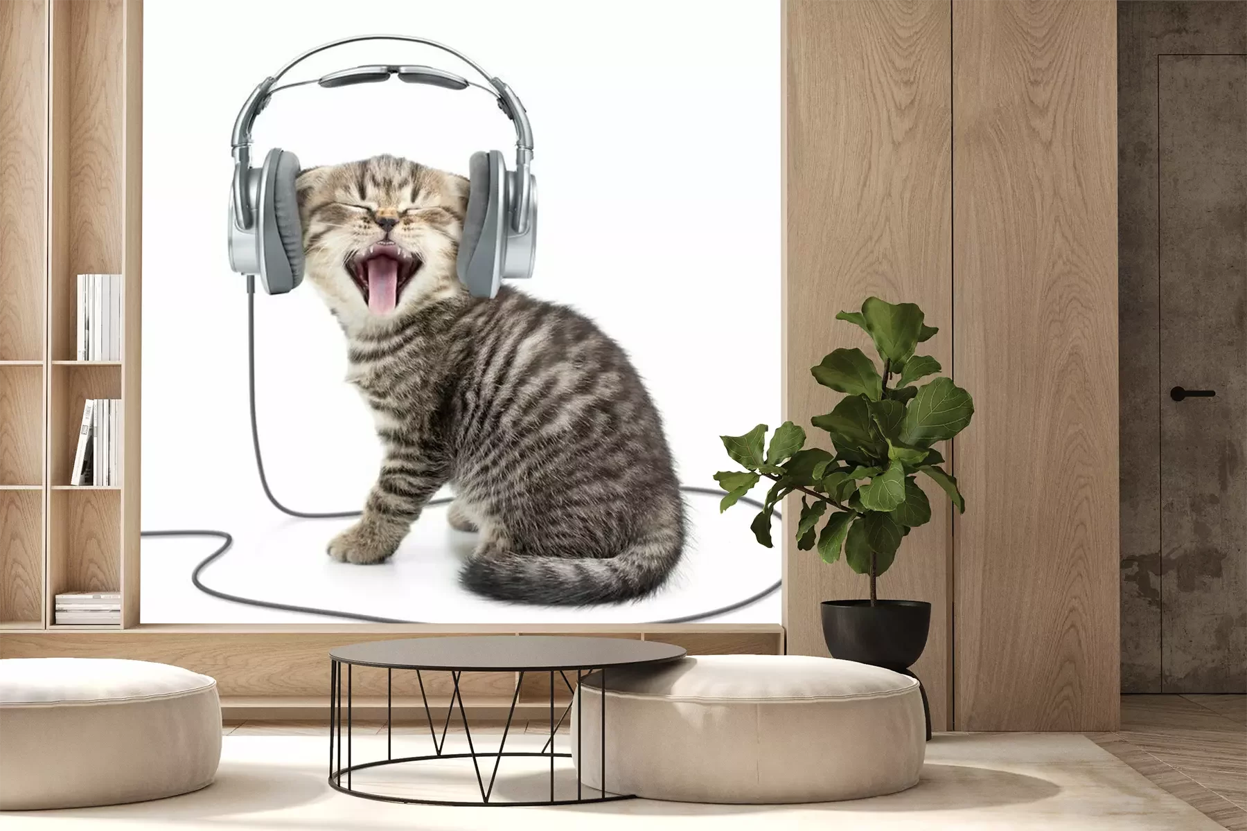 Papier peint  Chat qui bâille portant un casque