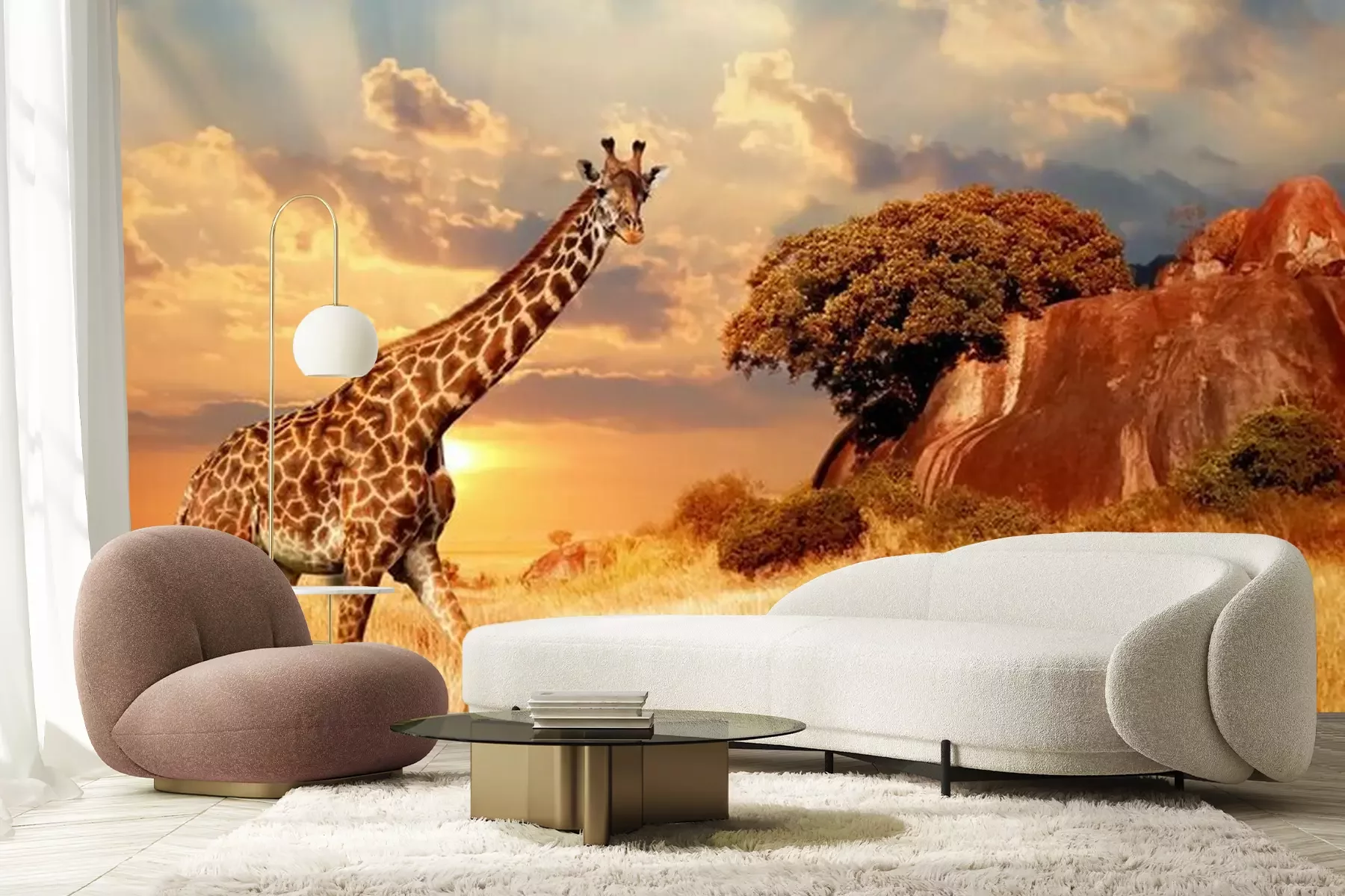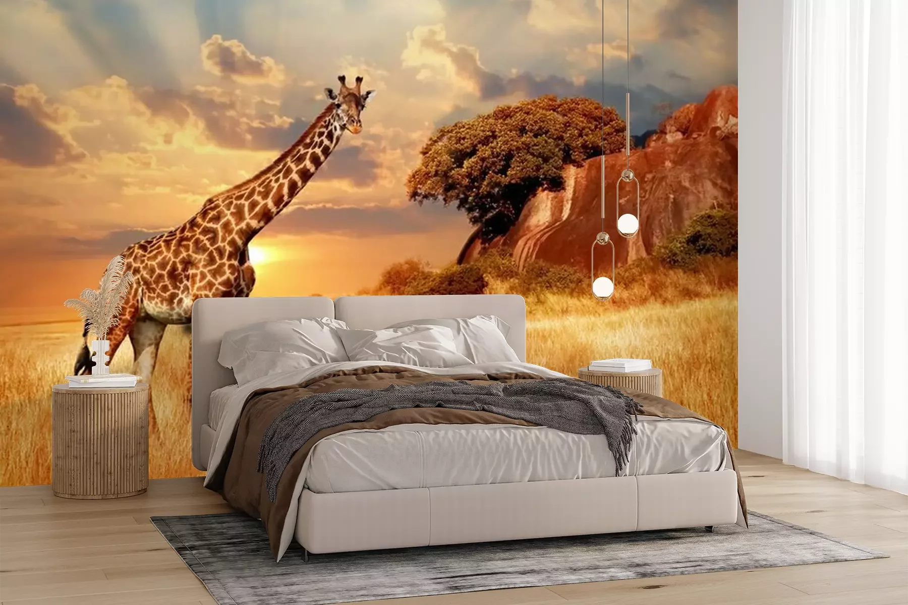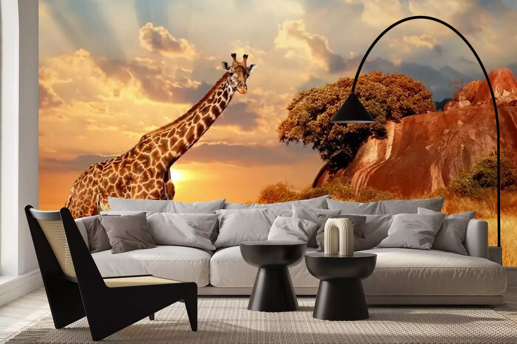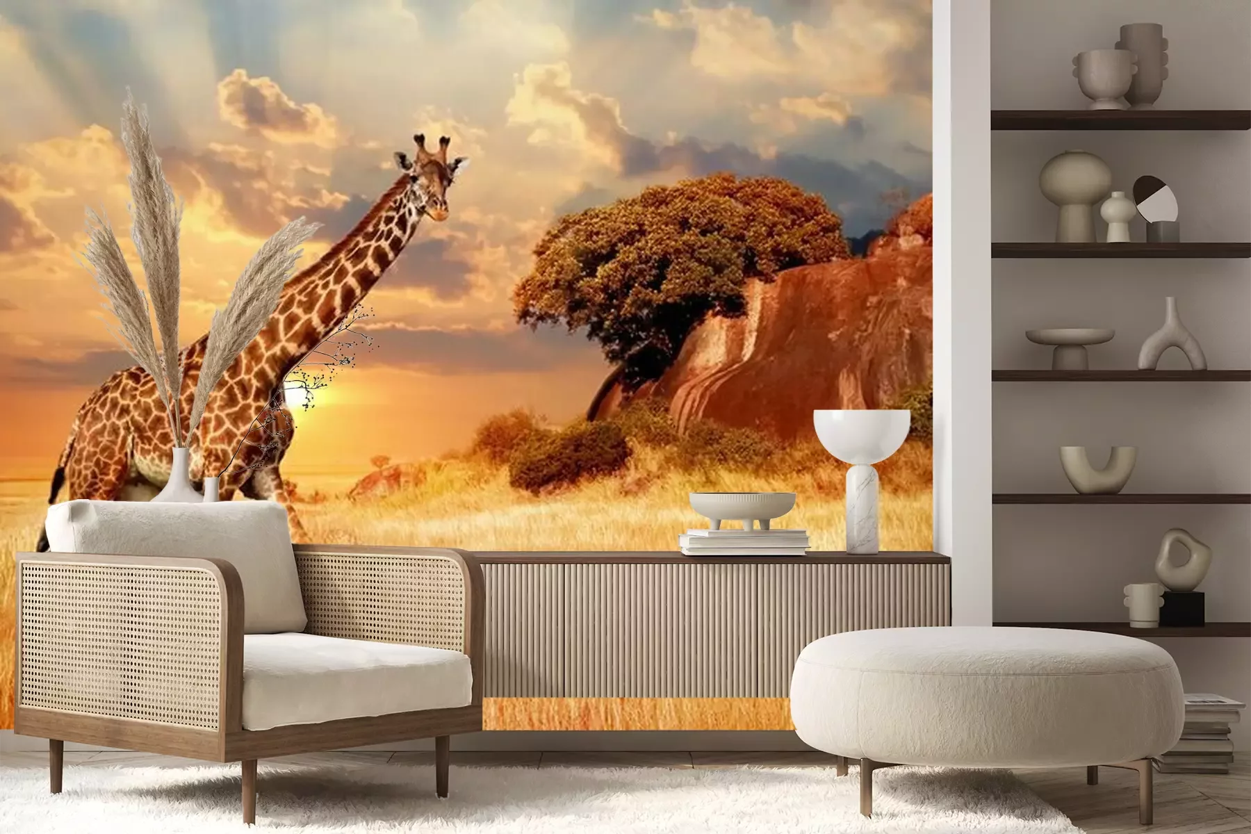 Animaux africains sur fond de coucher de soleilLivraison sans problème assurée par des transporteurs de confiance
