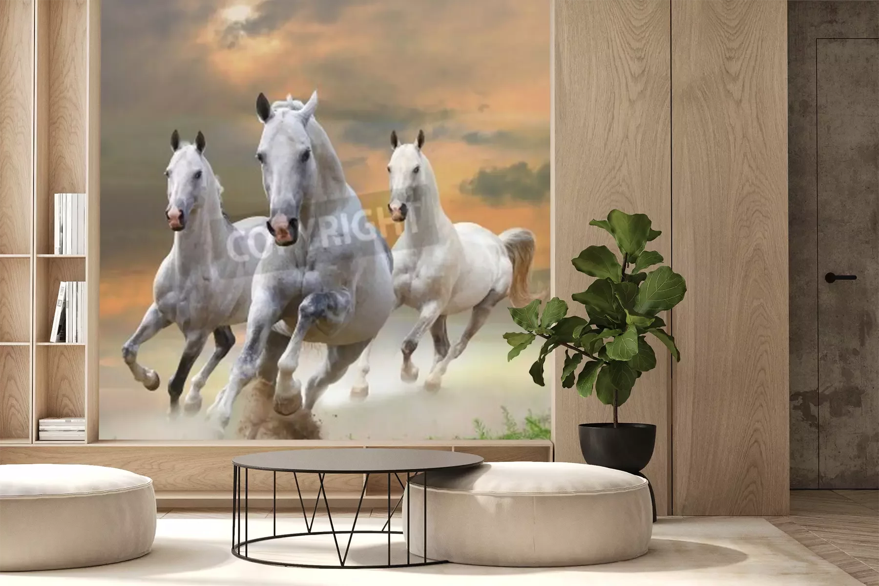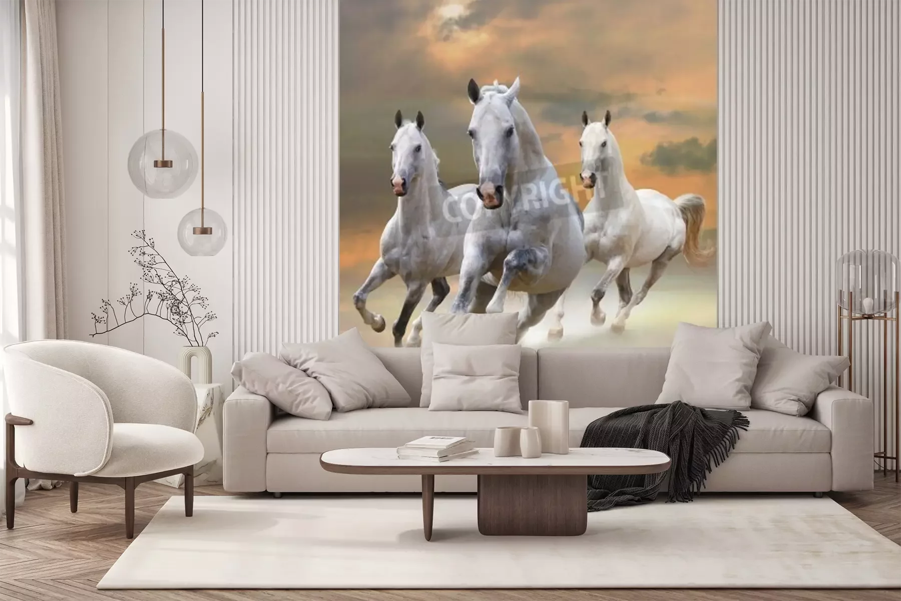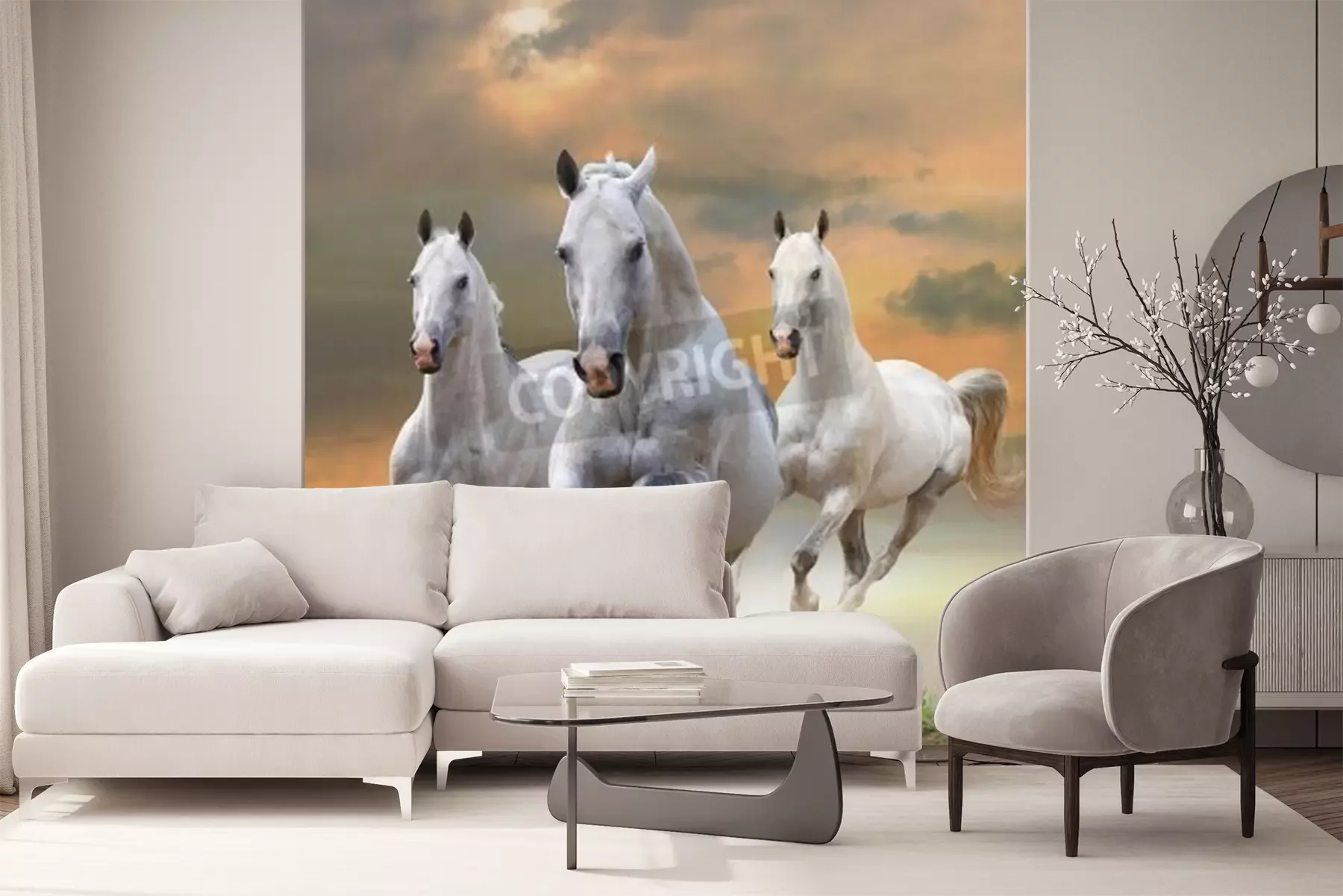 Papier peint  Chevaux au galop au soleil couchant