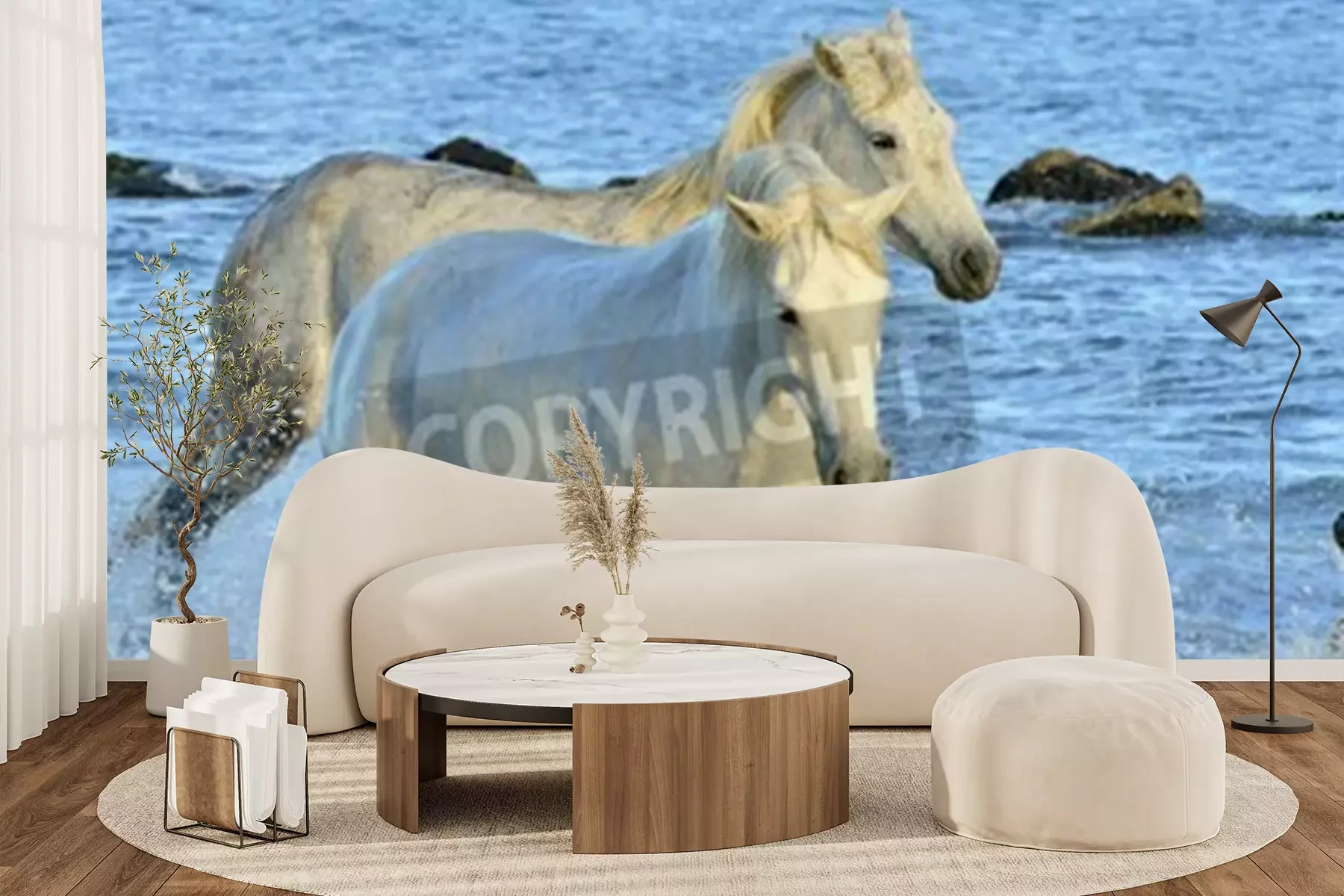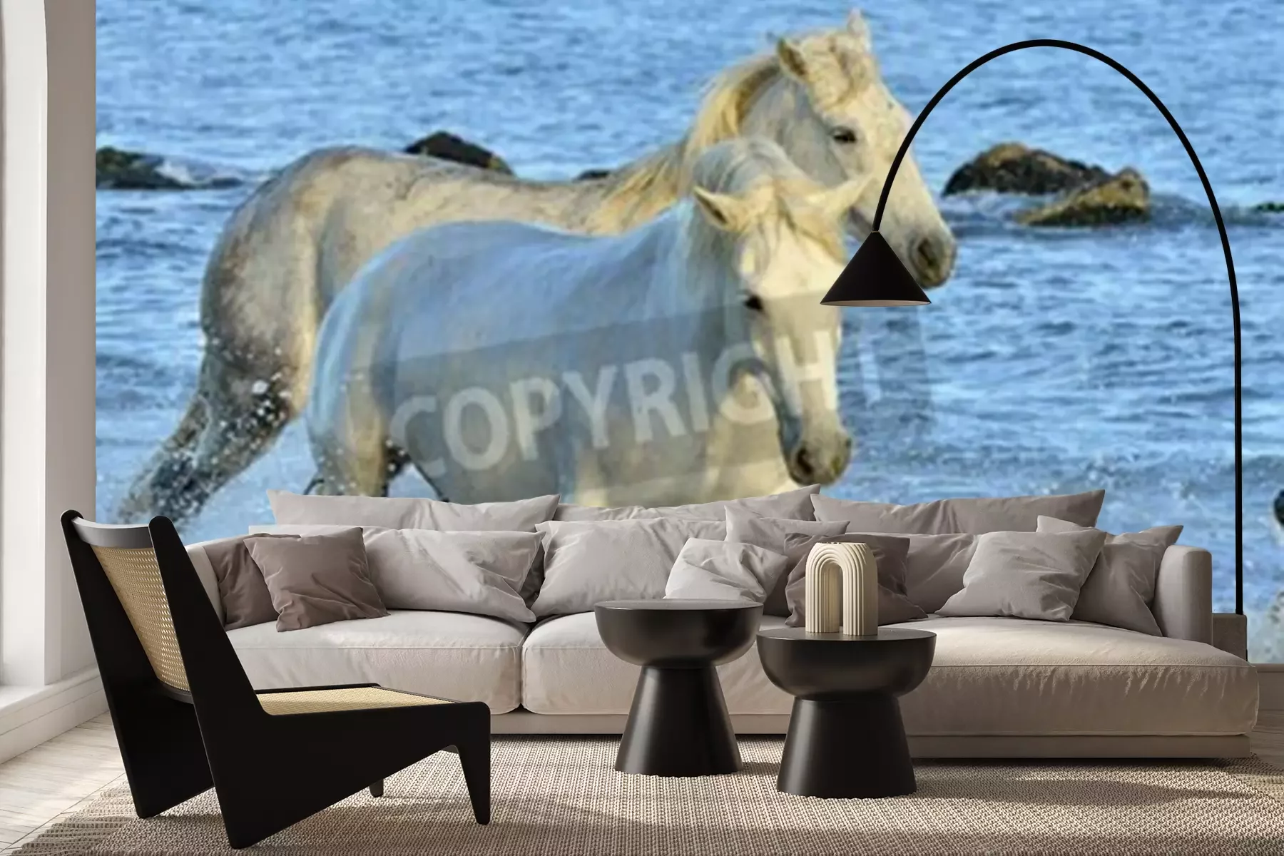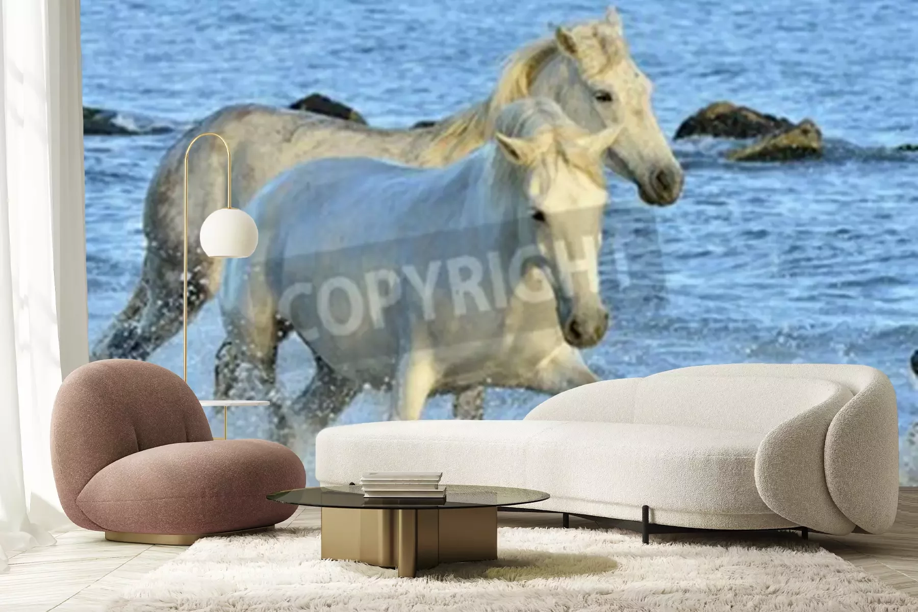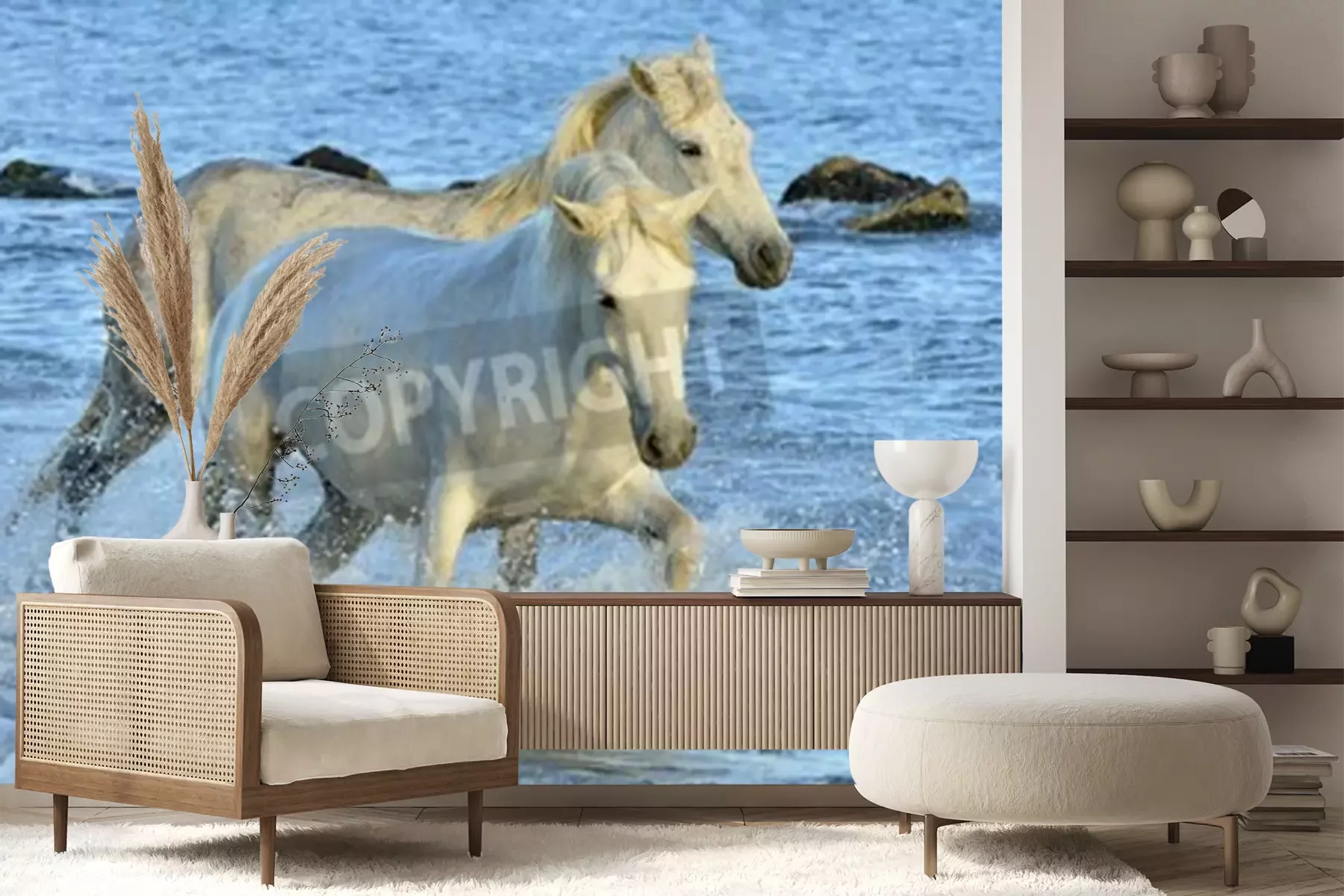 Papier peint  Chevaux blancs qui courent dans l'eau
