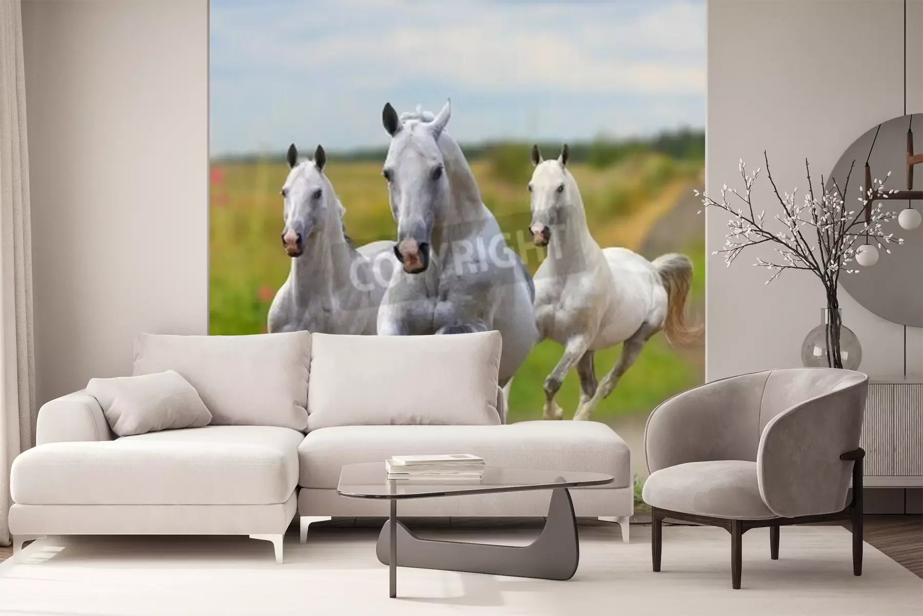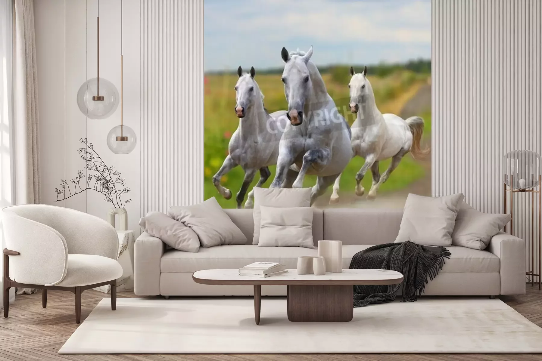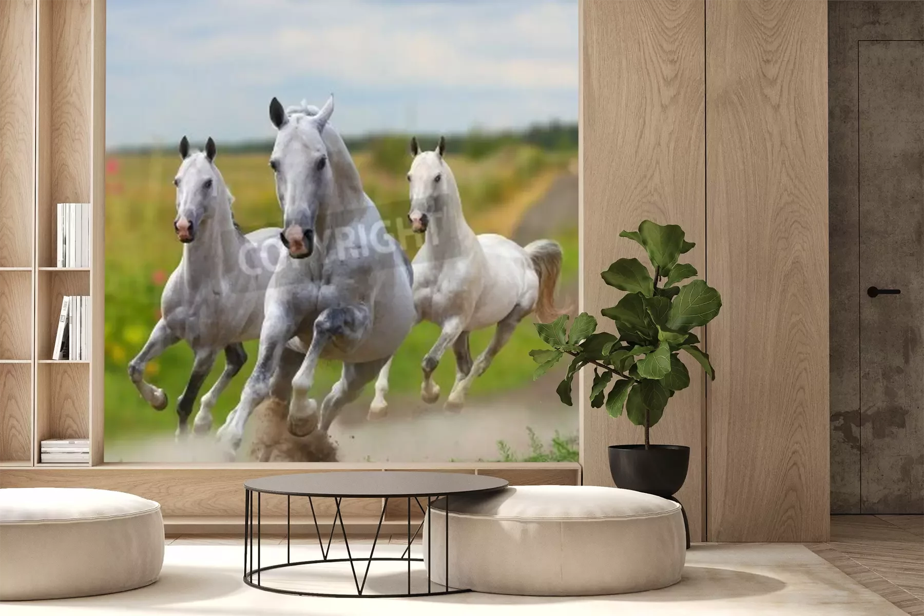 Papier peint  Chevaux qui courent sur un chemin de terre