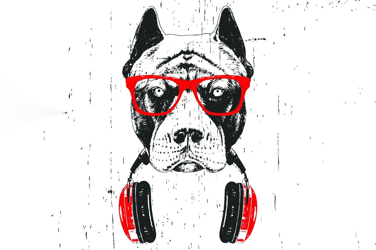 Papier peint : Chien avec des lunettes de soleil et des écouteurs