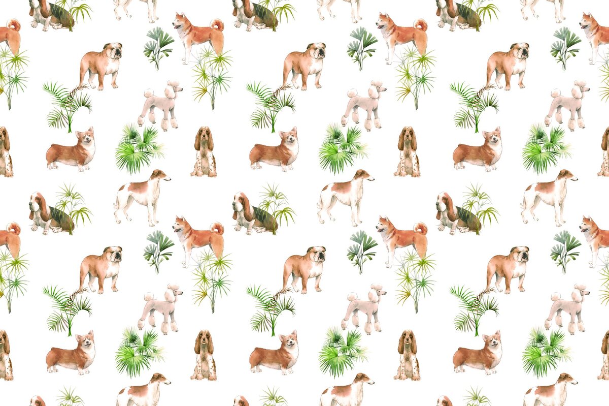 Papier peint : Chiens bruns avec des buissons sur fond blanc