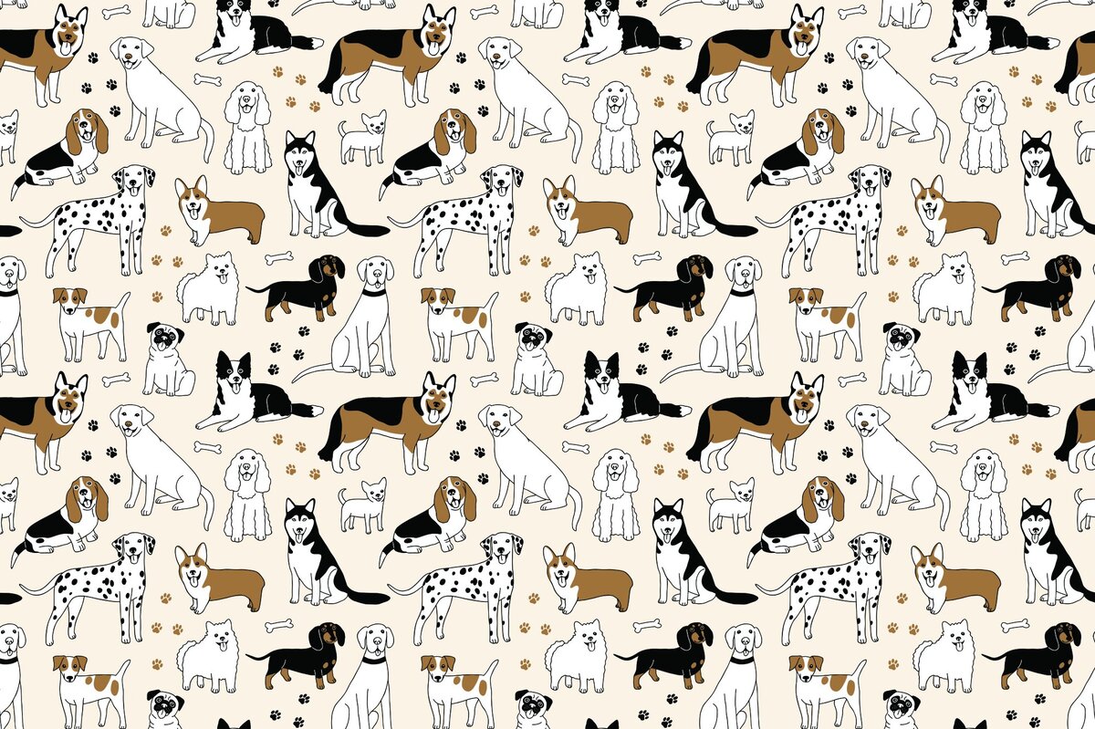 Papier peint : Chiens dessinés parmi des os et des pattes
