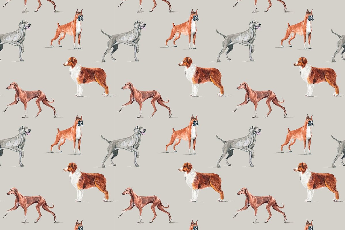 Papier peint : Chiens majestueux illustration aquarelle sur fond gris