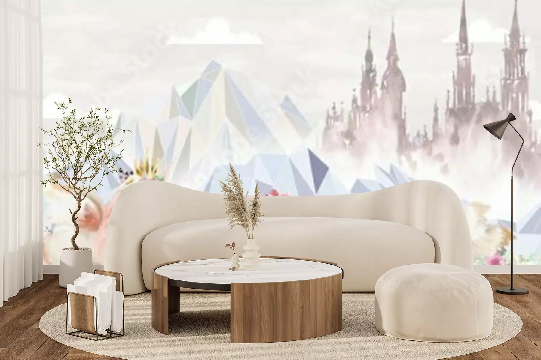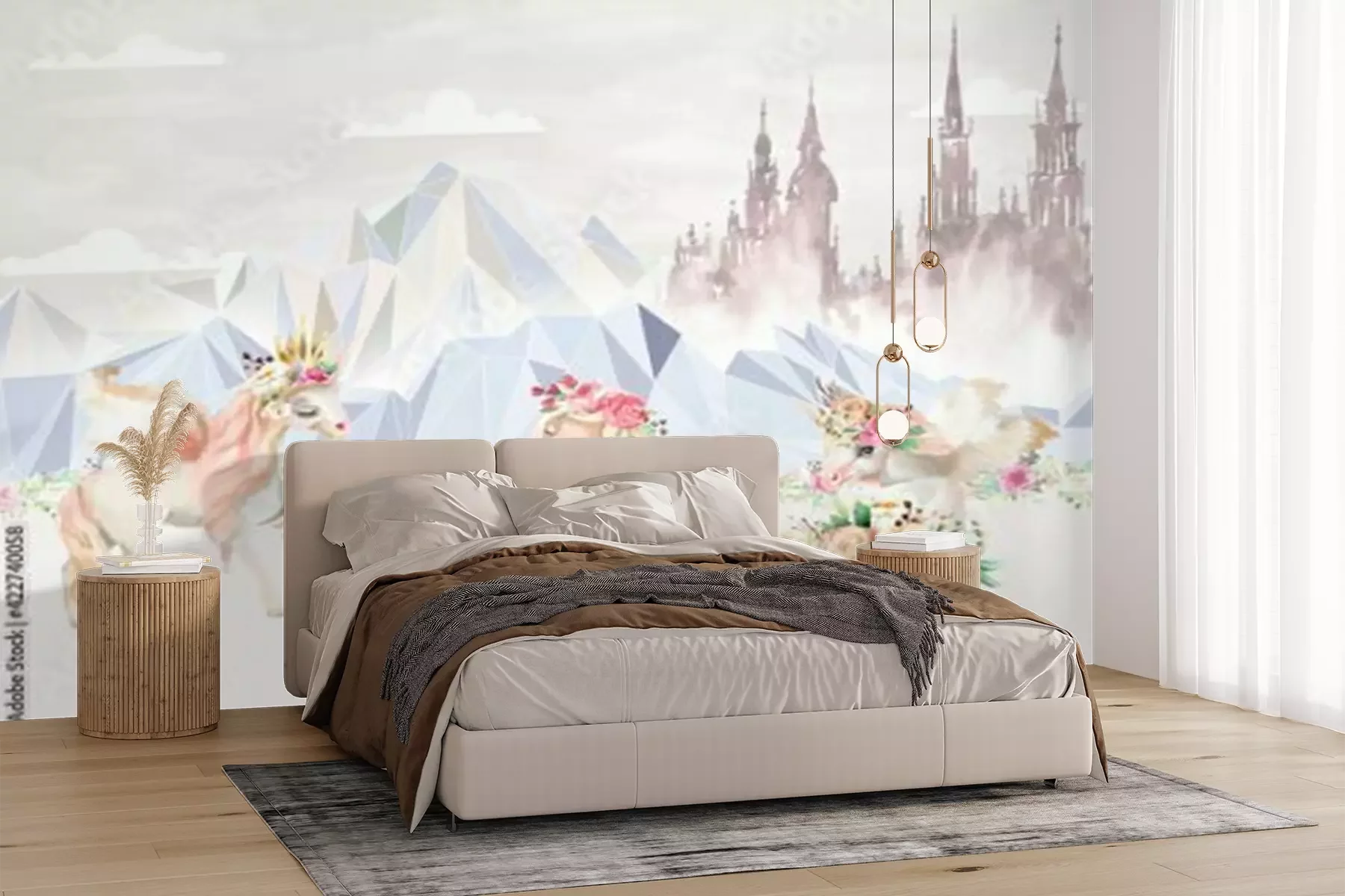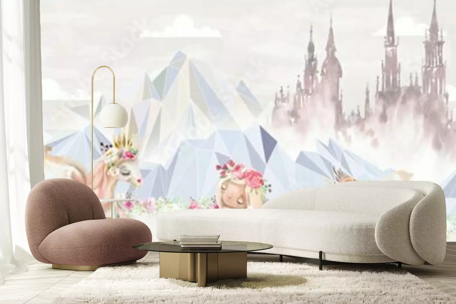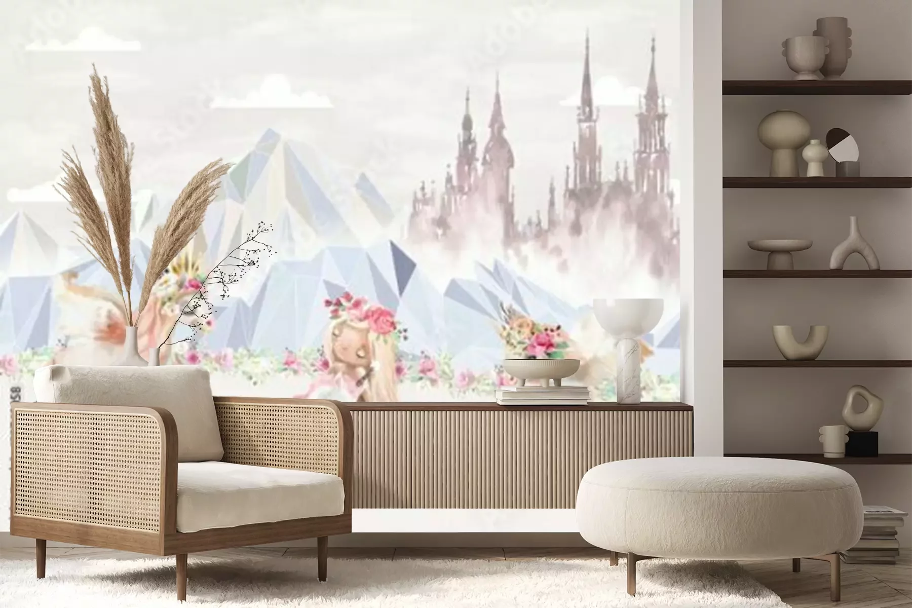 Papier peint  Children's wallpaper. Wallpaper for girls. Princess with unicorns.