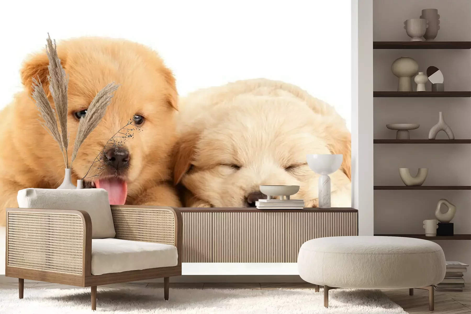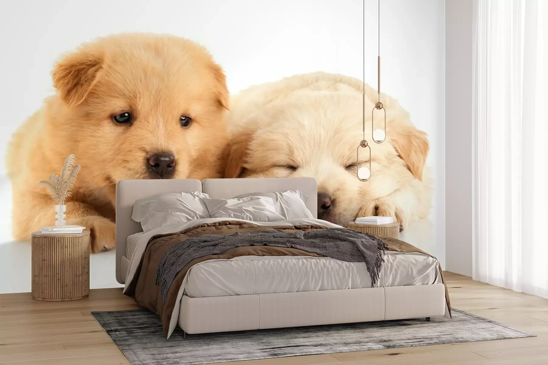 Chiots couleur sable endormisLivraison sans problème assurée par des transporteurs de confiance