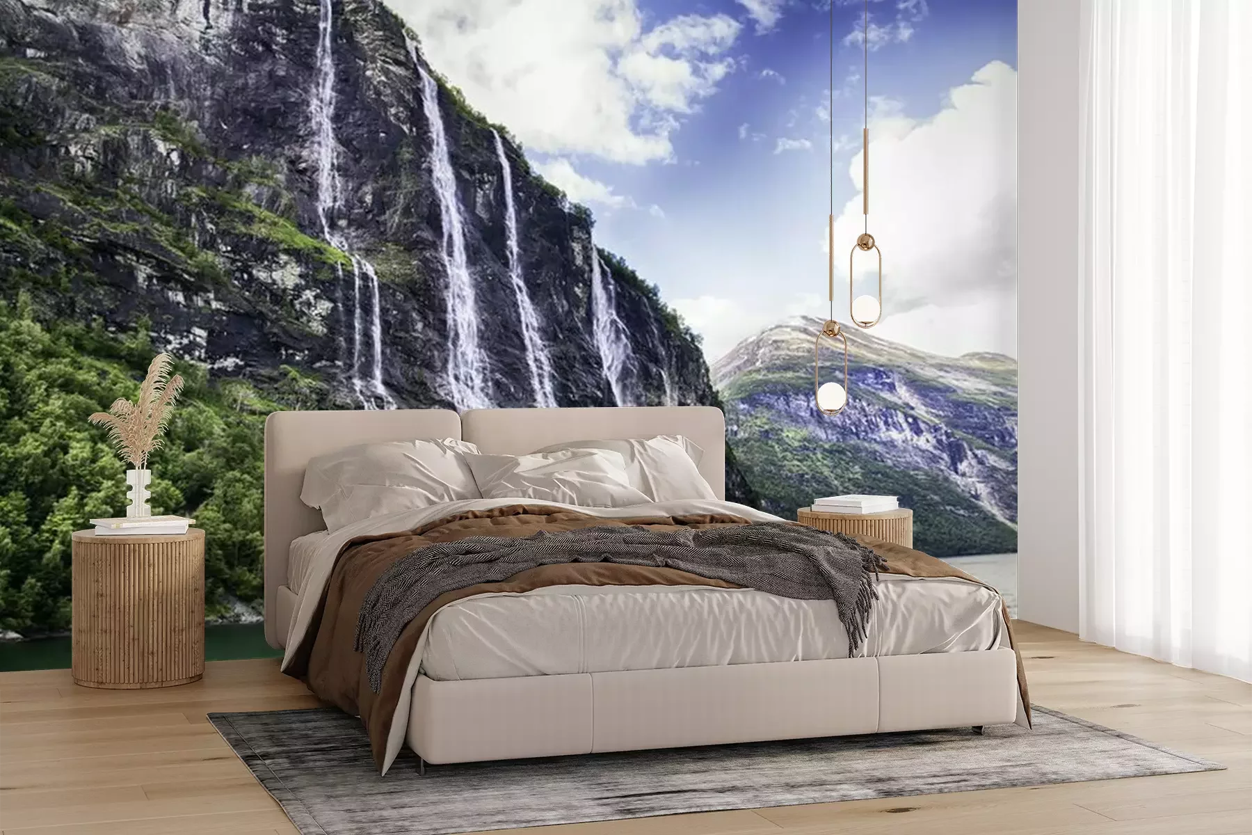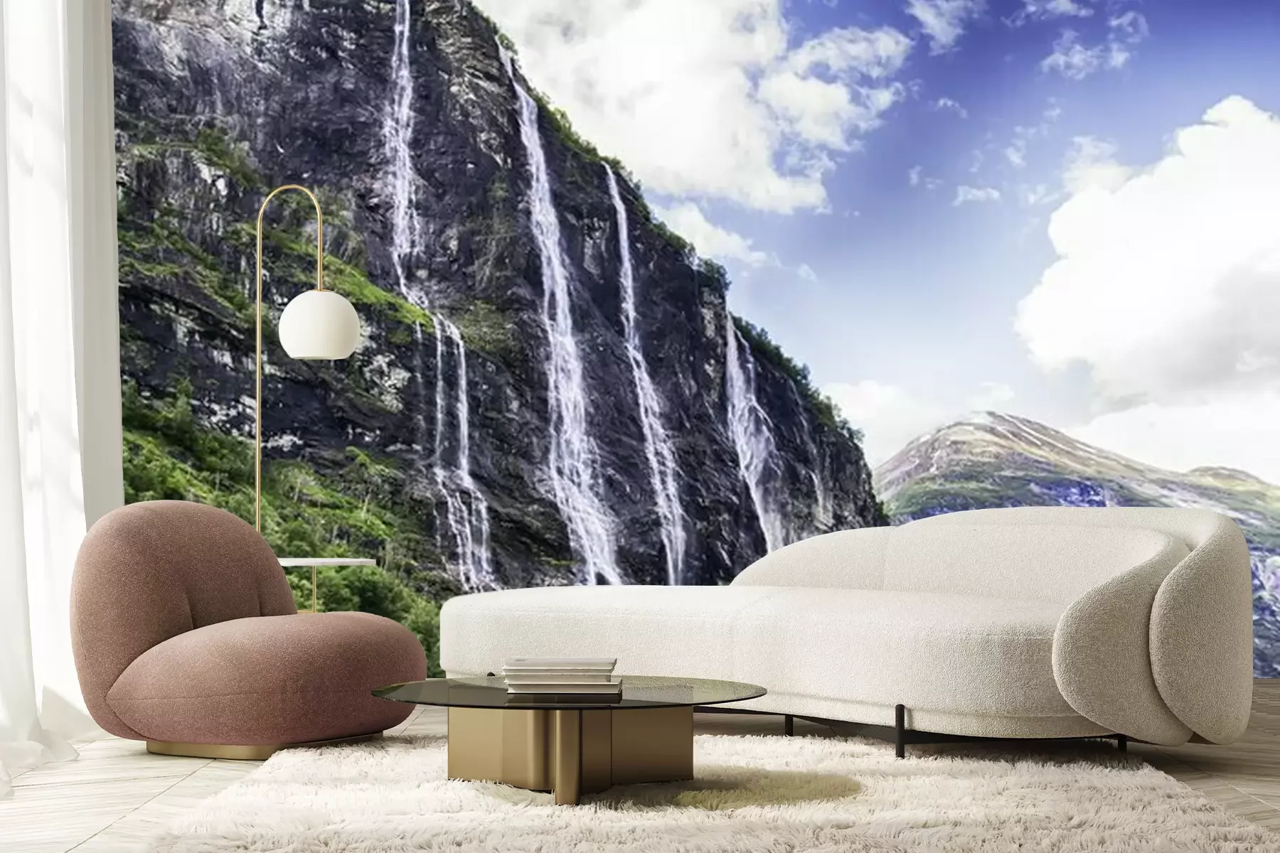 Papier peint  Chute d'eau s'écoulant dans un fjord