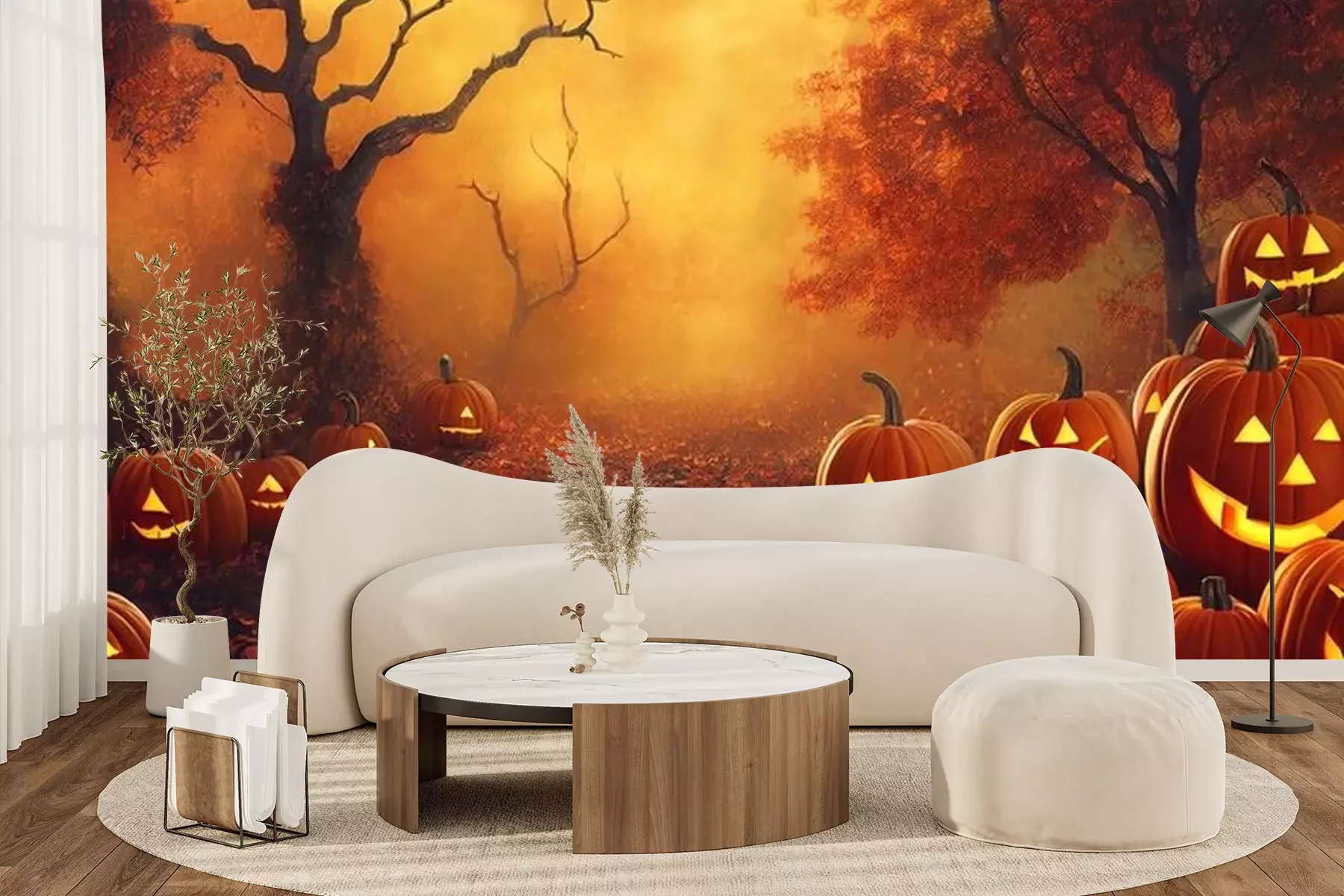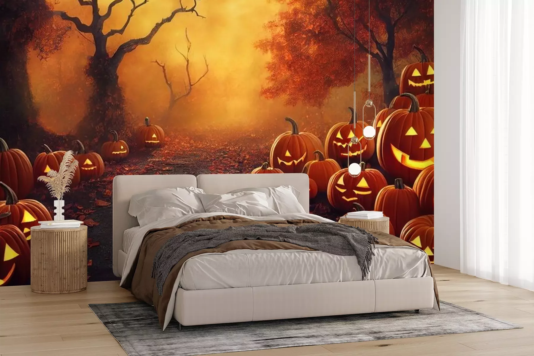 Papier peint  Citrouilles dans la forêt d'automne