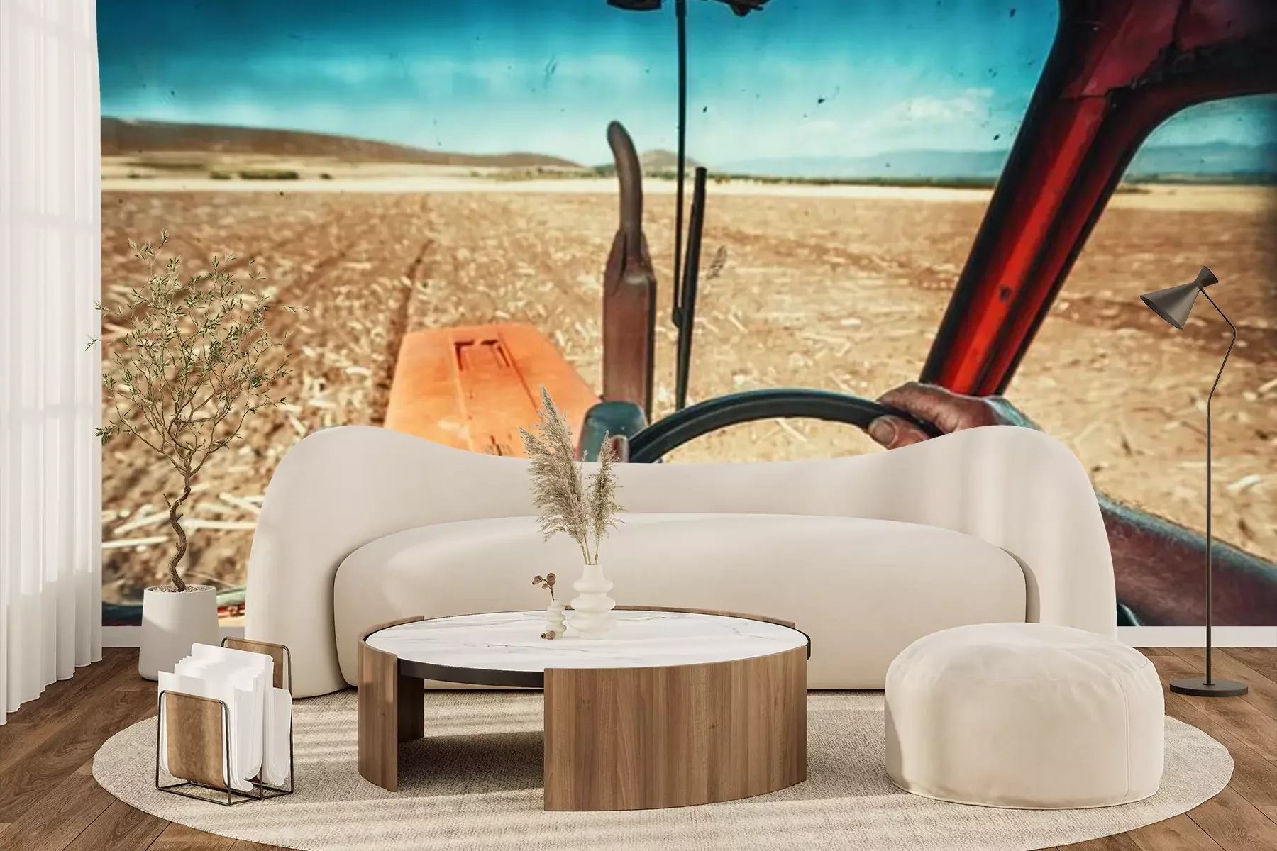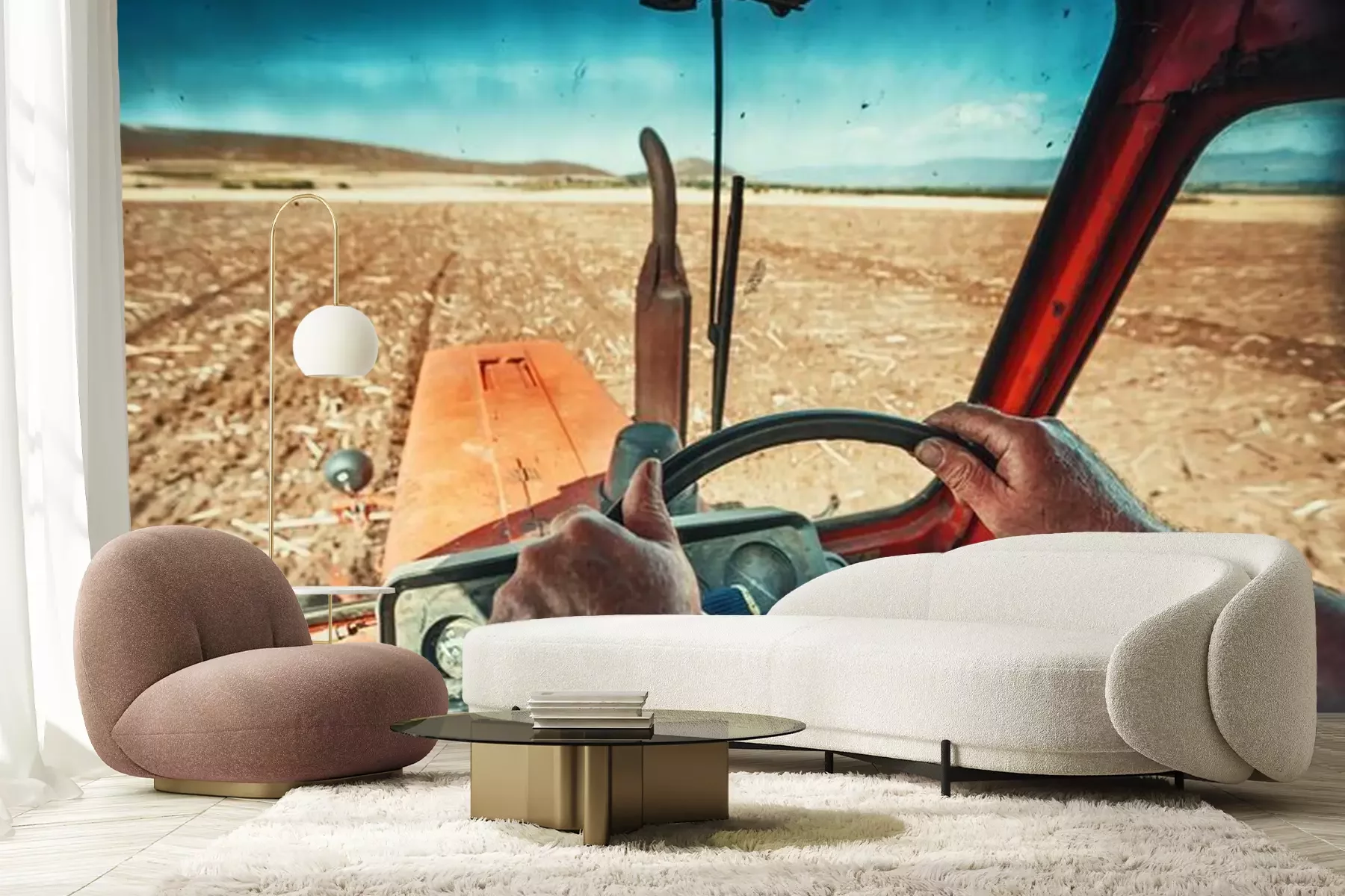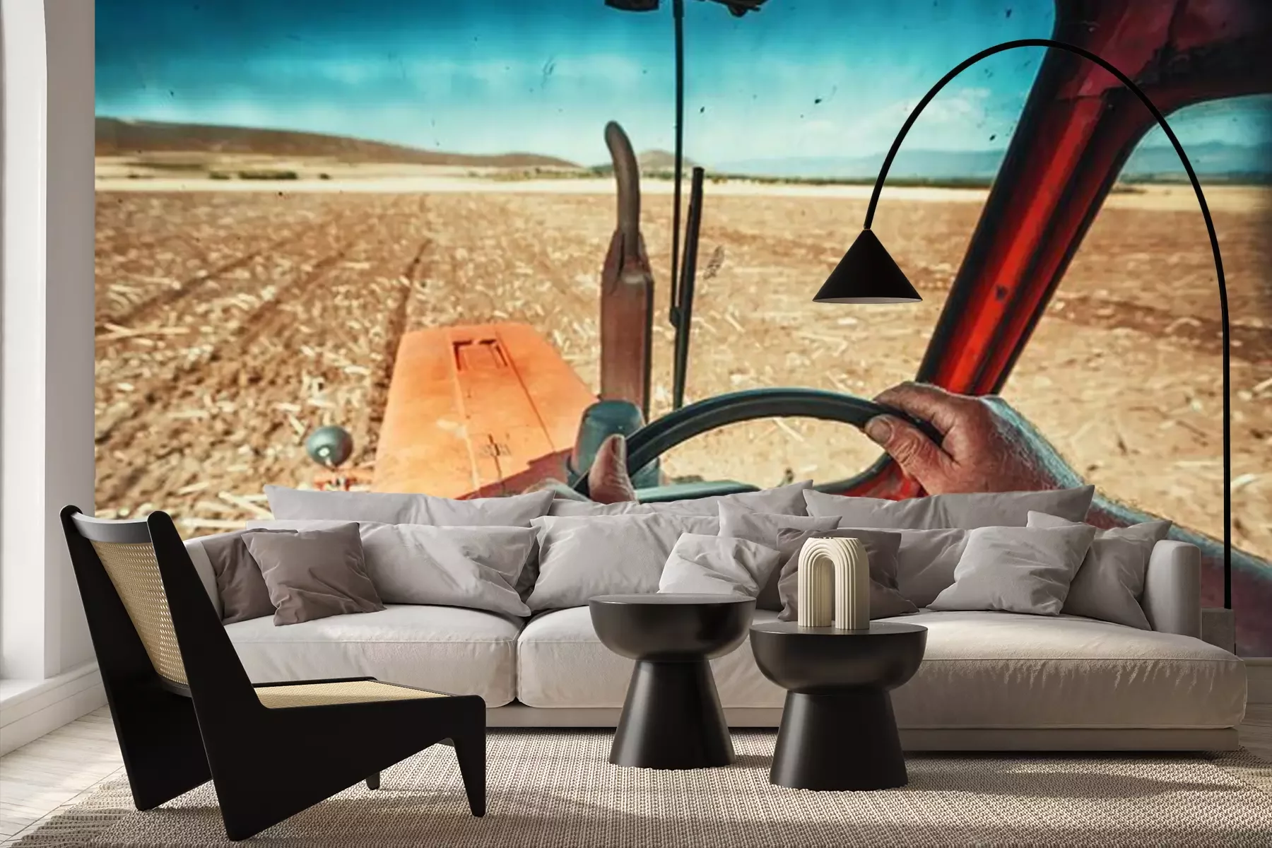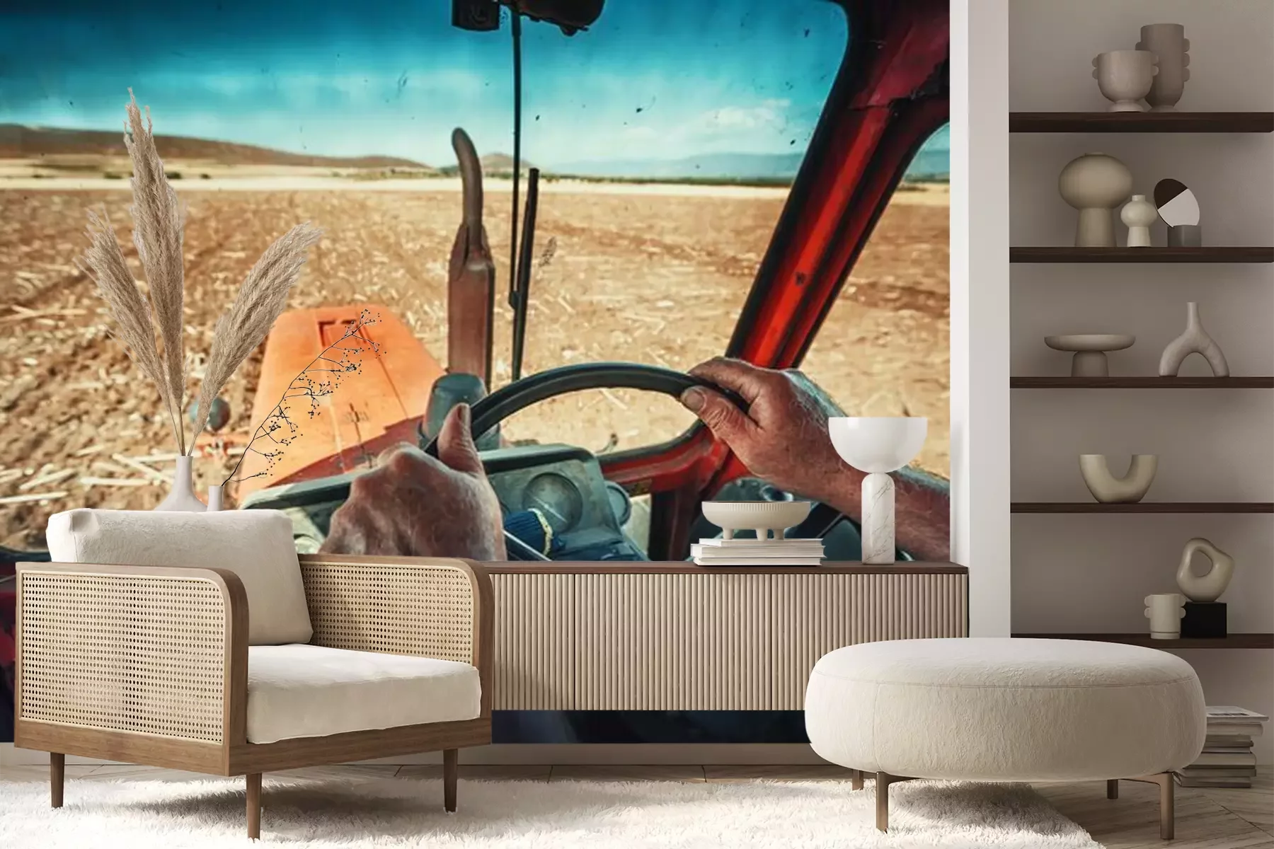 Agriculteur, tracteur, semer, cultures, champPapier peint