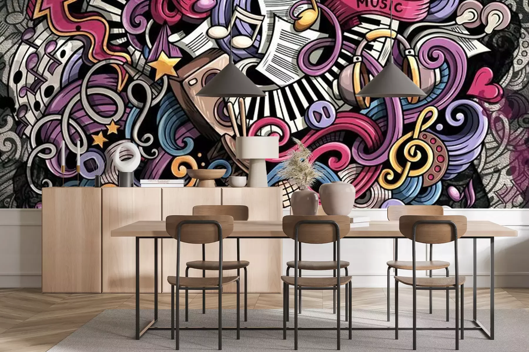 Papier peint  Composition colorée des notes et des instruments