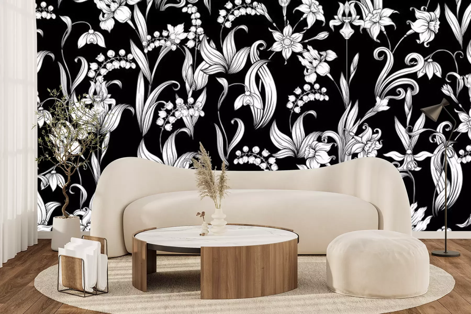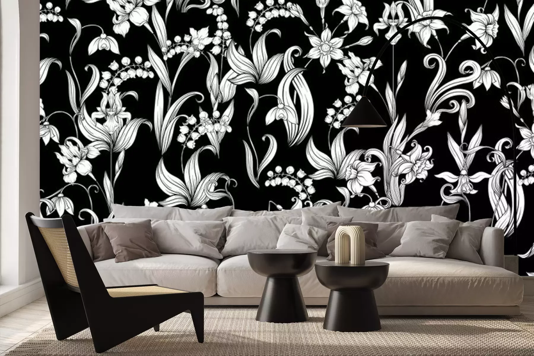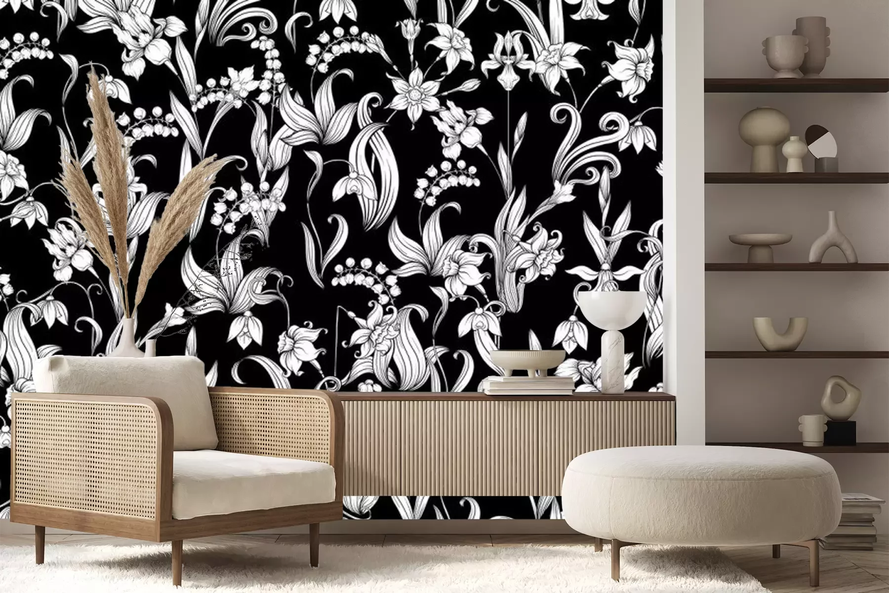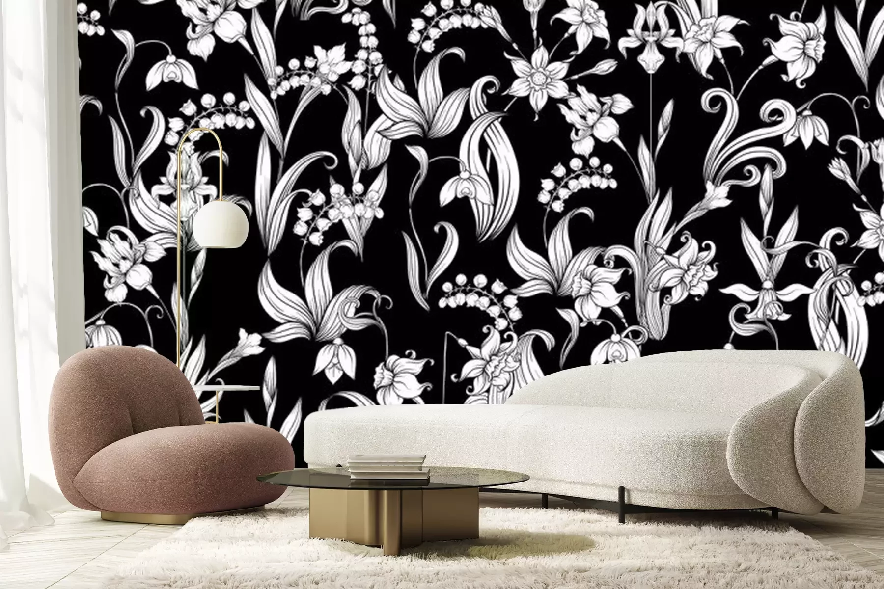 Papier peint  Composition de fleurs blanches