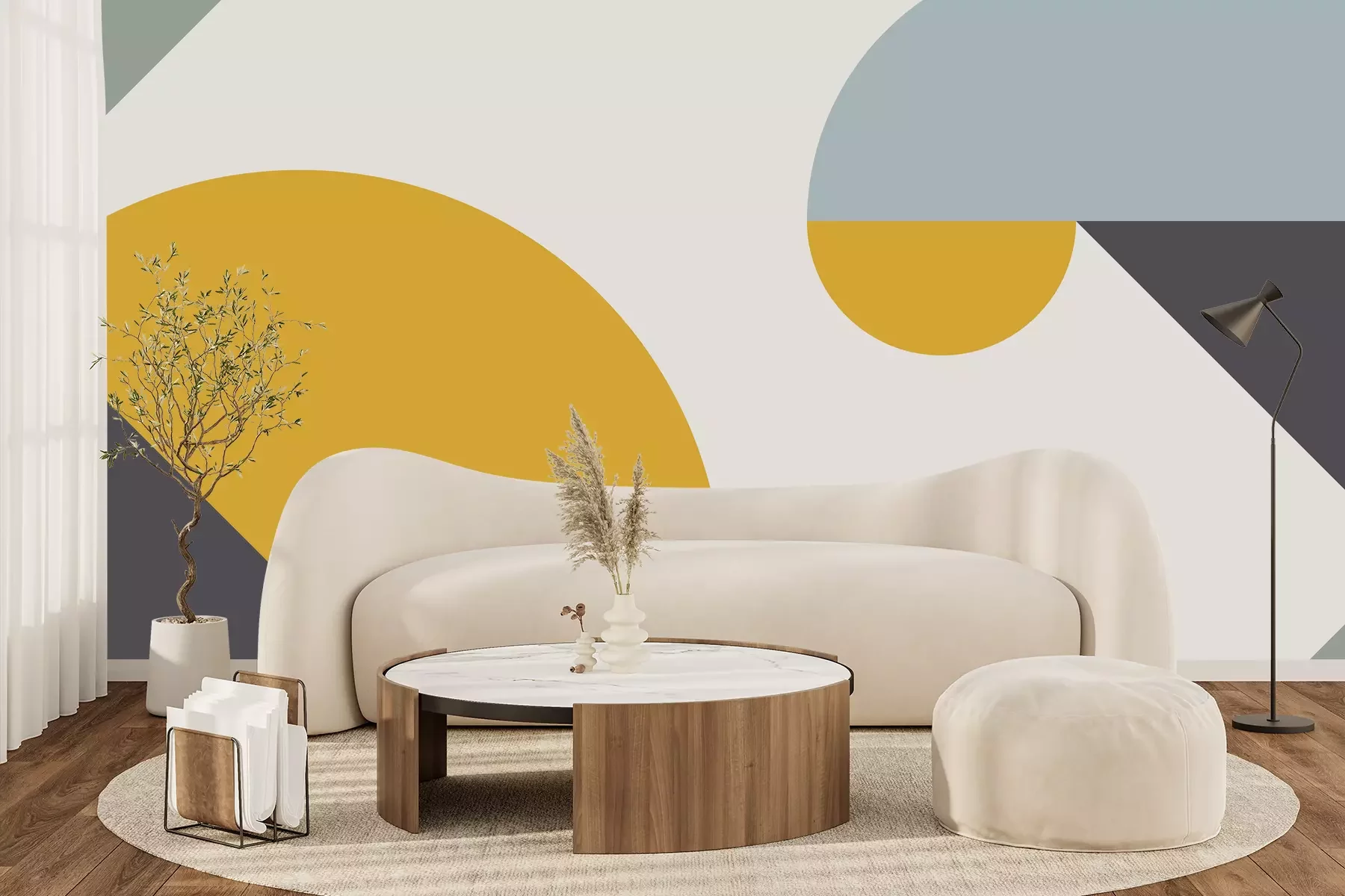 Composition géométrique avec accent jaune