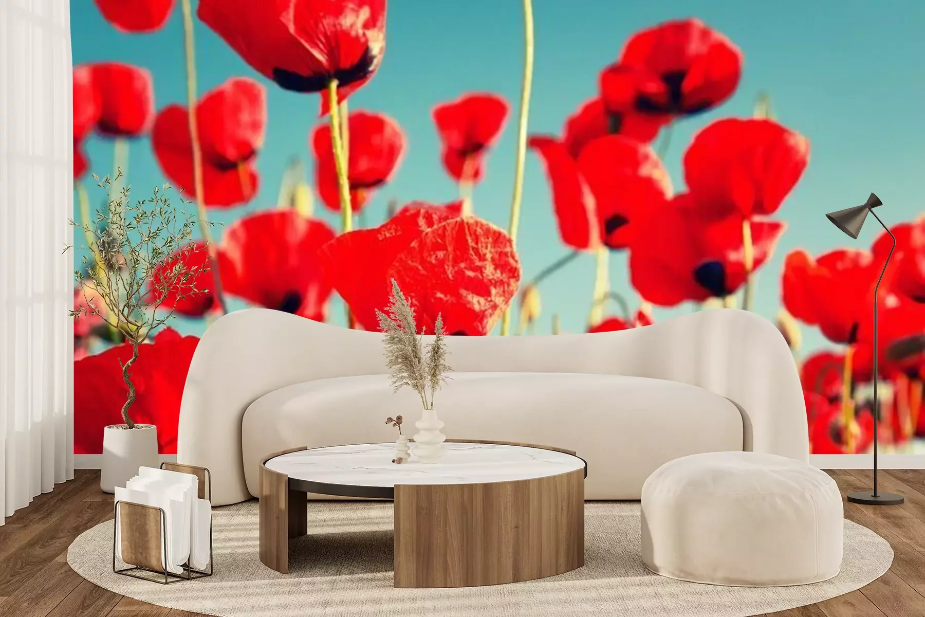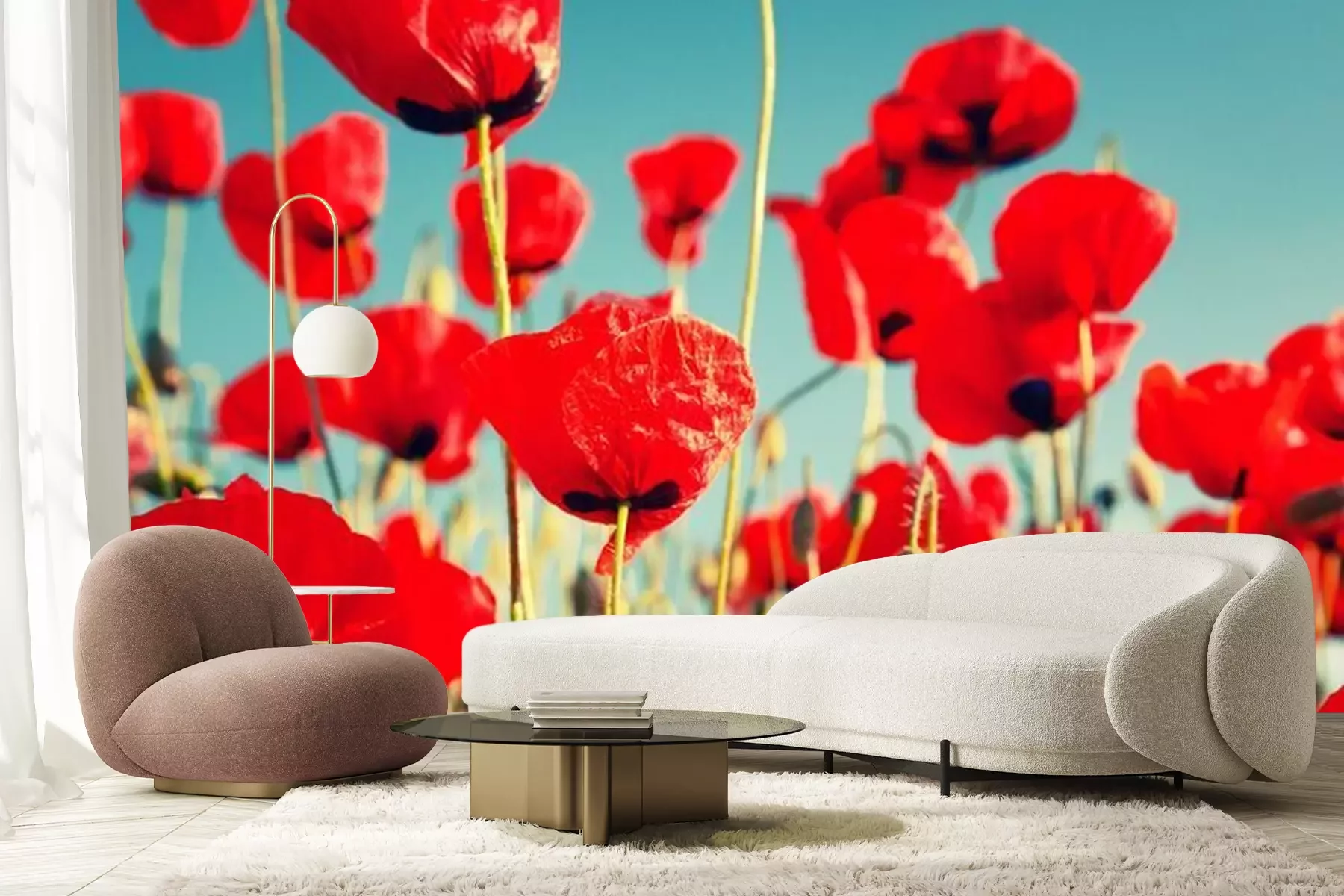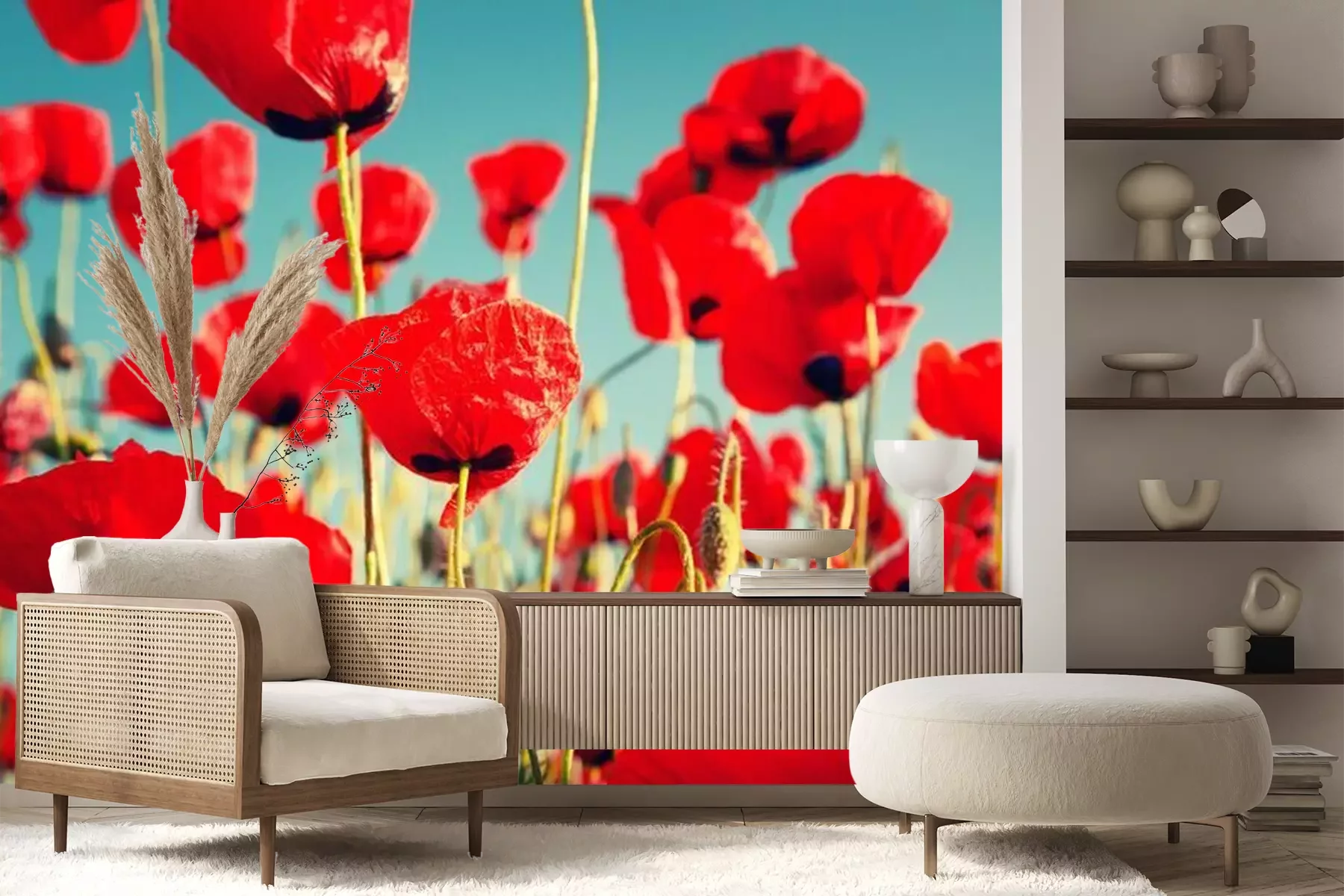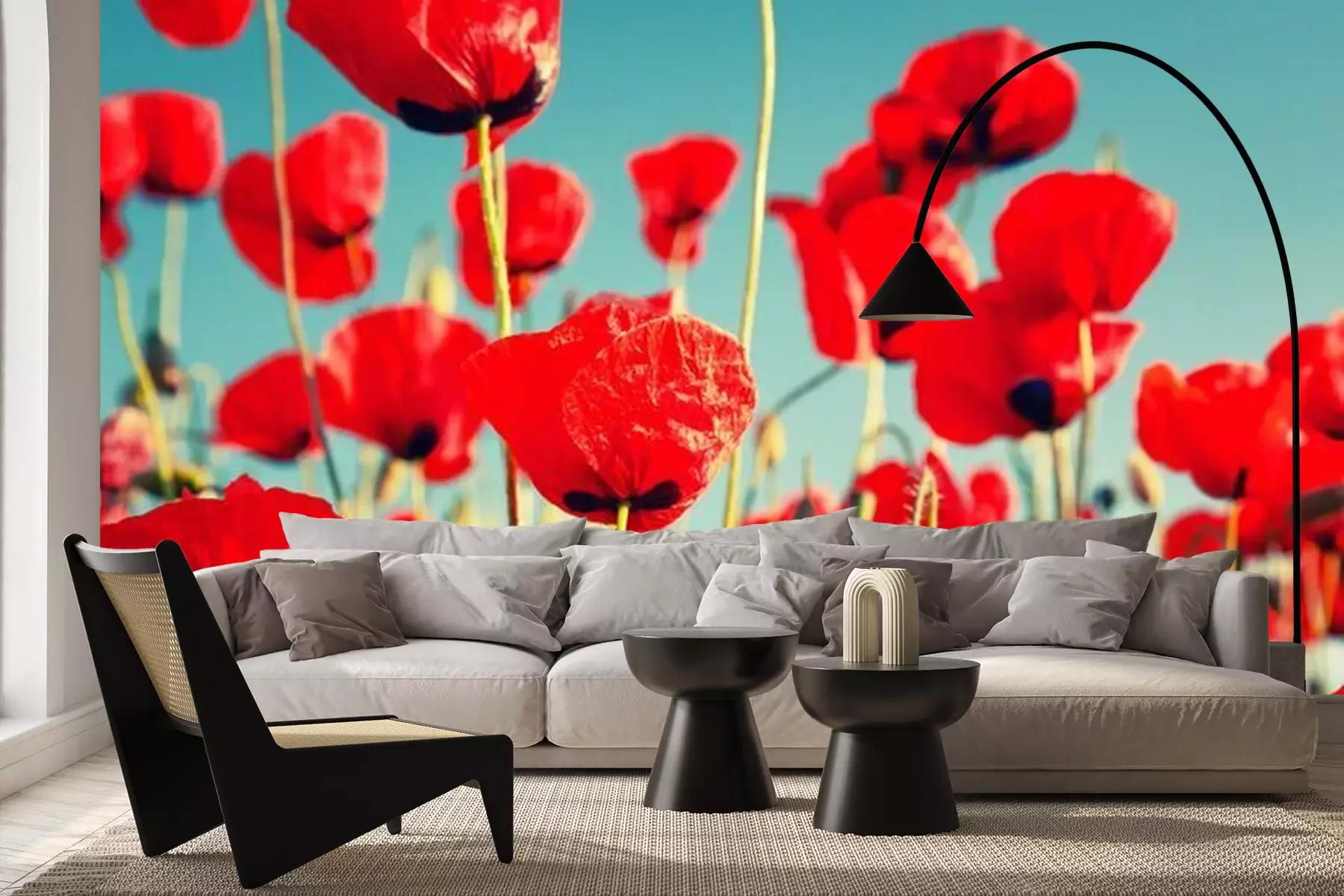 Papier peint  Coquelicots couleur carmin sur le ciel