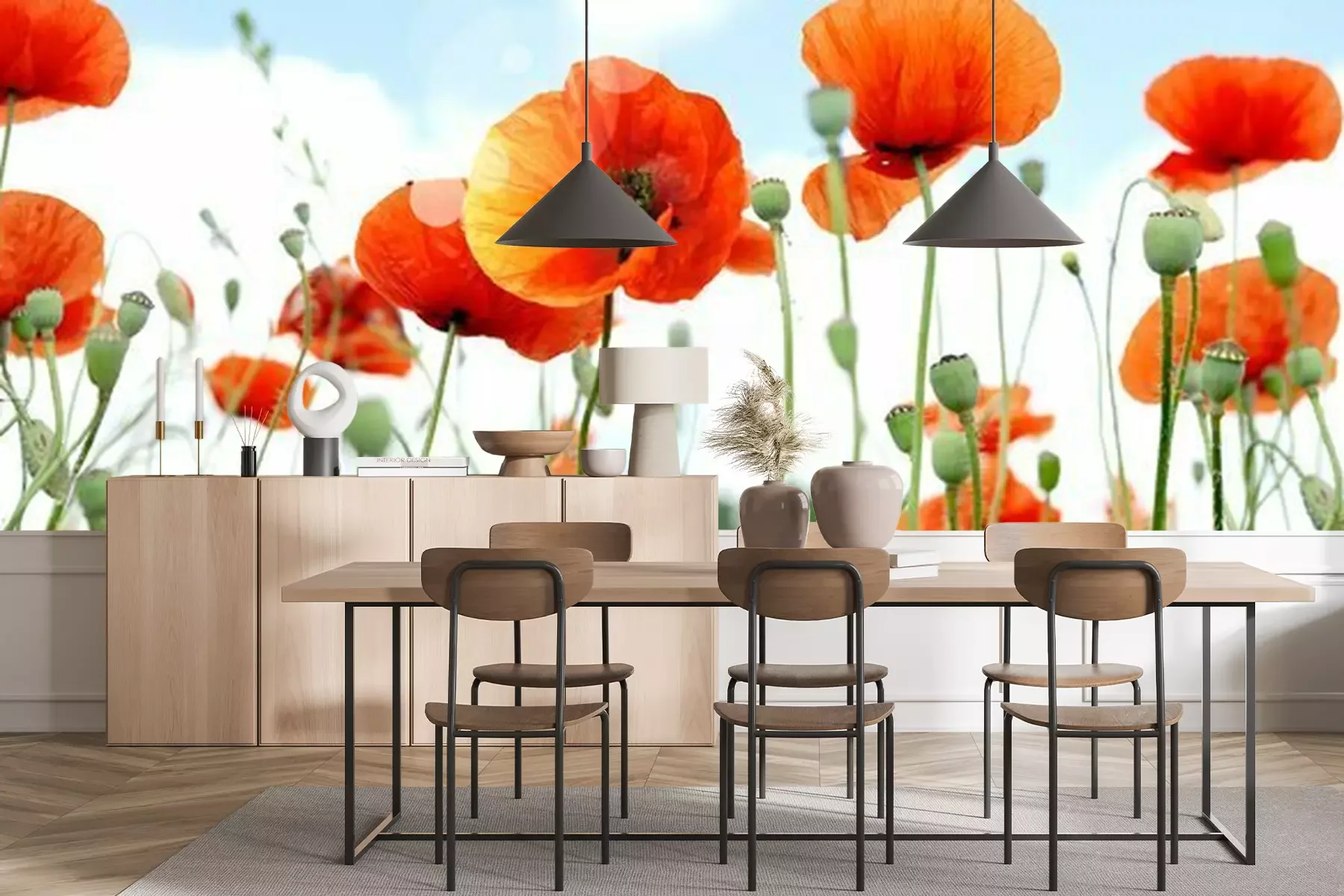 Coquelicots sur fond blancPapier peint