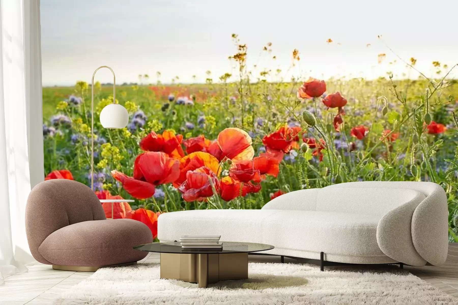 Champ de coquelicots au coucher du soleilPapier peint