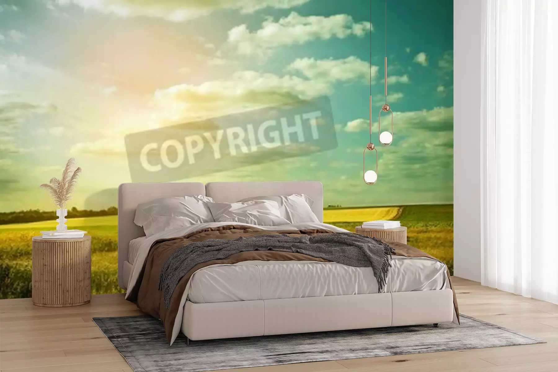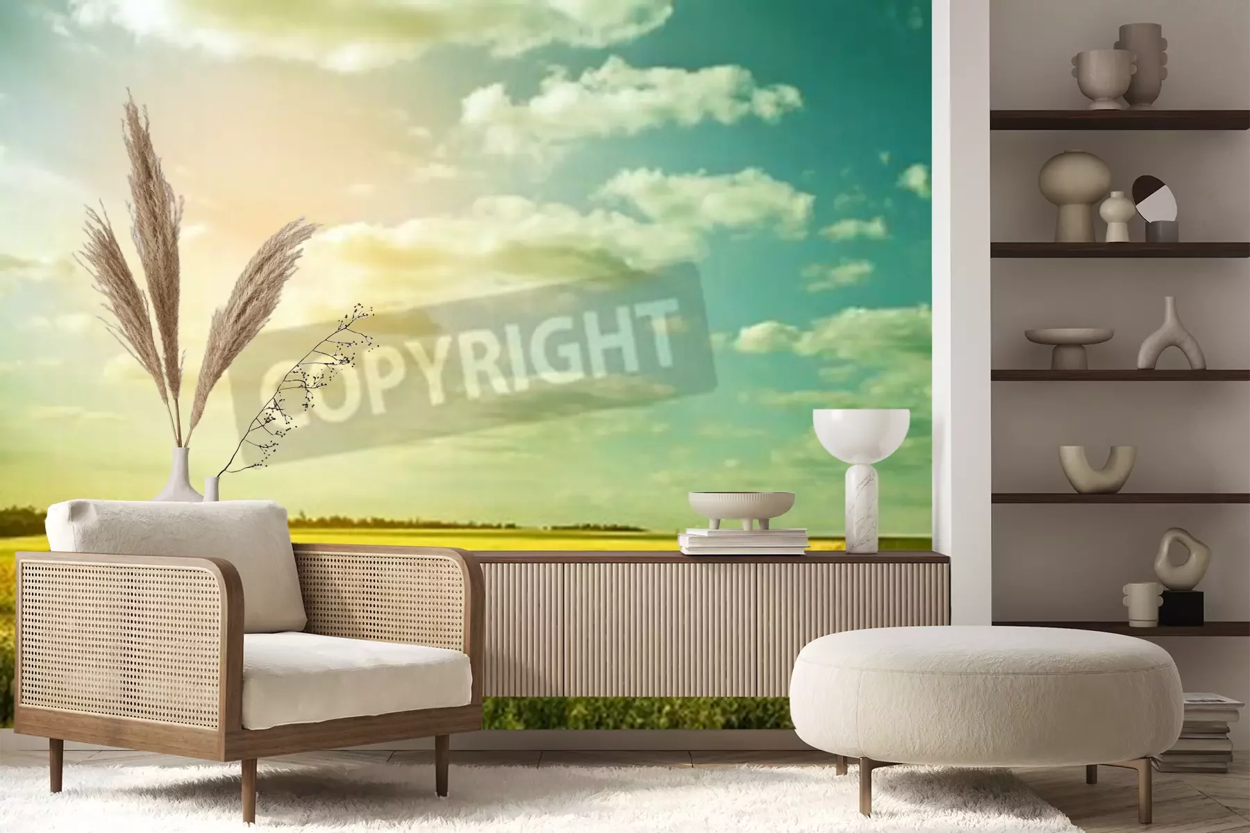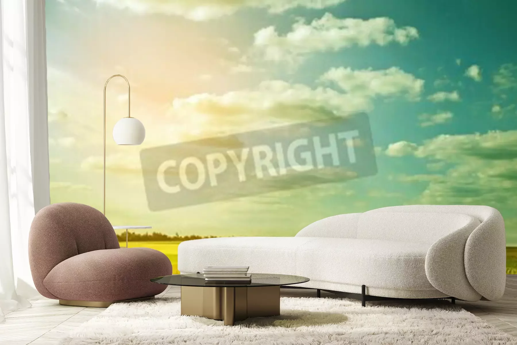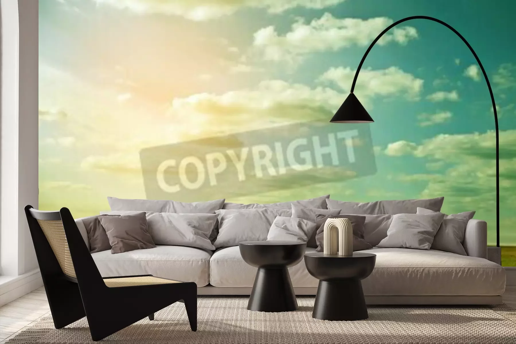 Papier peint  Coquillages sur le sable sur fond de ciel