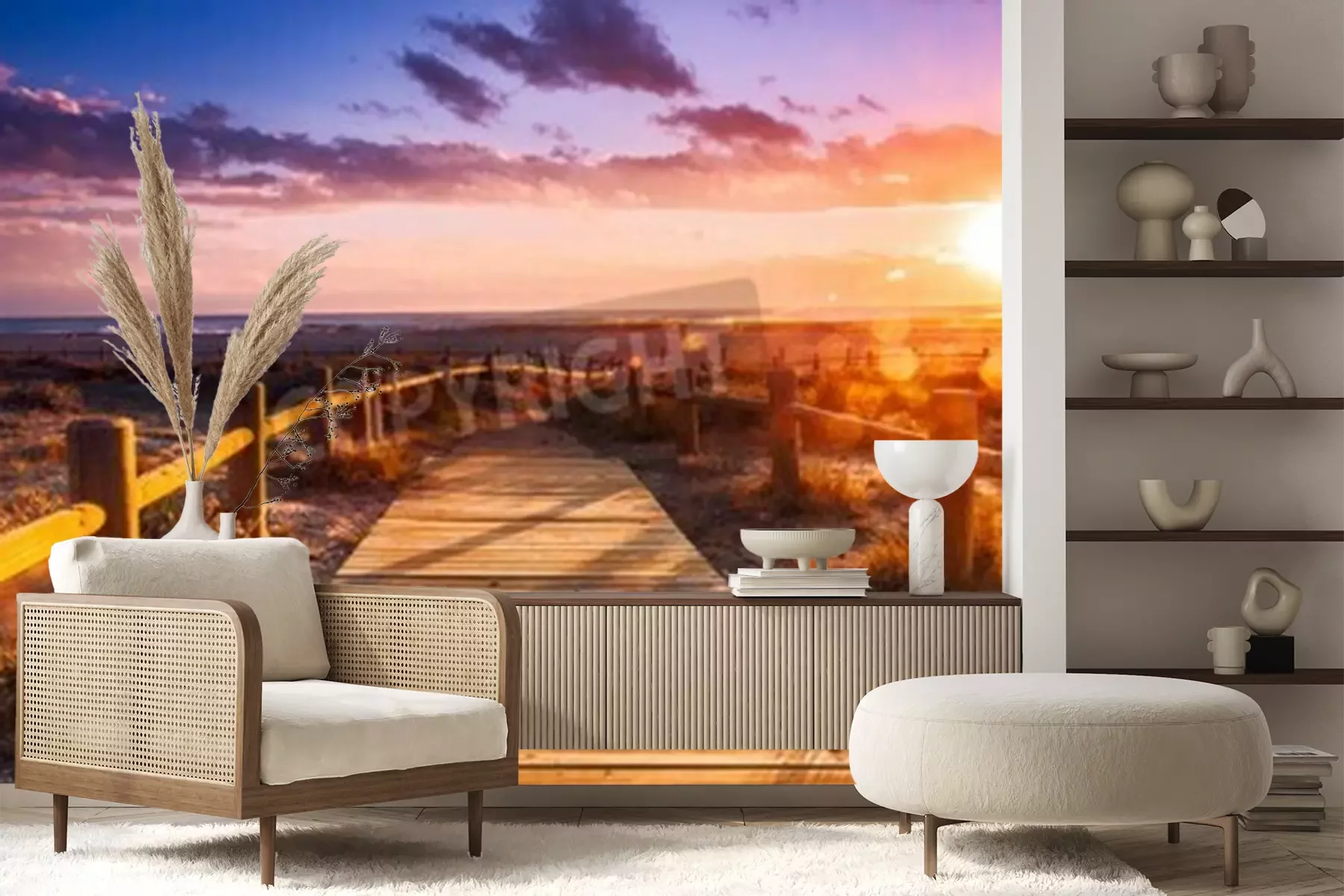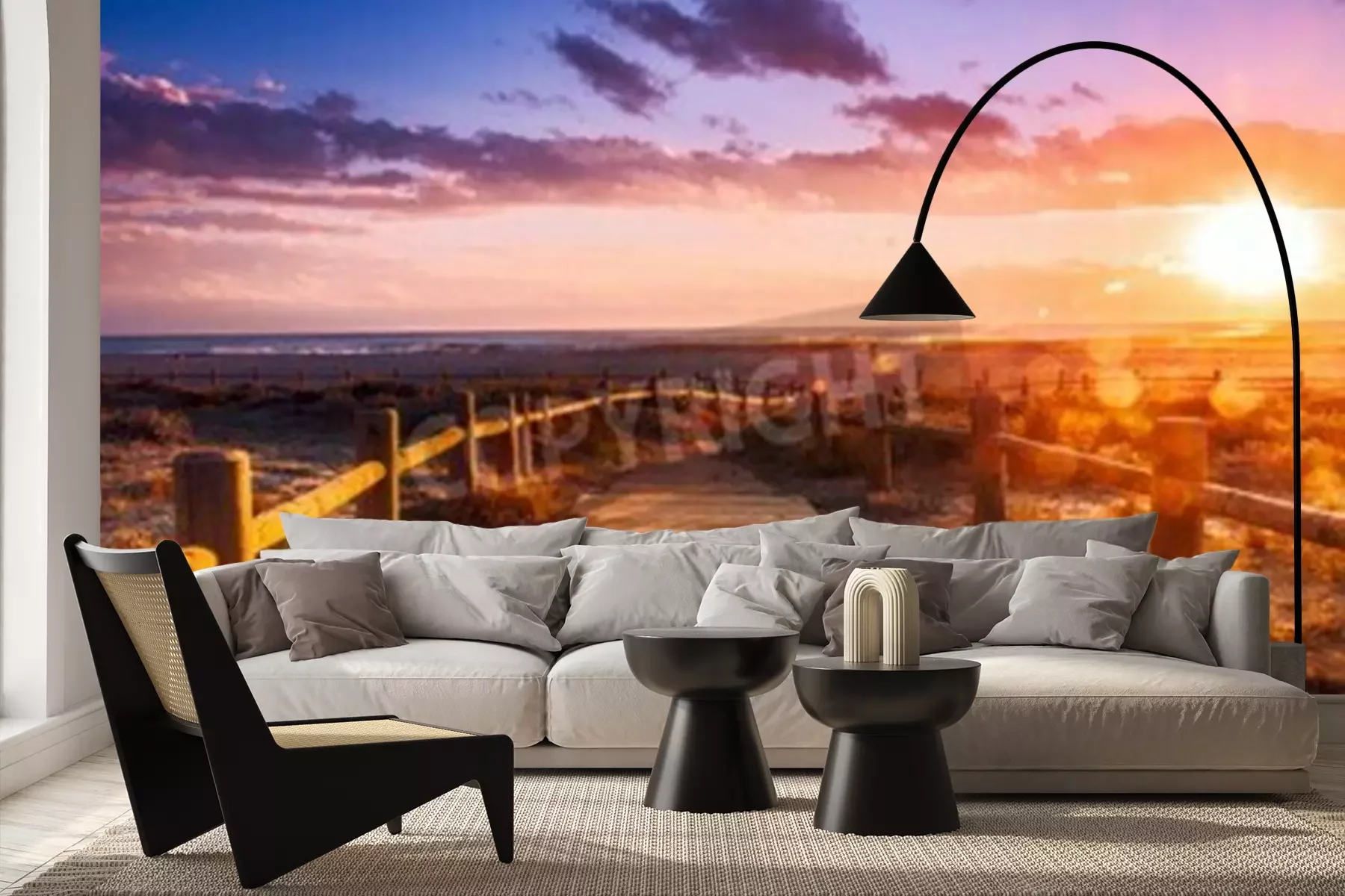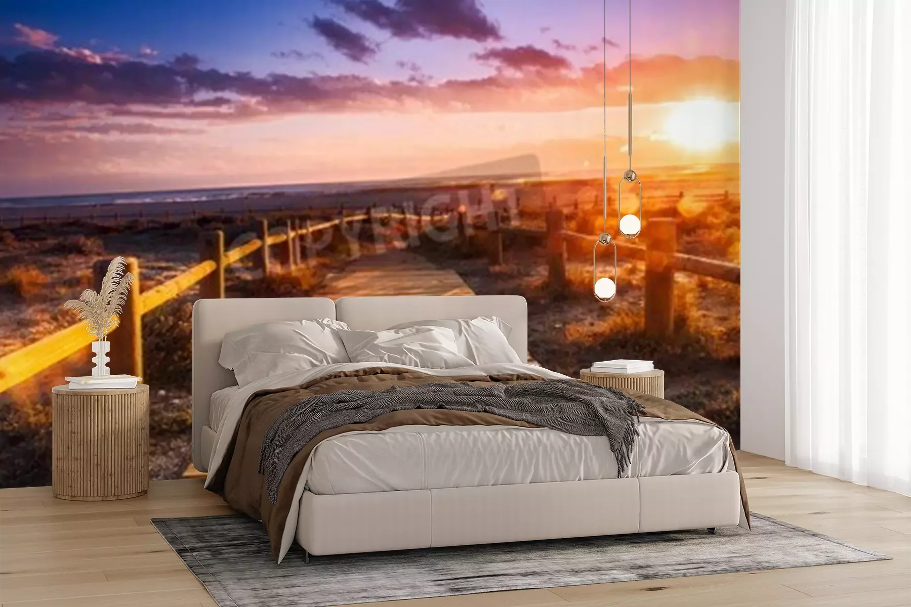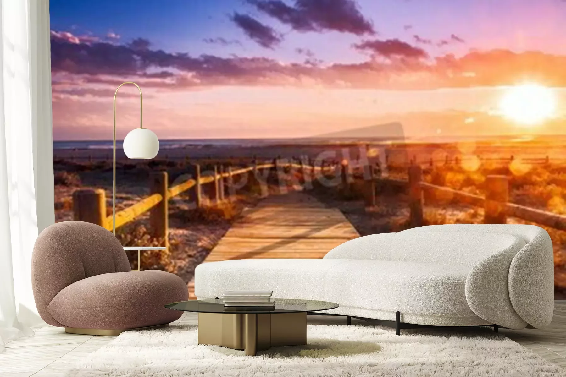 Papier peint  Coucher de soleil avec jetée et mer en Espagne