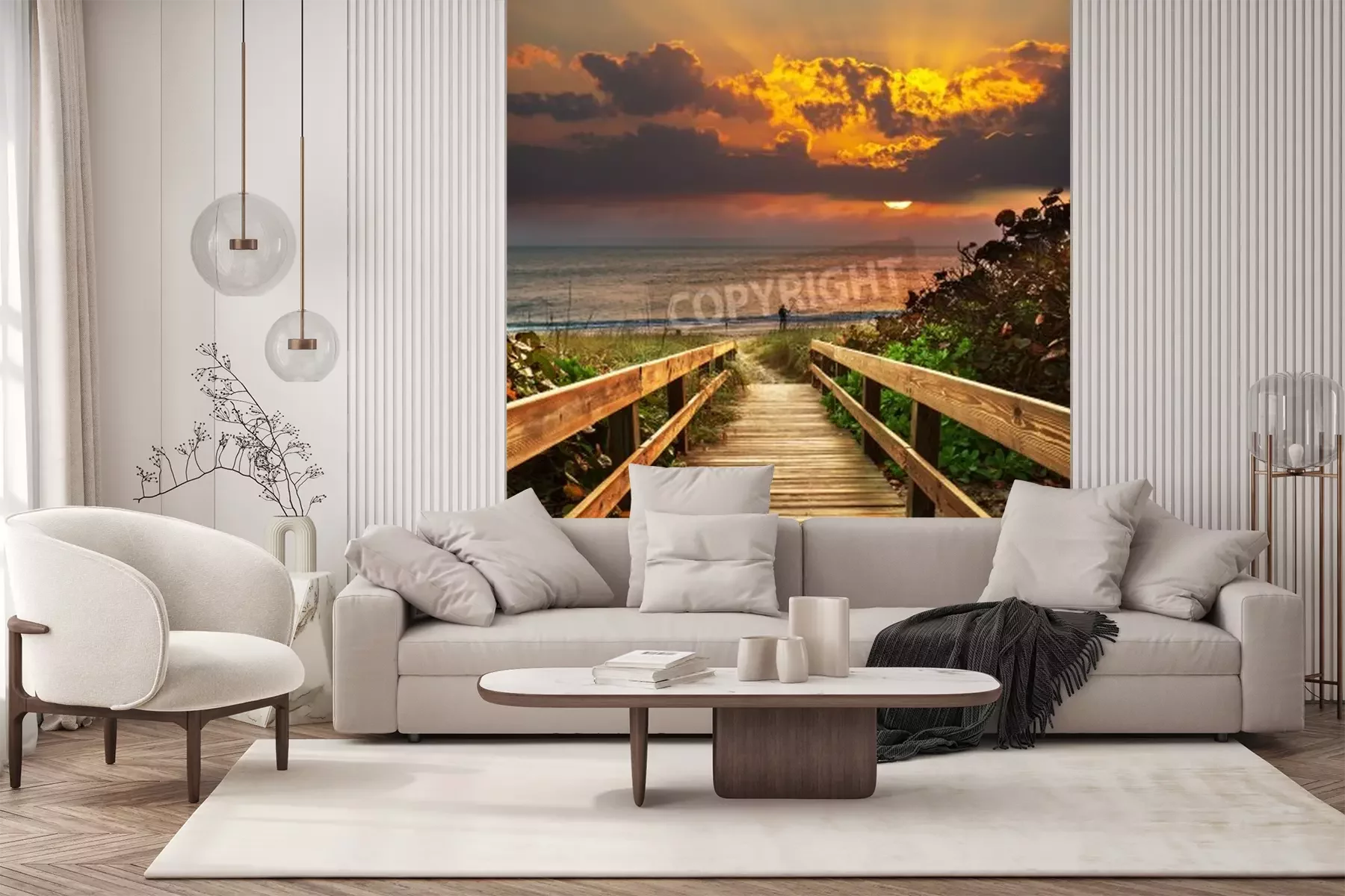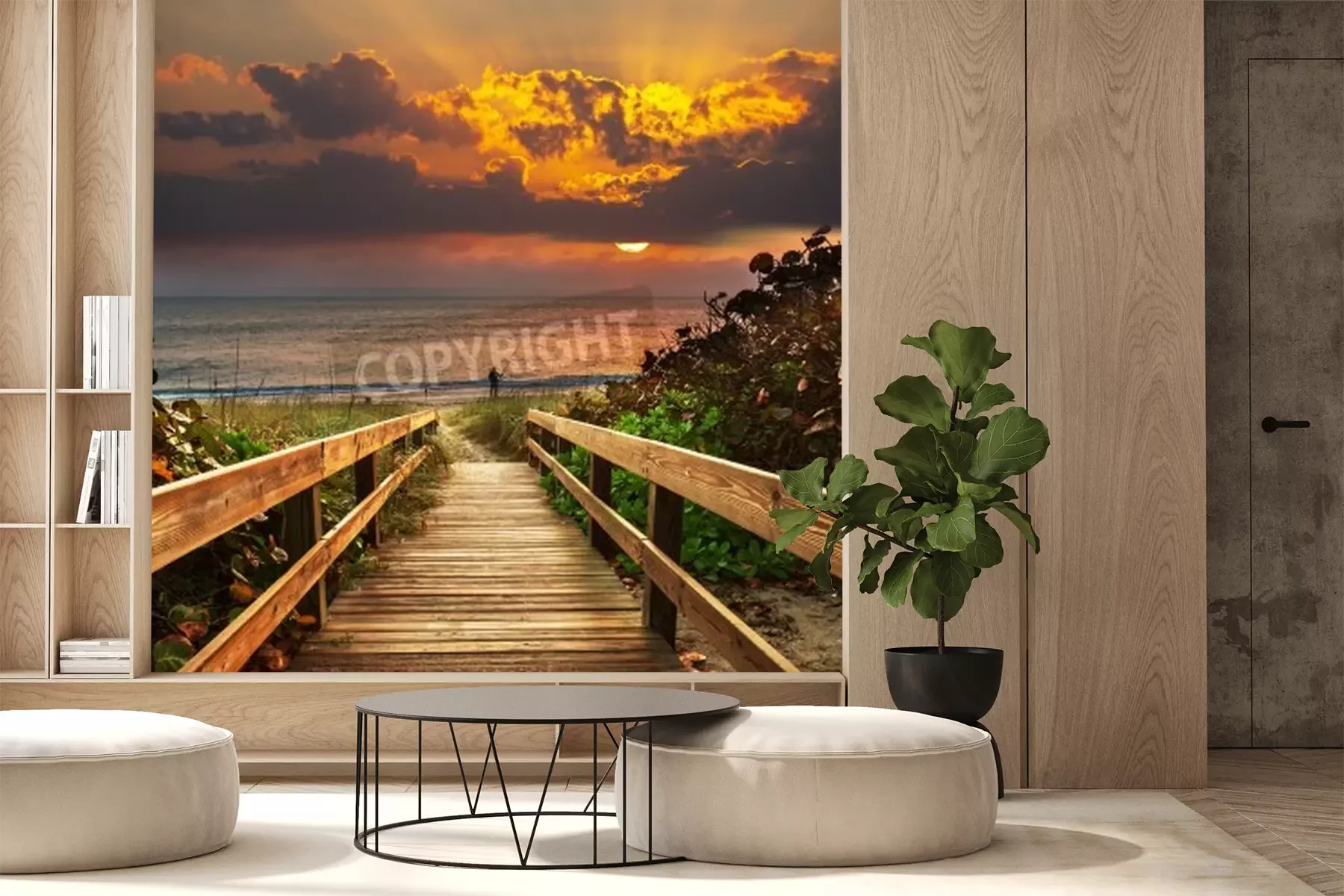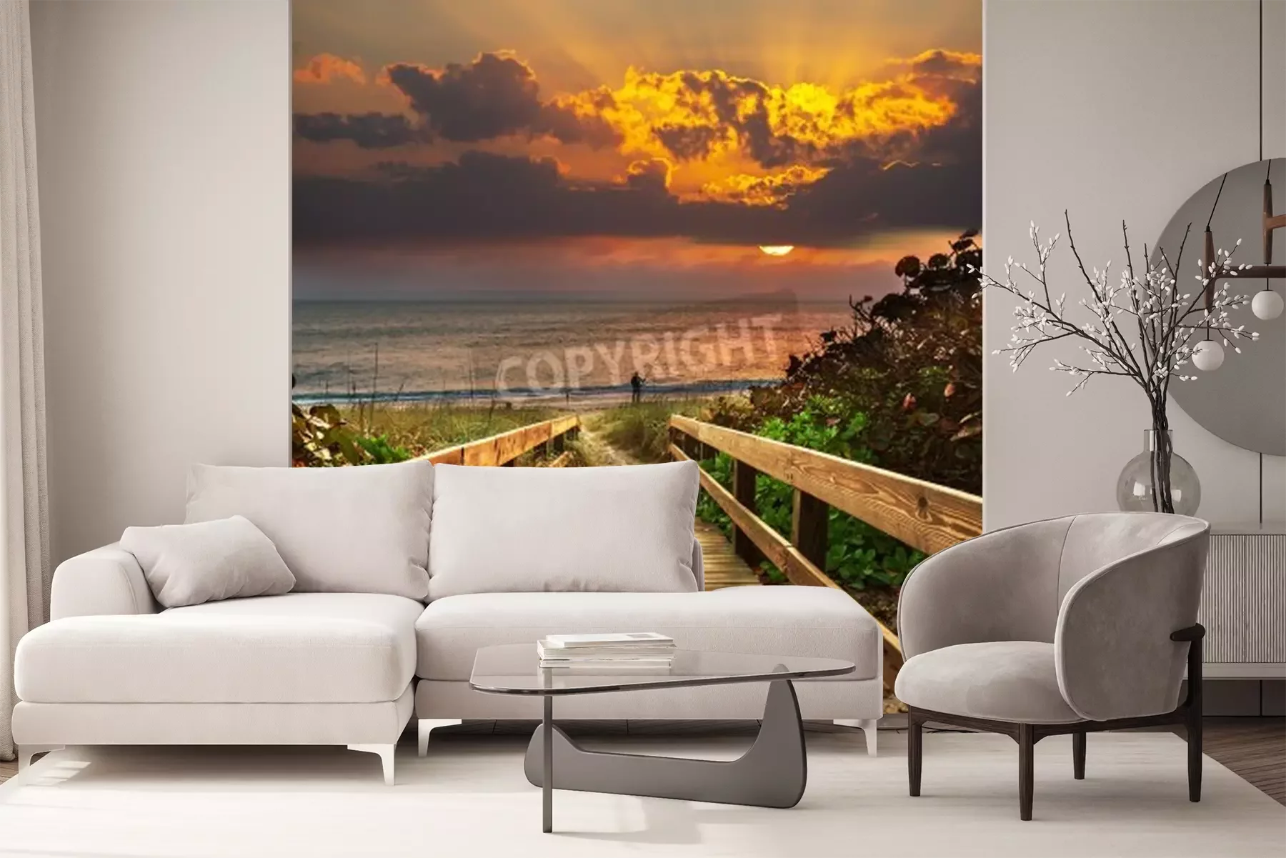Papier peint  Coucher de soleil et l'entrée de la plage