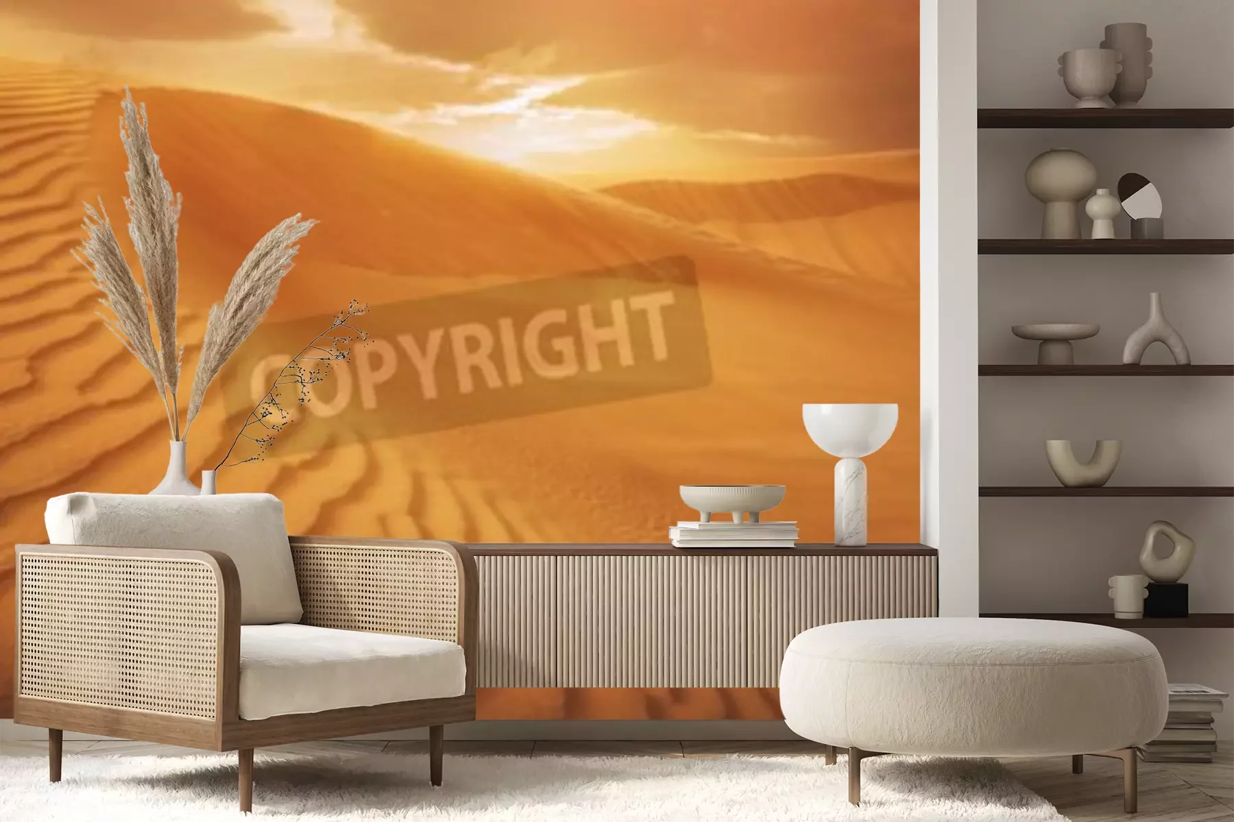 Papier peint  Coucher de soleil orange sur le désert