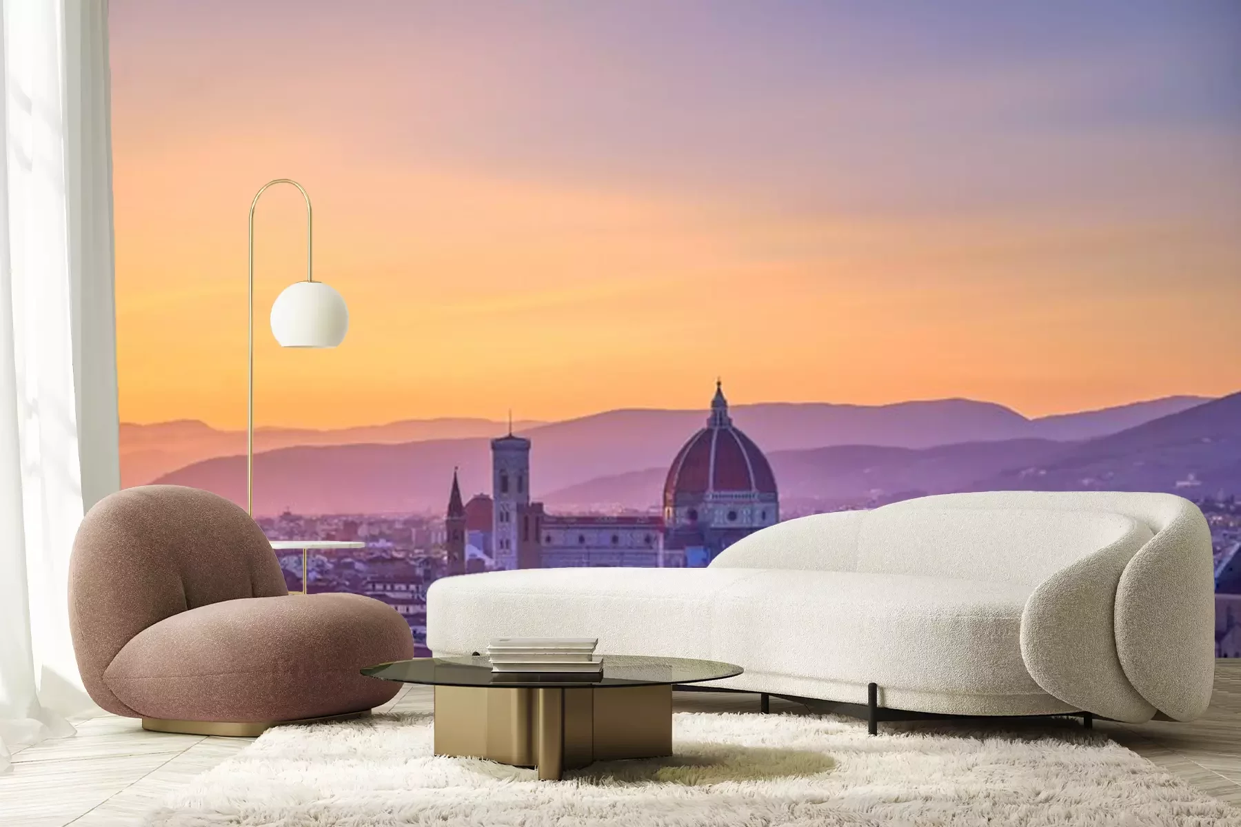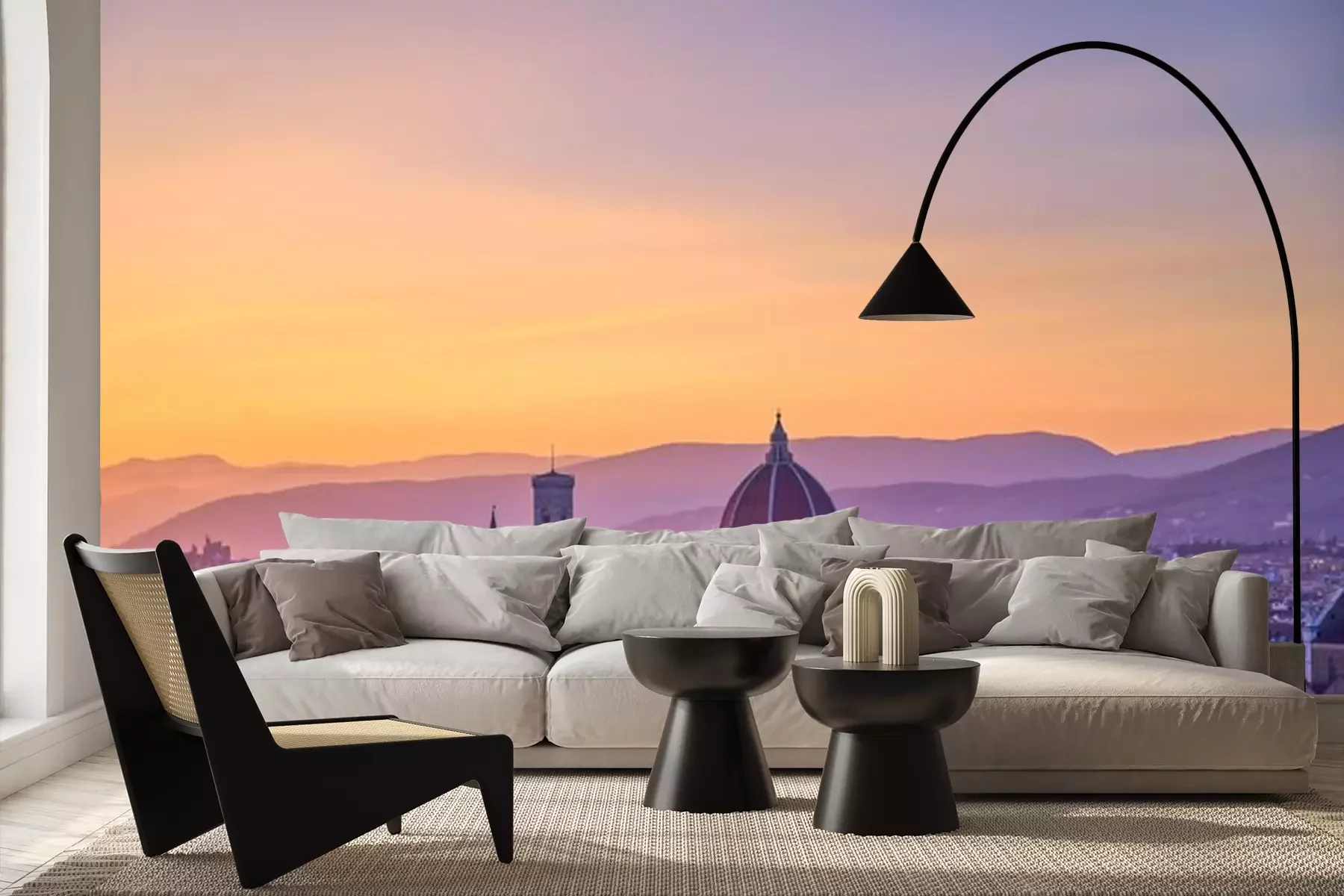 Papier peint  Coucher de soleil sur la ville de Florence ensoleillée