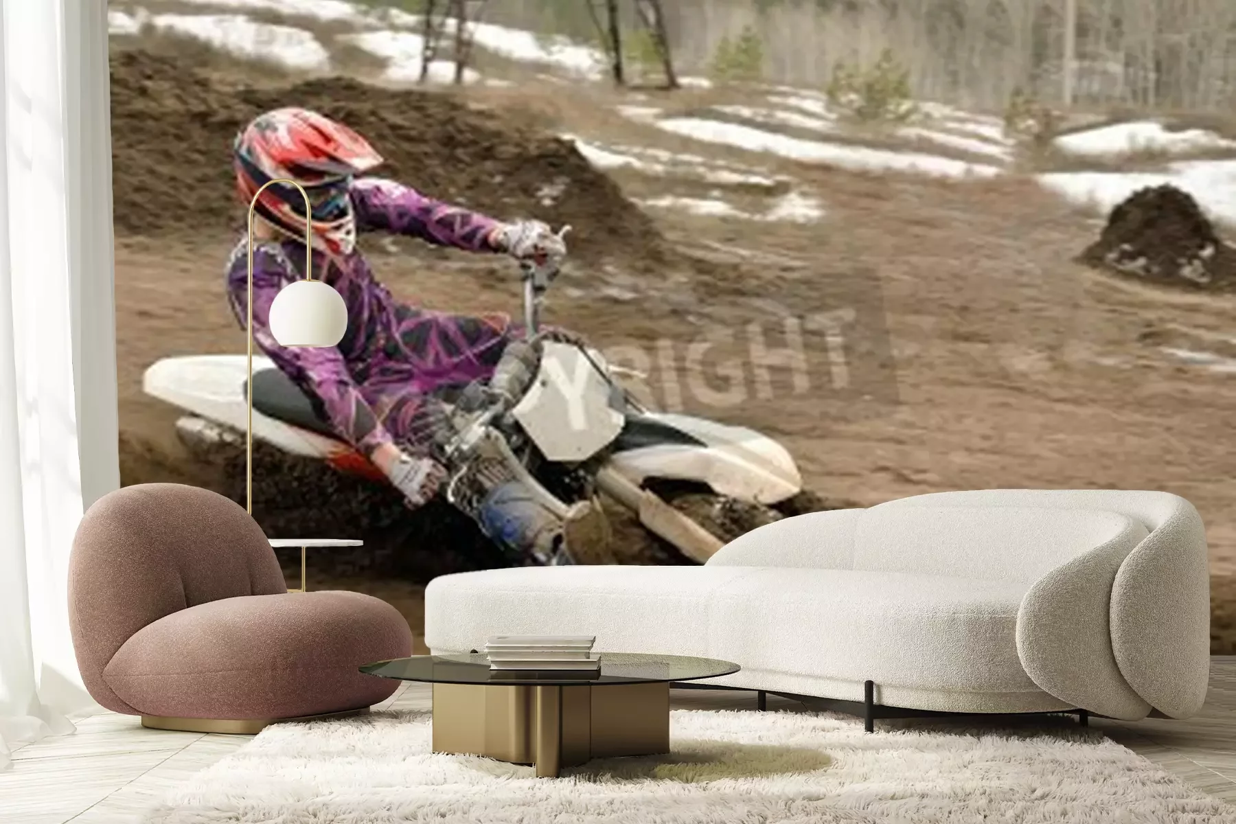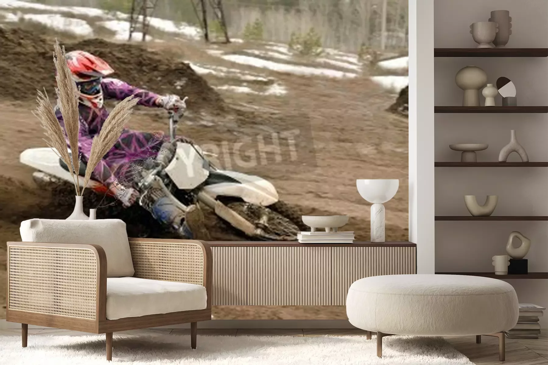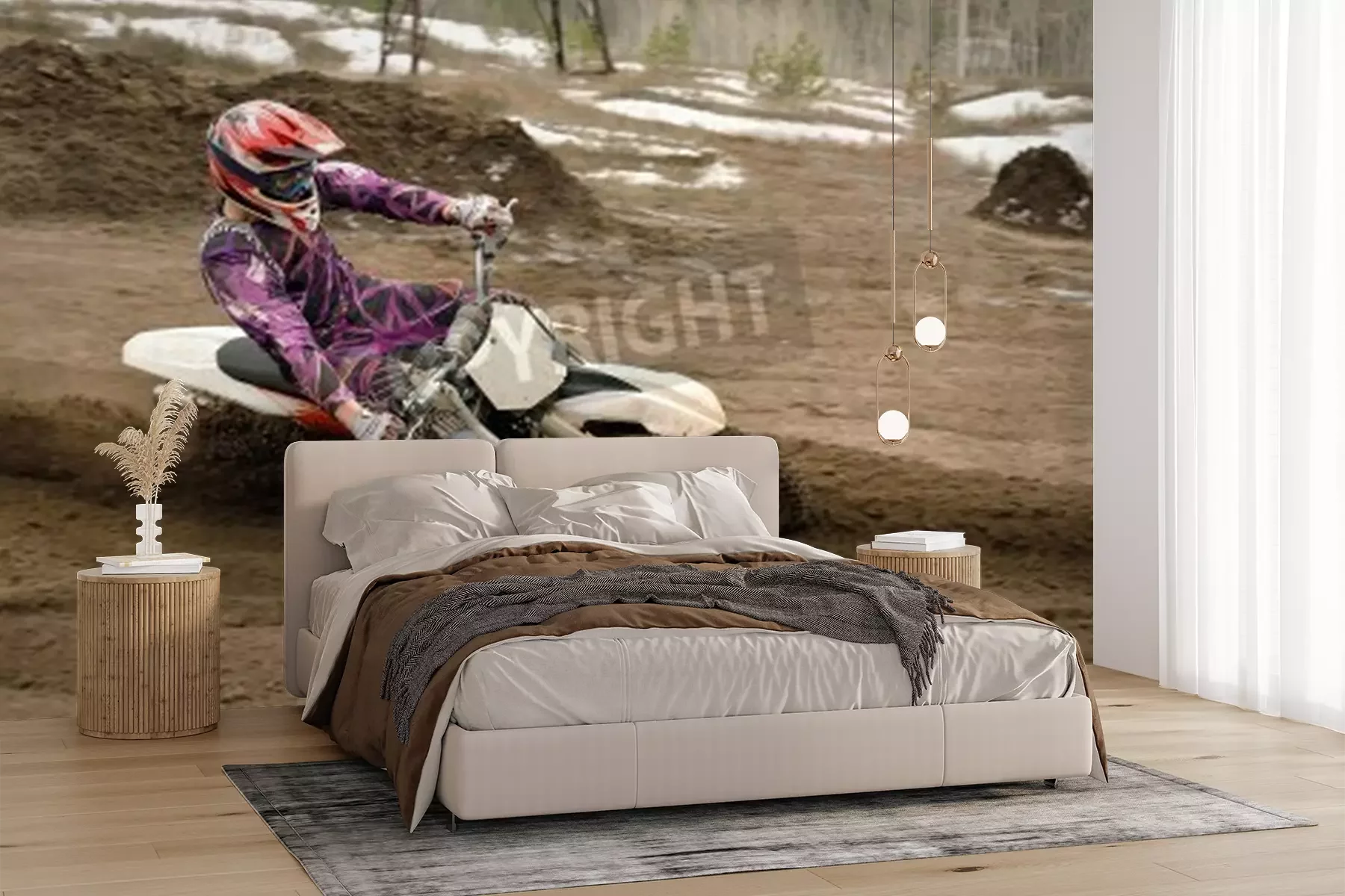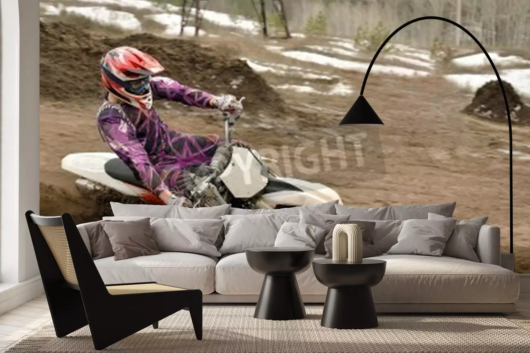 Papier peint  Coureur de motocross d'inclinaison de la moto tourne à brûle-pourpoint de sable