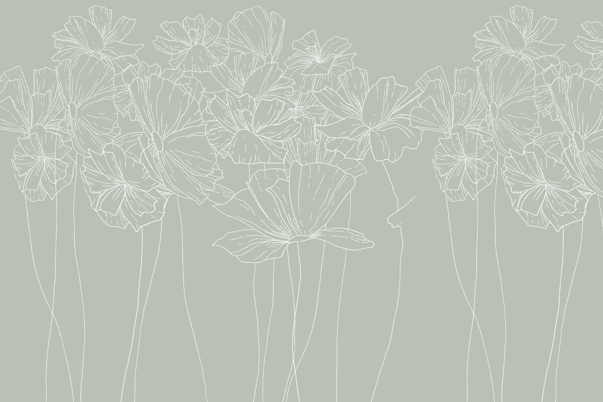 Papier peint : Croquis d'une prairie de fleurs sauvages