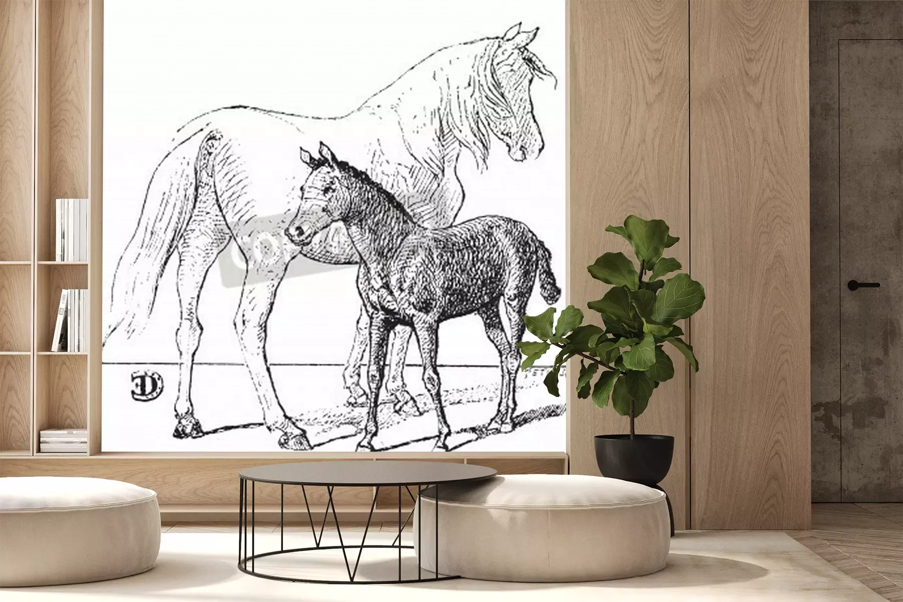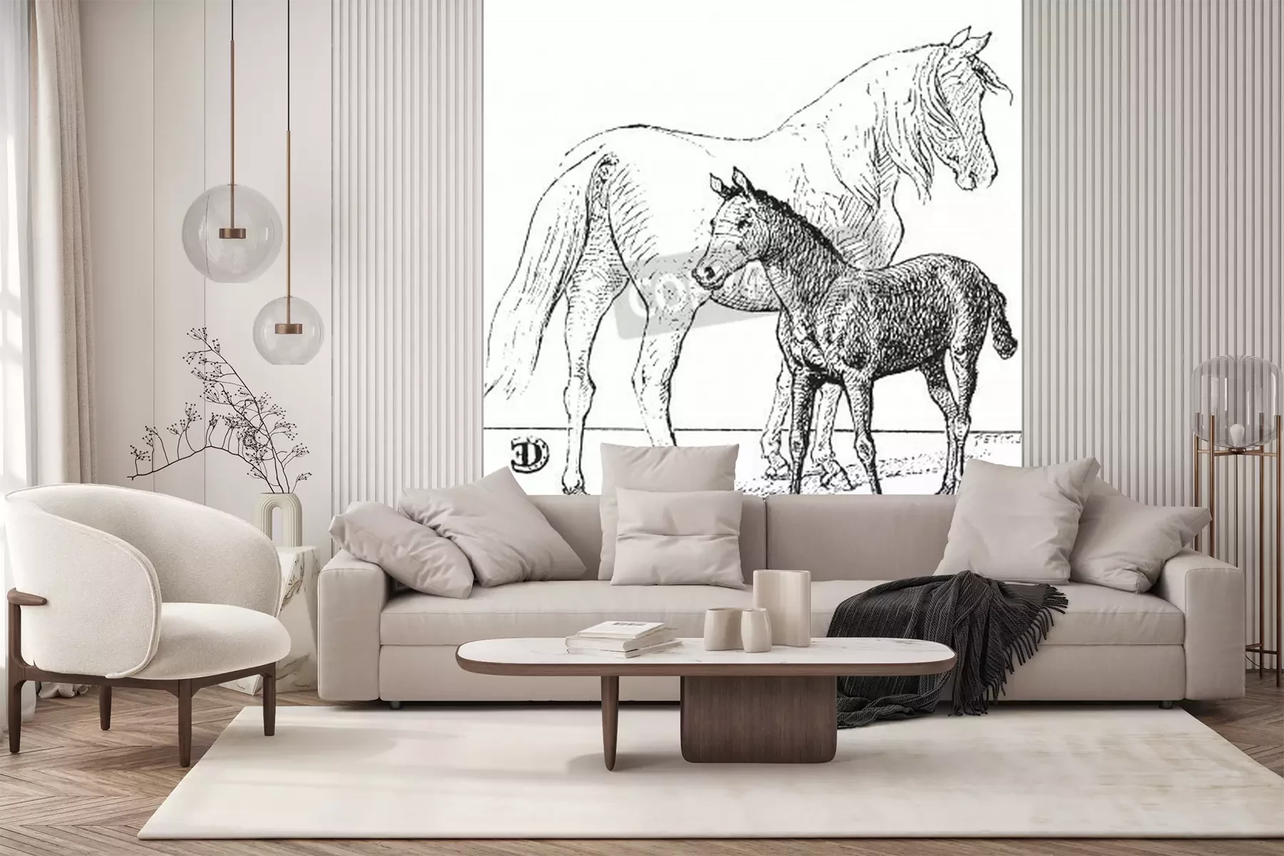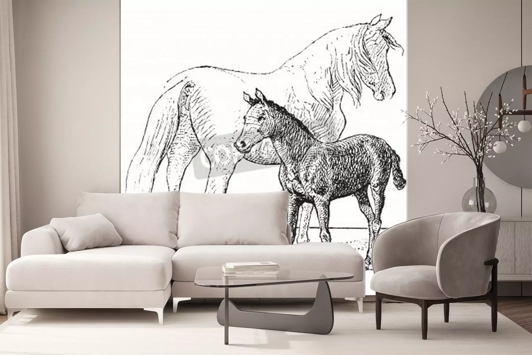 Papier peint  Croquis de chevaux noir et blanc