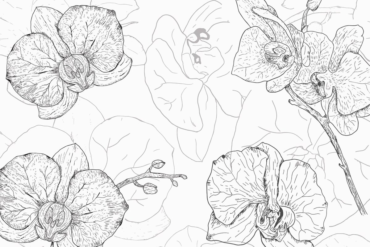 Papier peint : Croquis dessiné de fleurs d'orchidée