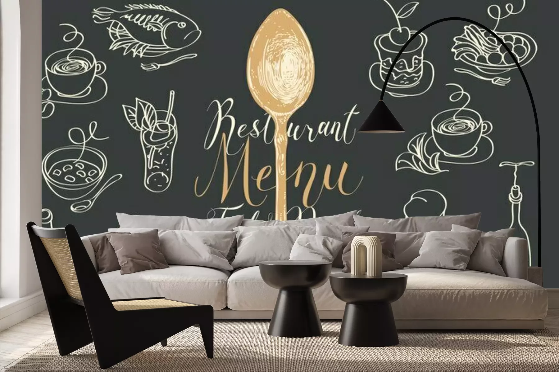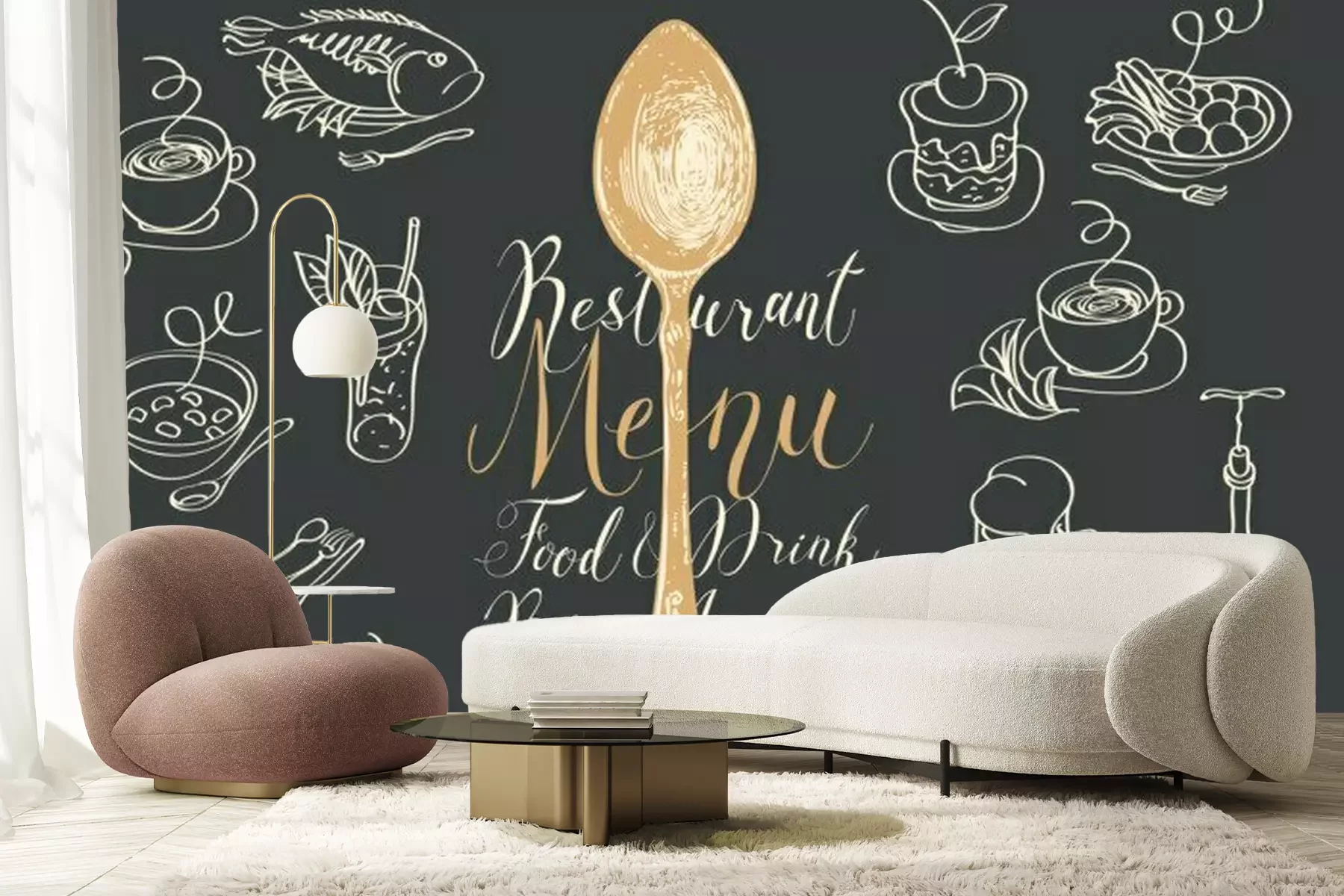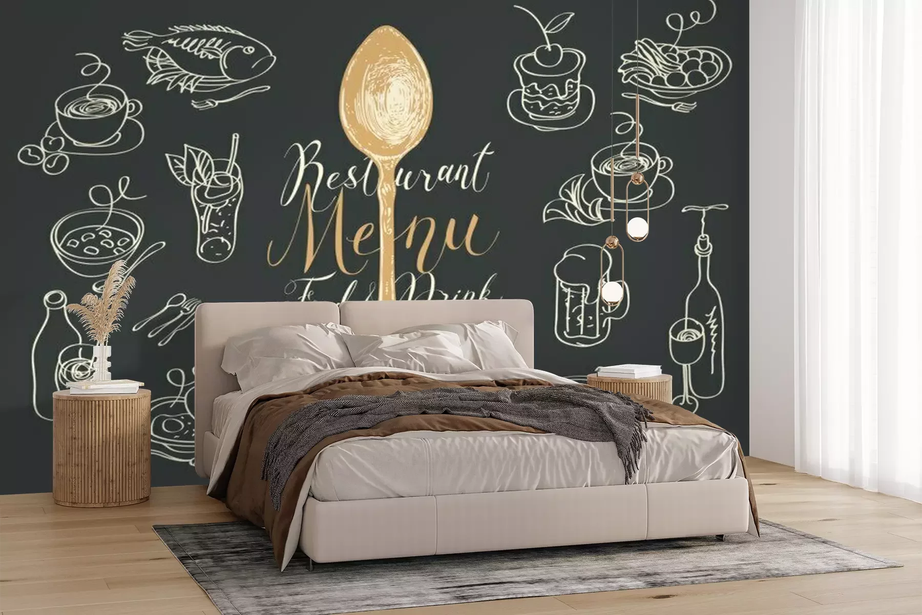 Papier peint  Cuillère de cuisine au milieu des plats dessin