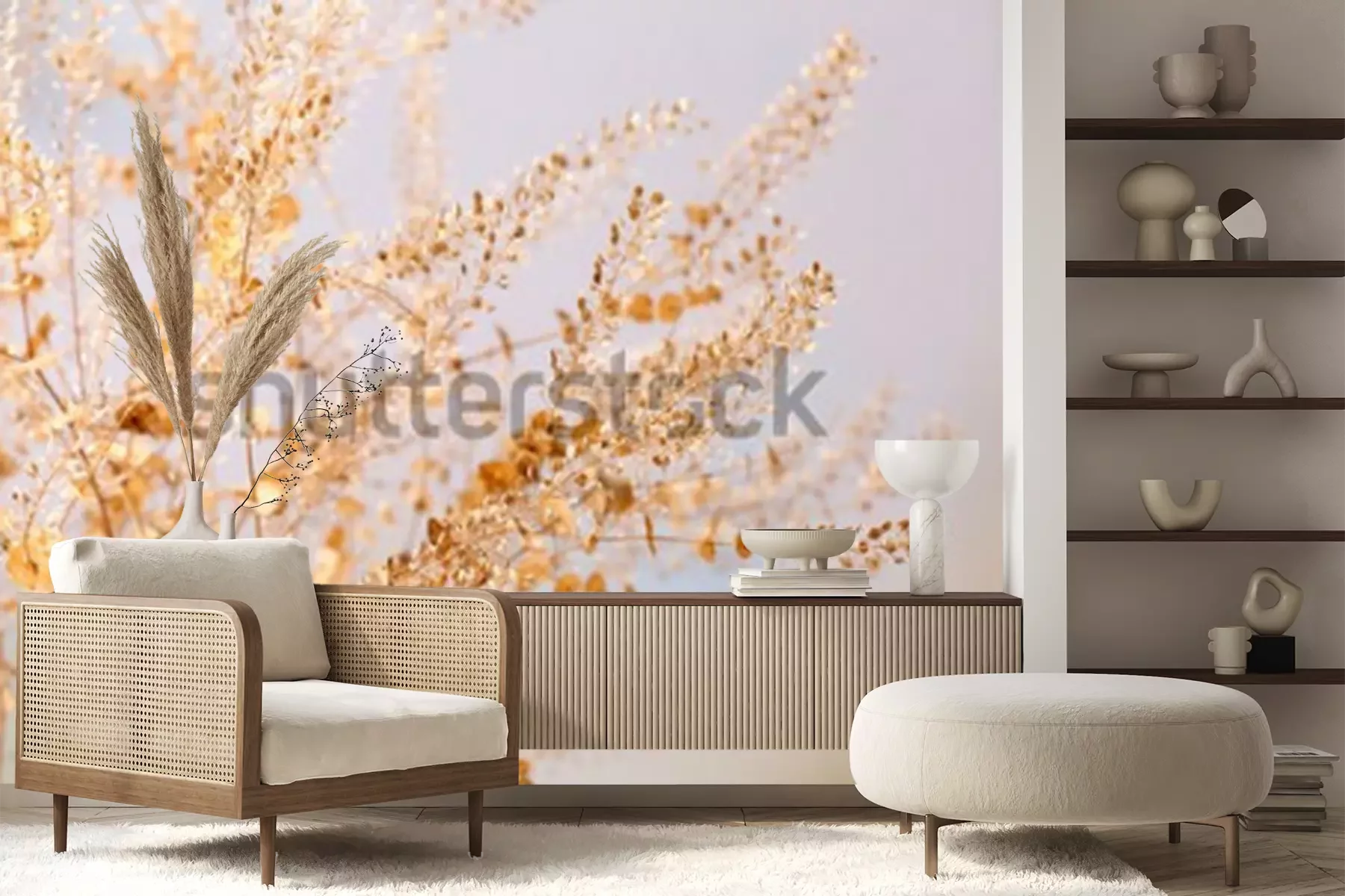 Papier peint  De délicates brindilles sèches sur un fond neutre