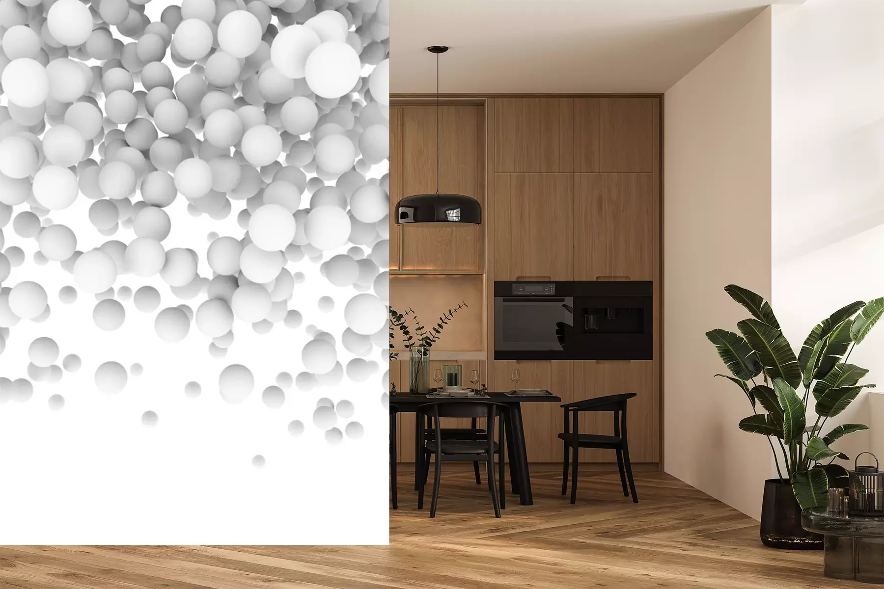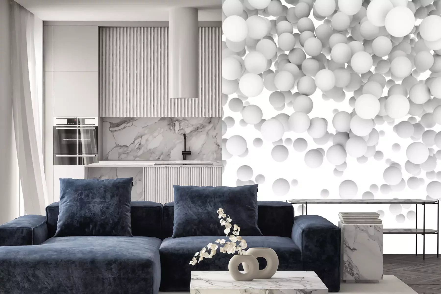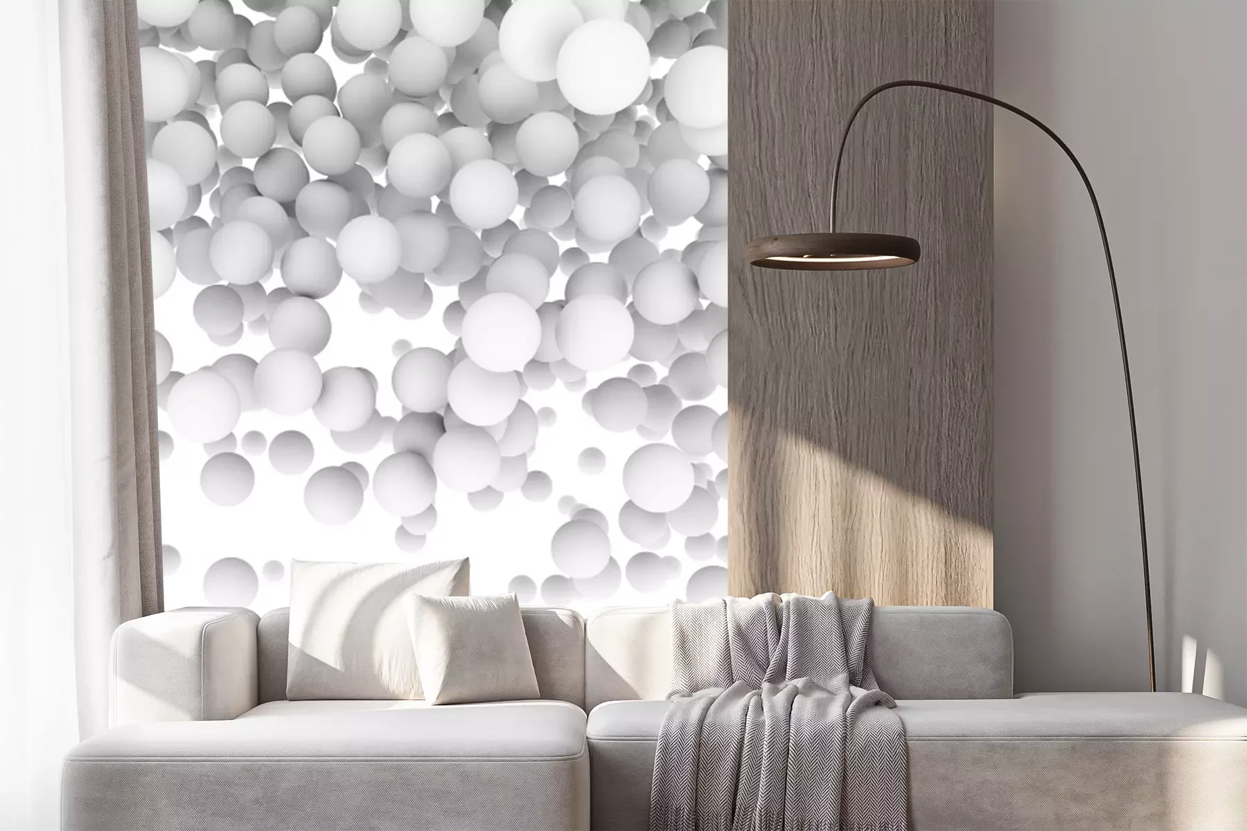 Papier peint  Des boules blanches en 3D tombent du ciel