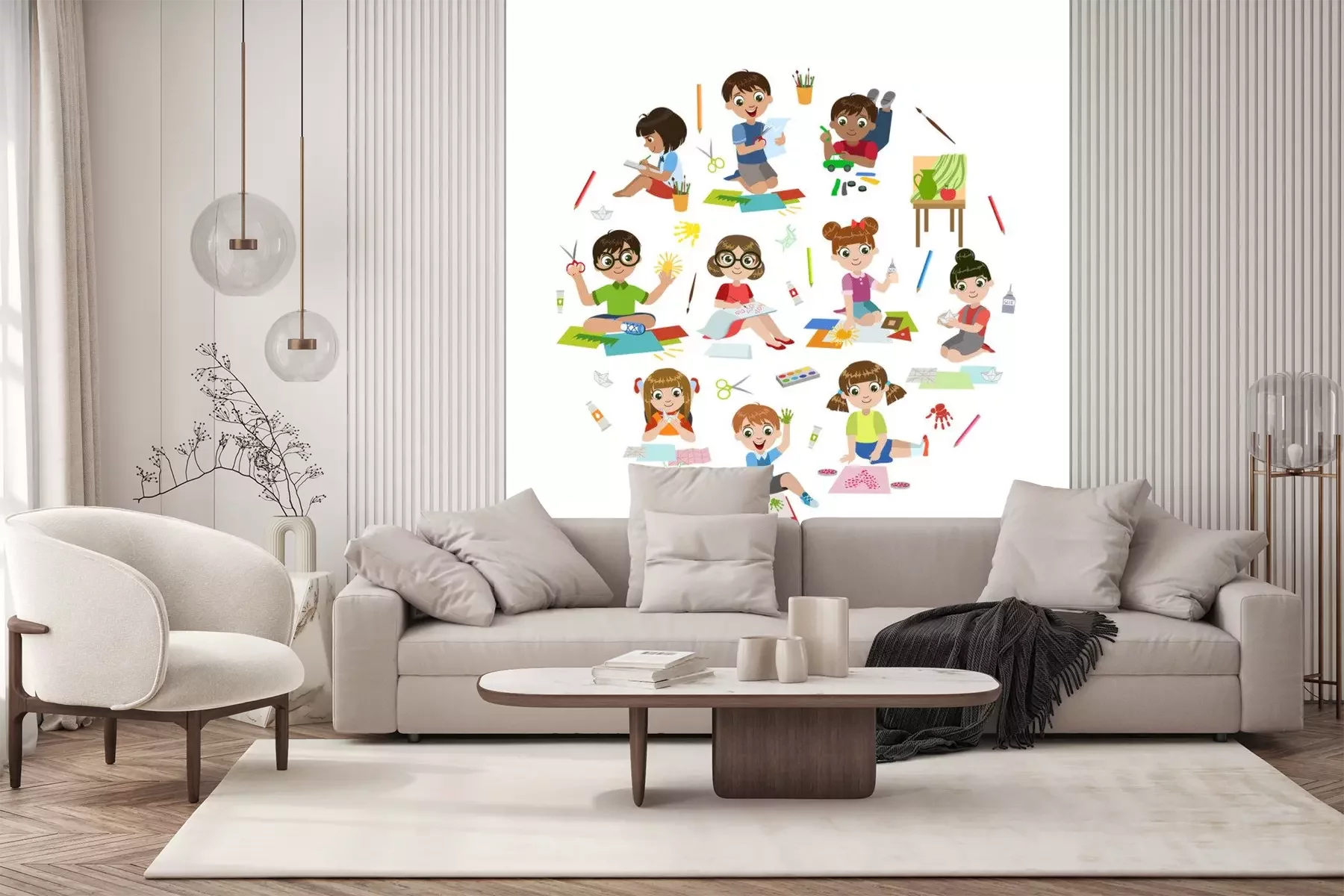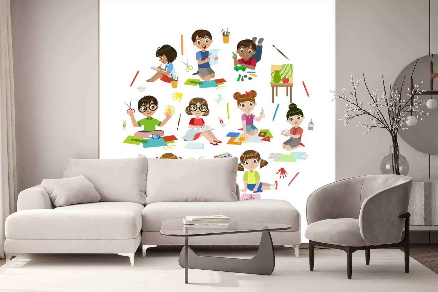 Papier peint  Des enfants heureux pendant une leçon d'art plastique
