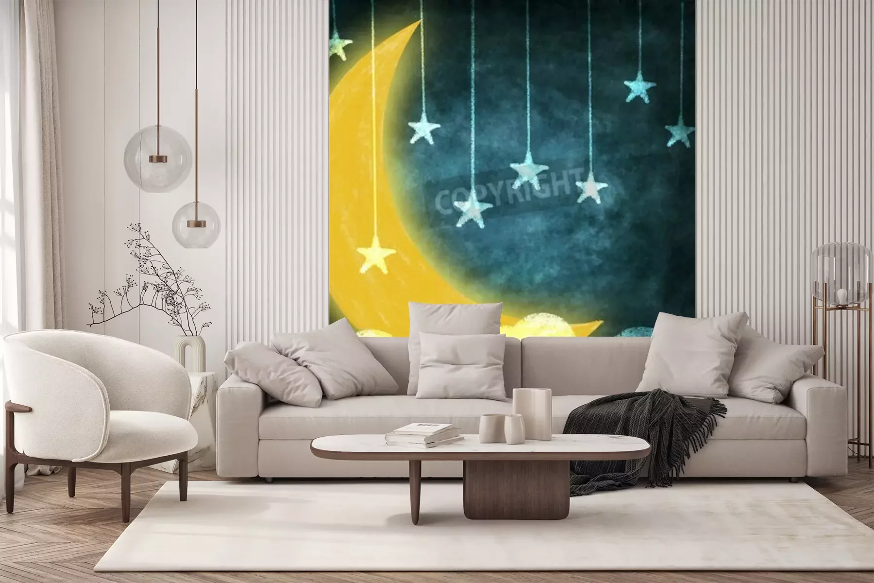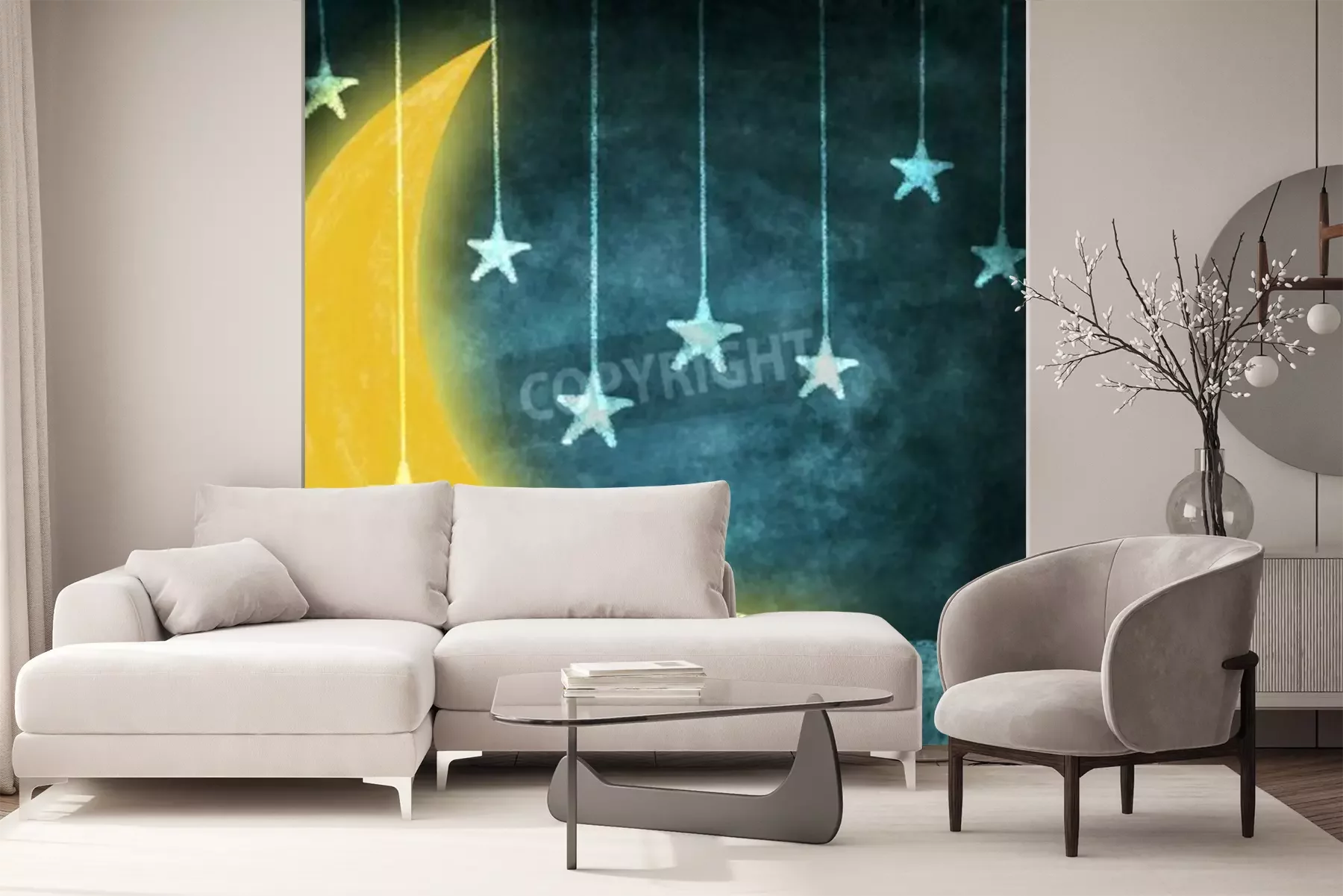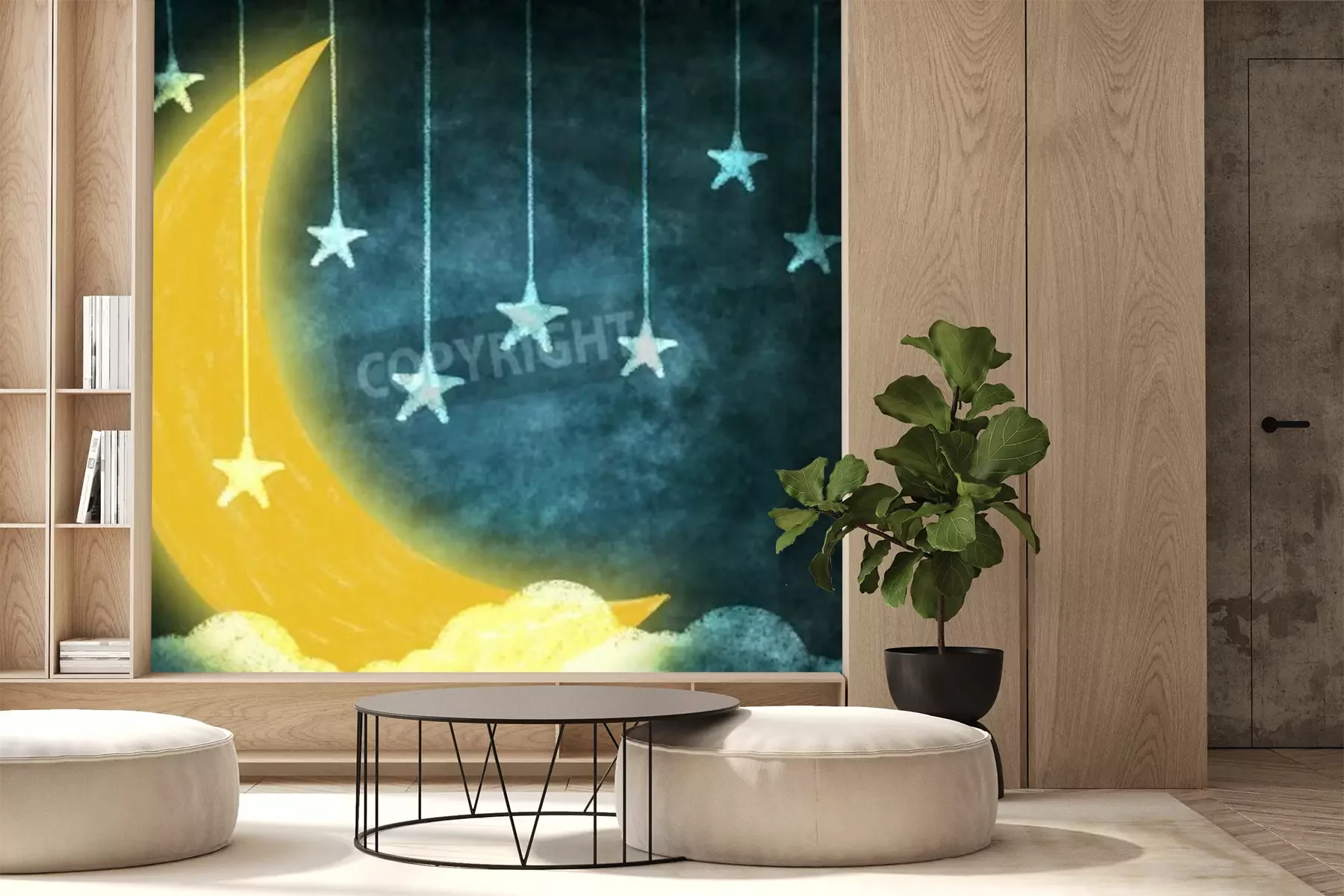 Papier peint  Dessin avec des étoiles et la lune