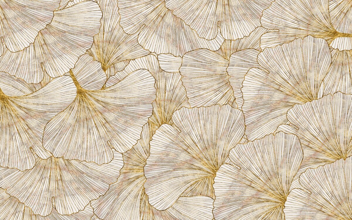 Papier peint : Dessin de feuilles de ginkgo dorées