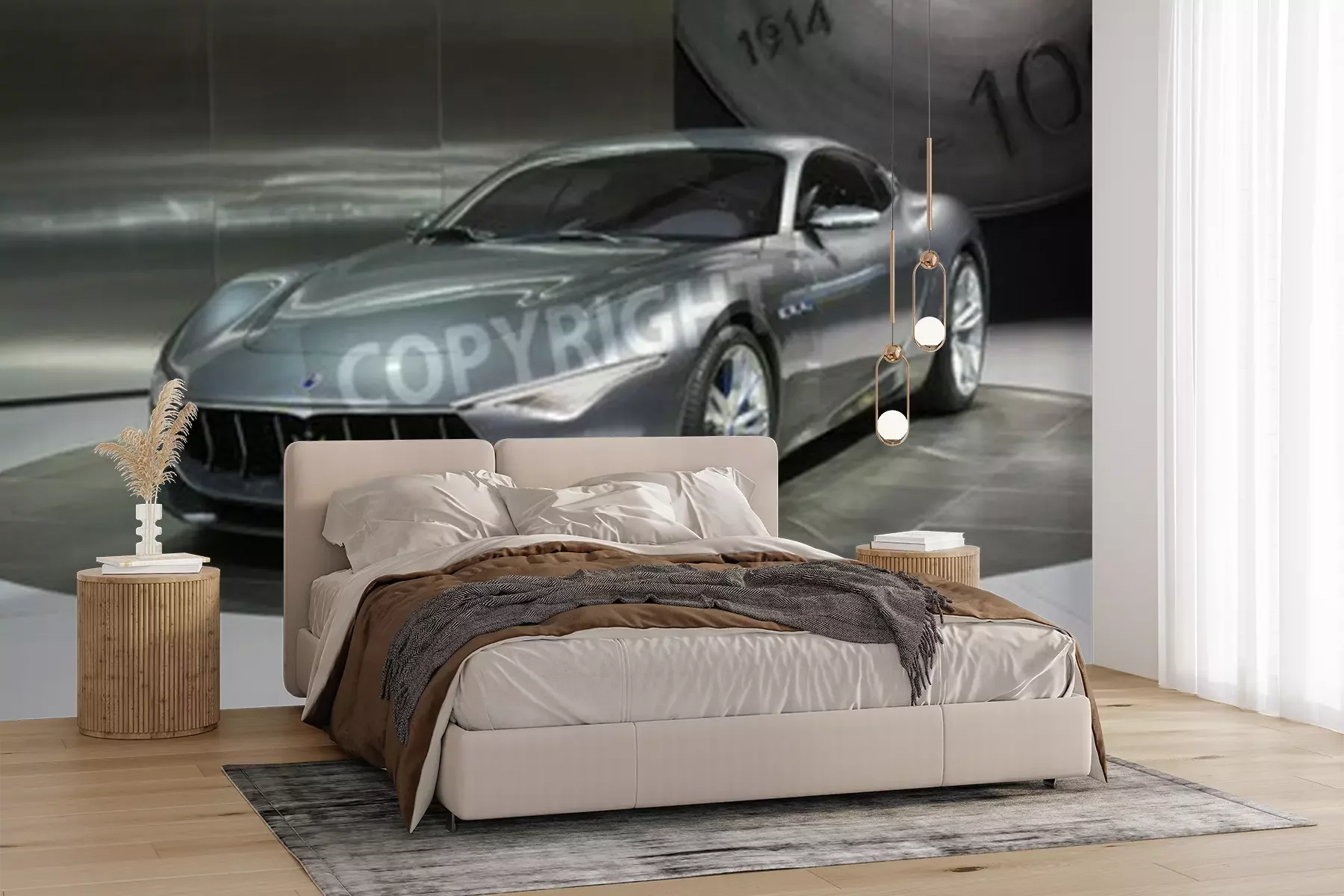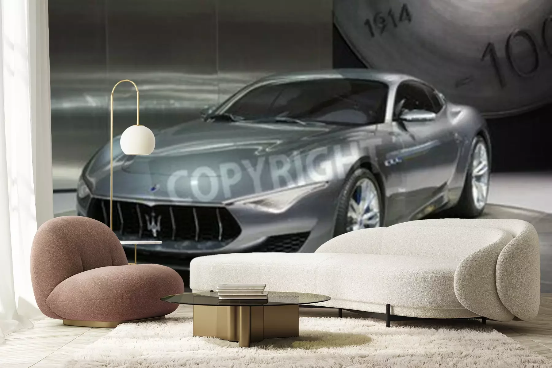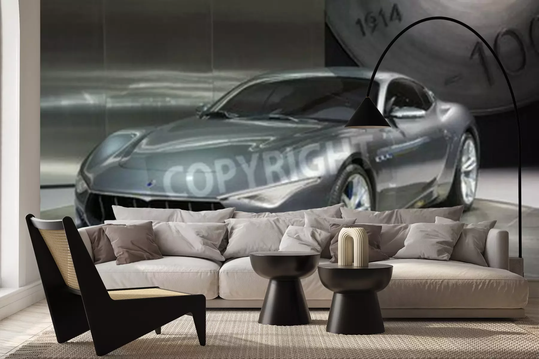 Papier peint  Detroit, MI, USA - 12 Janvier, 2015: Maserati Alfieri concept car sur l'écran lors de la Detroit International Auto Show au Cobo Center au centre-ville de Detroit 2015.
