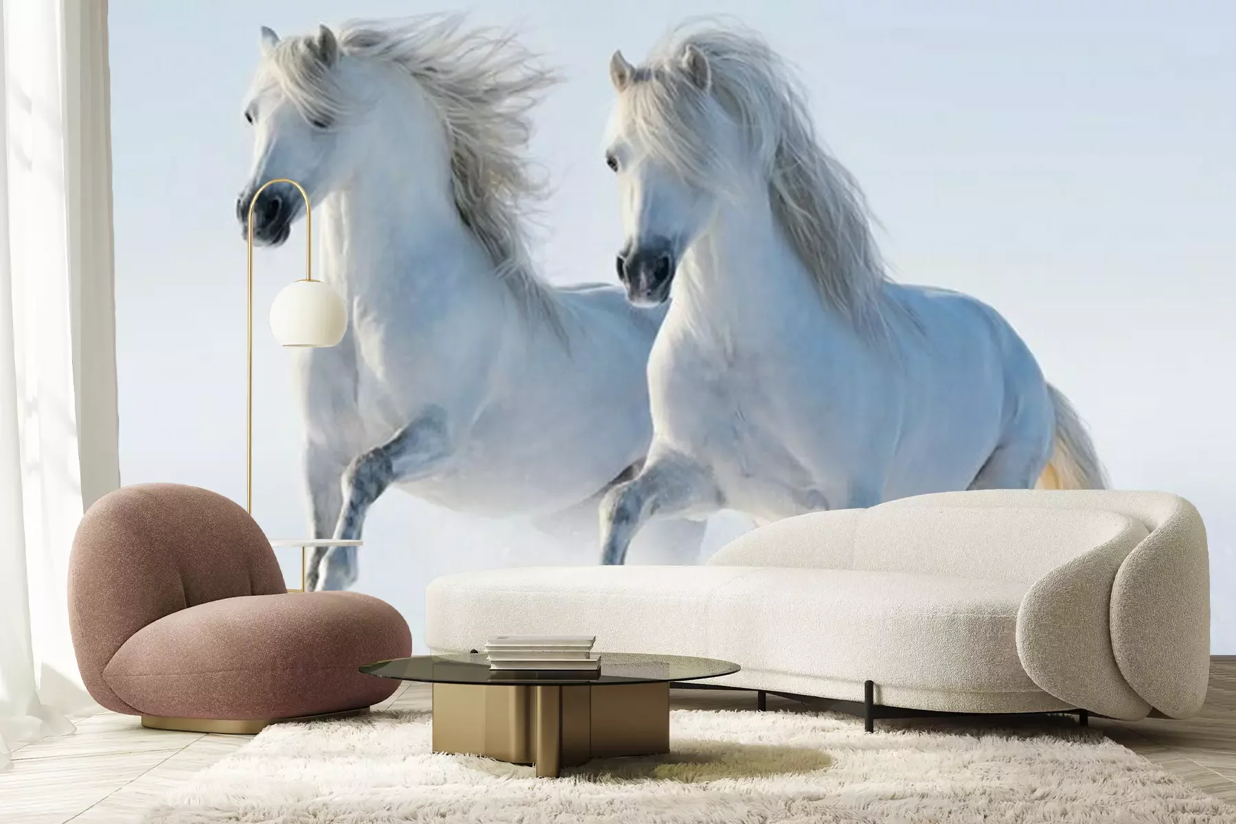 Deux chevaux galopant dans la neigeLivraison sans problème assurée par des transporteurs de confiance