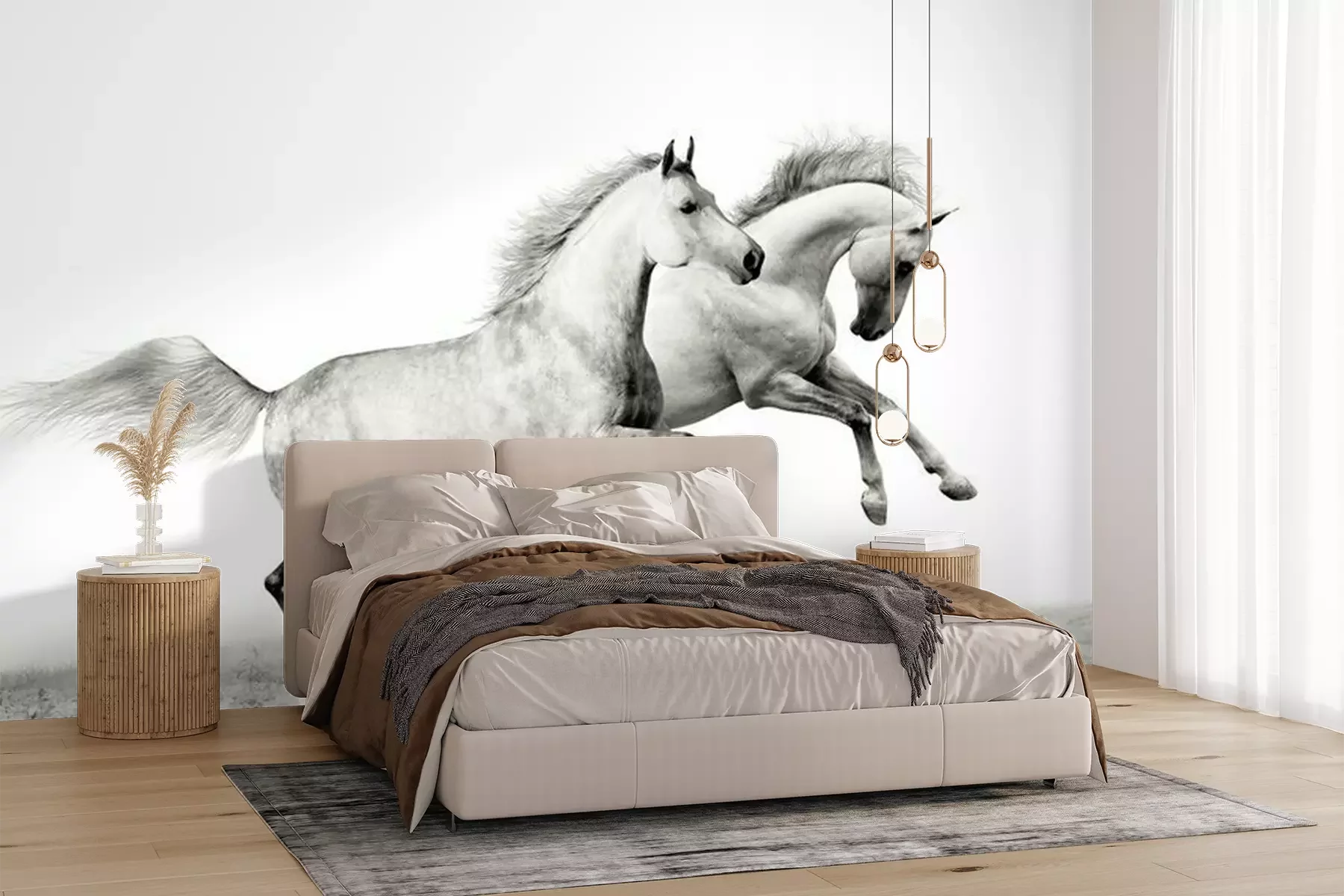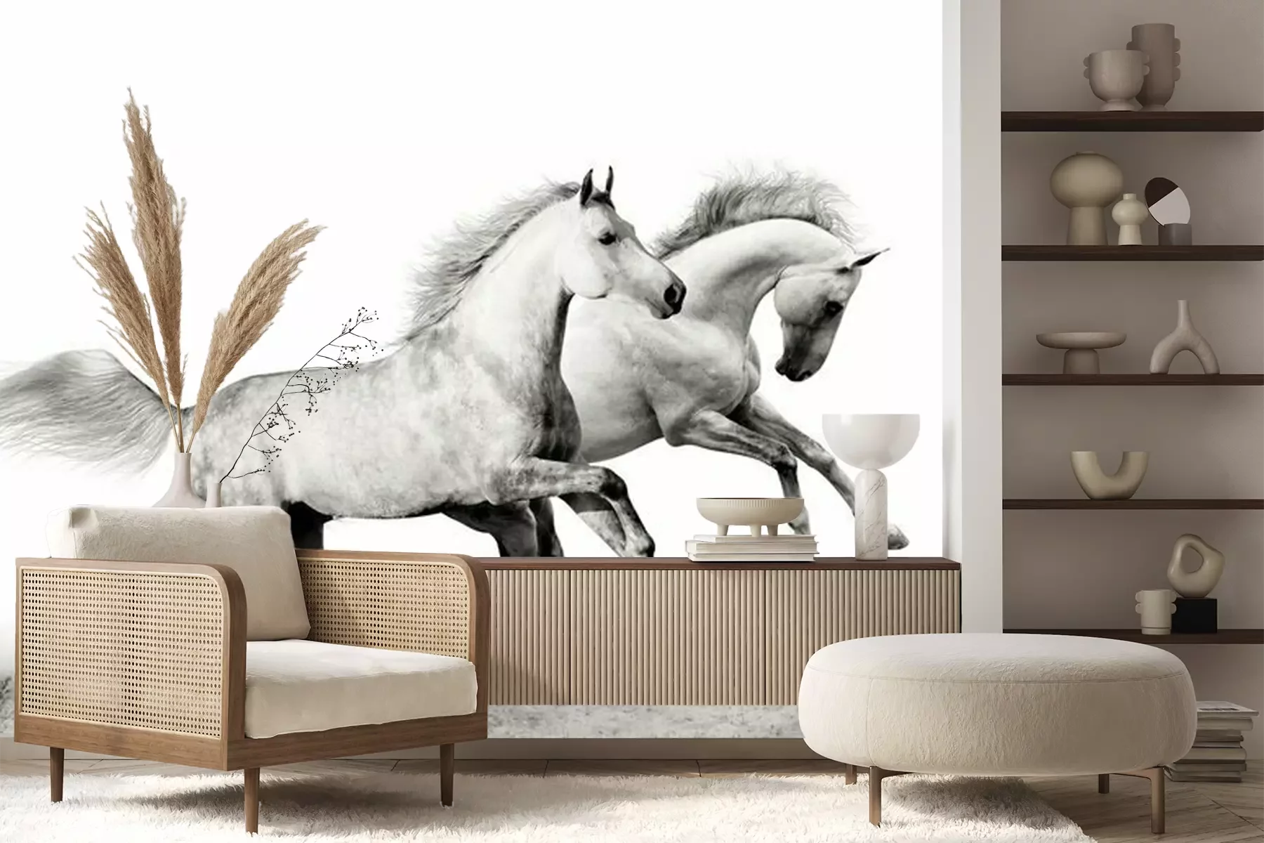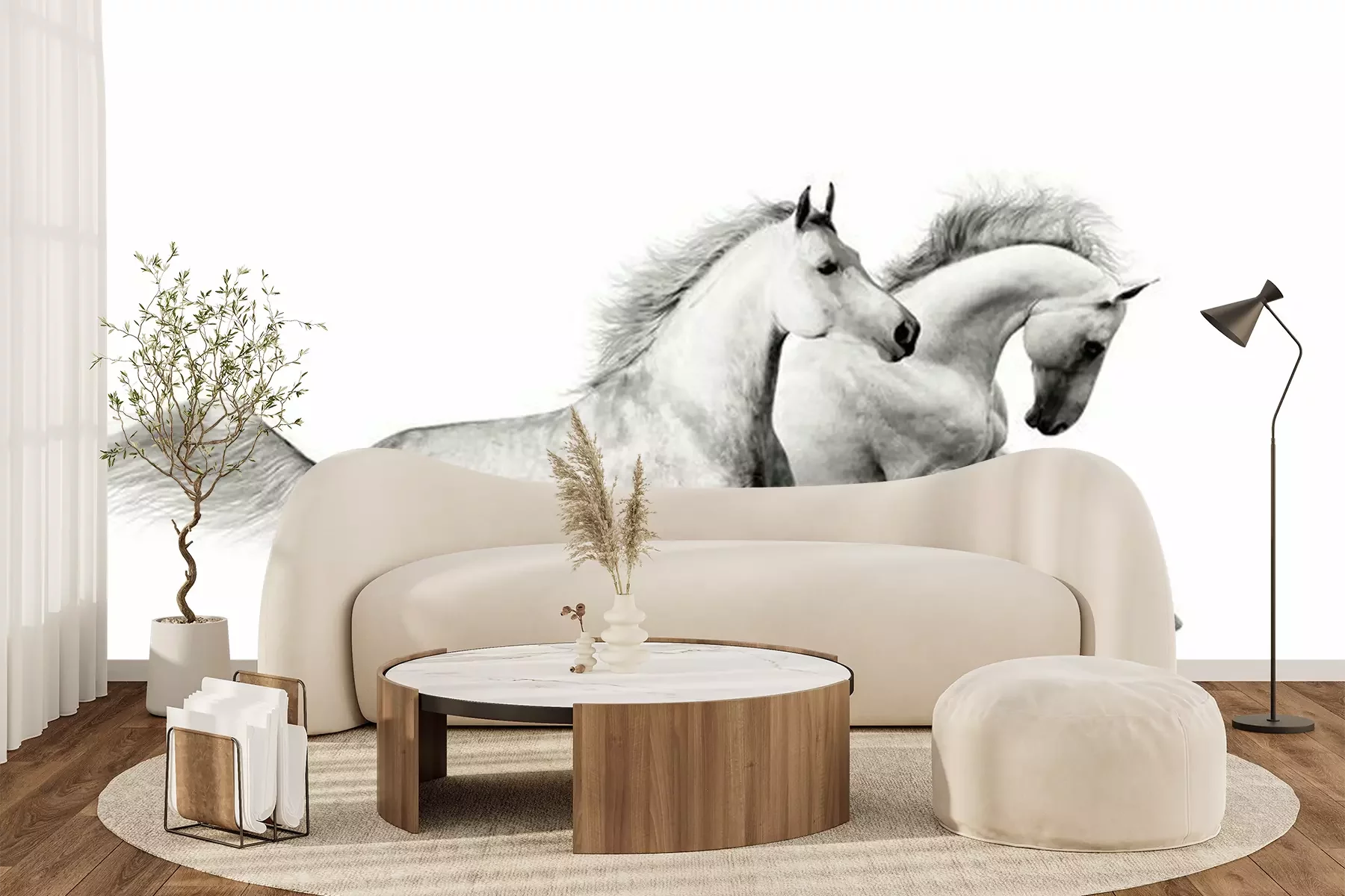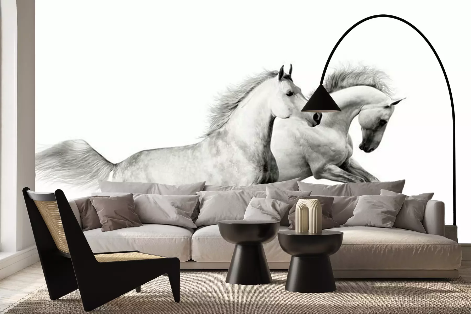 Des chevaux blancs dans une poussière blancheLivraison sans problème assurée par des transporteurs de confiance