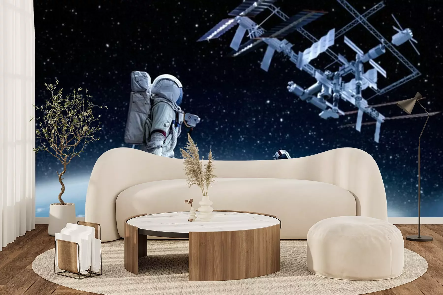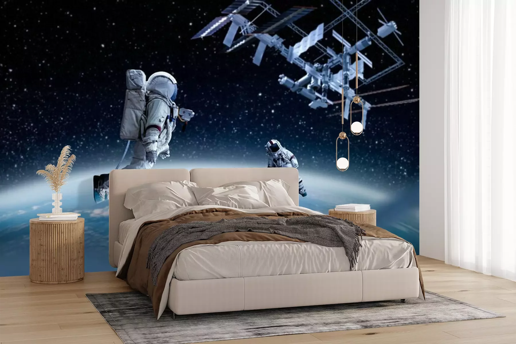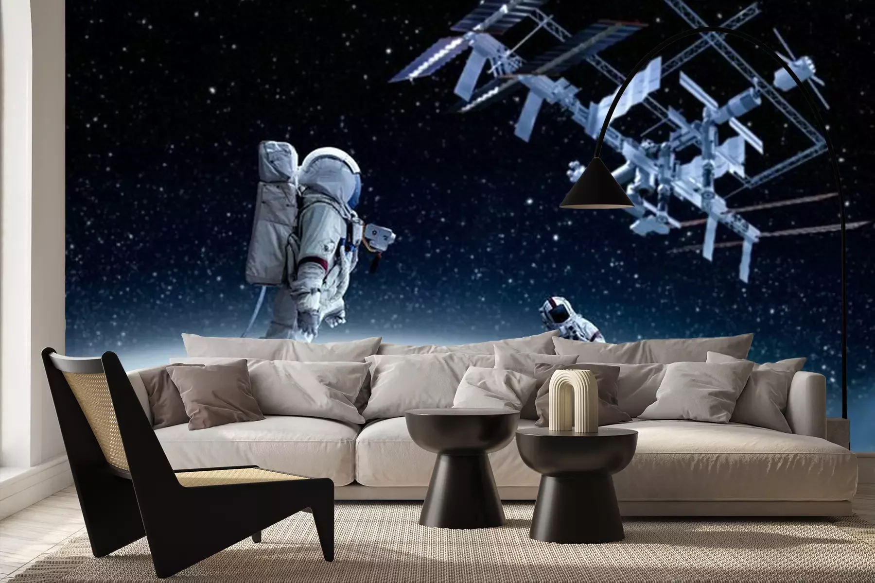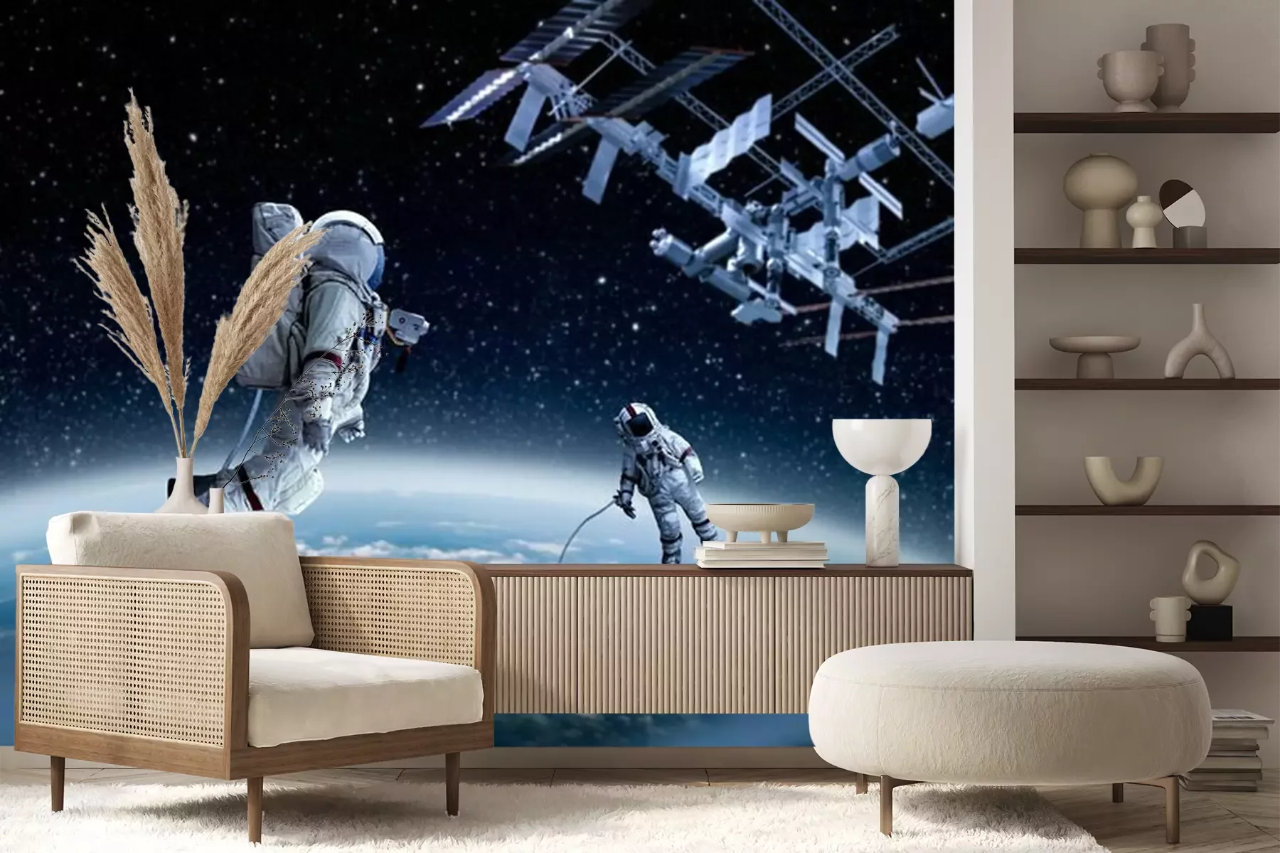 Papier peint  Deux cosmonautes à côté d'un satellite