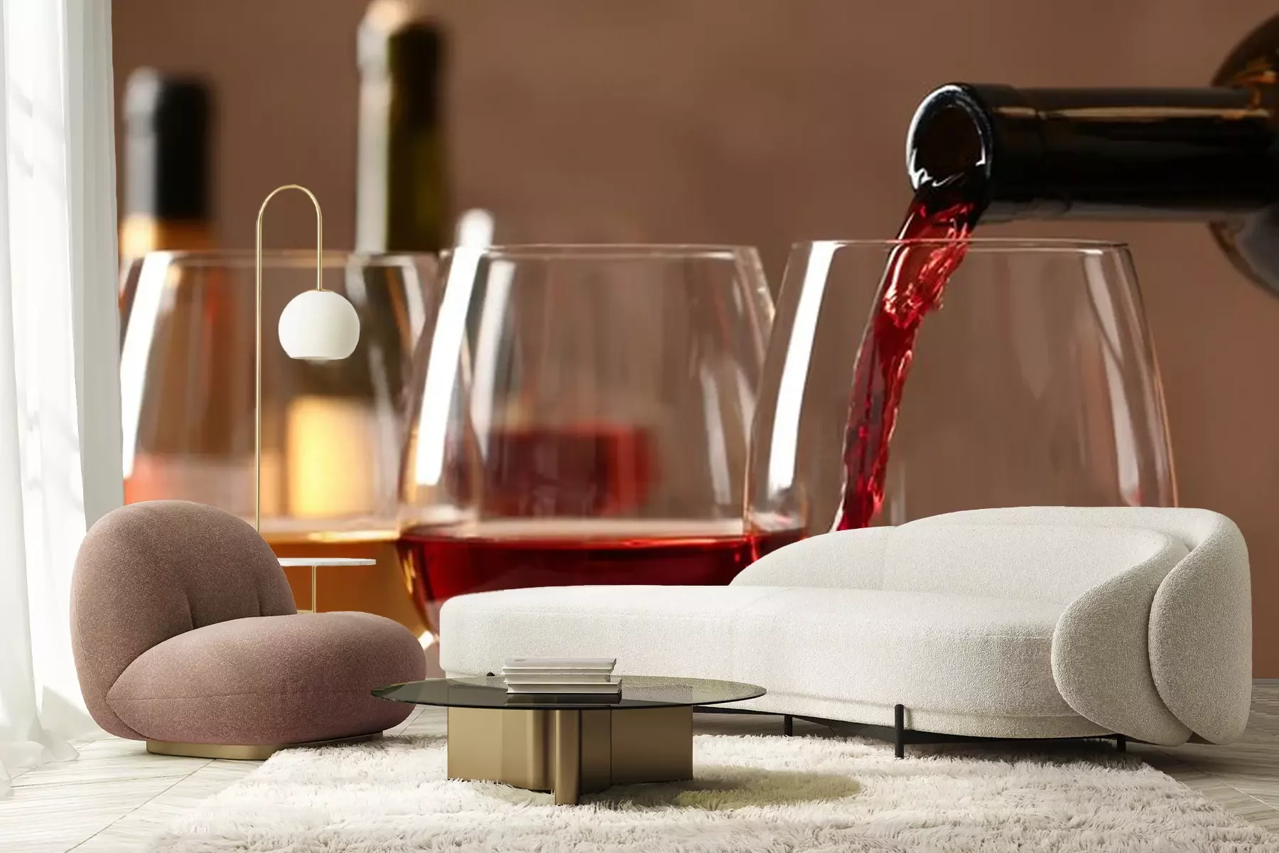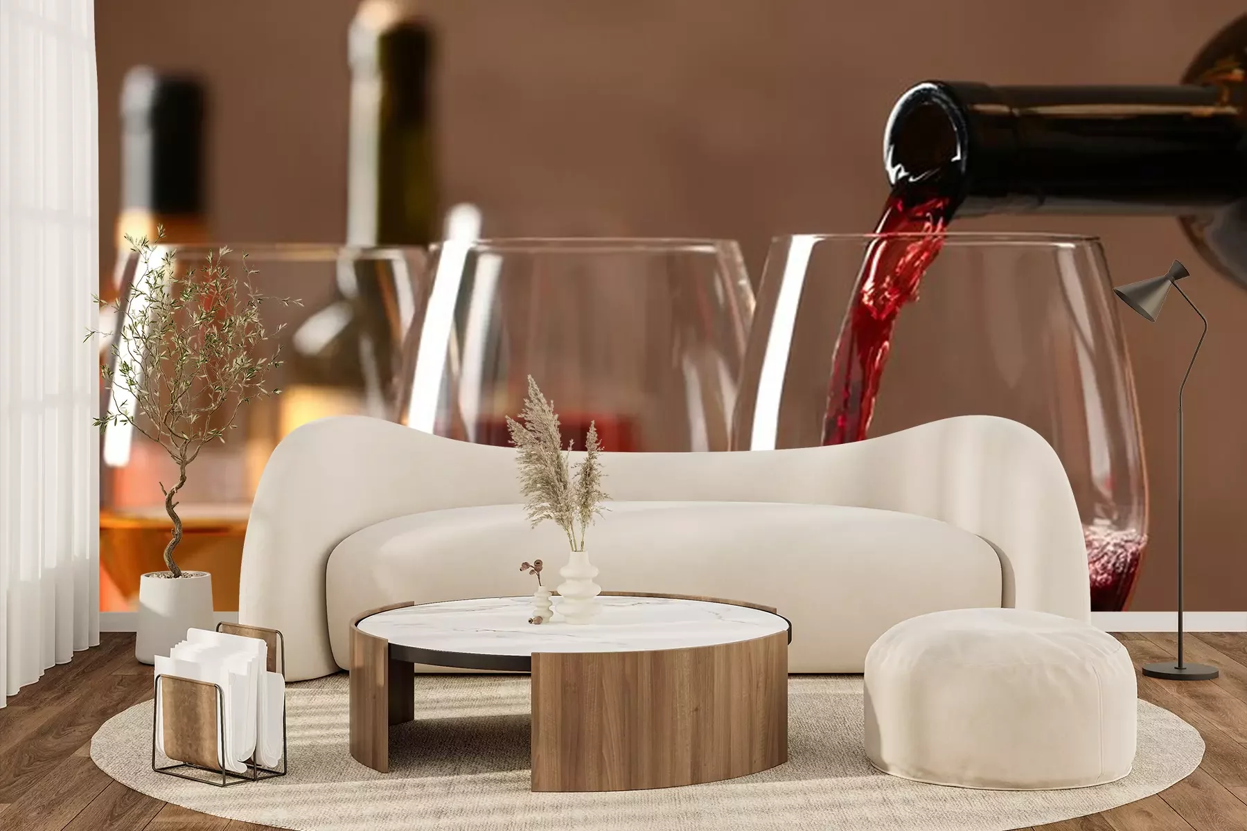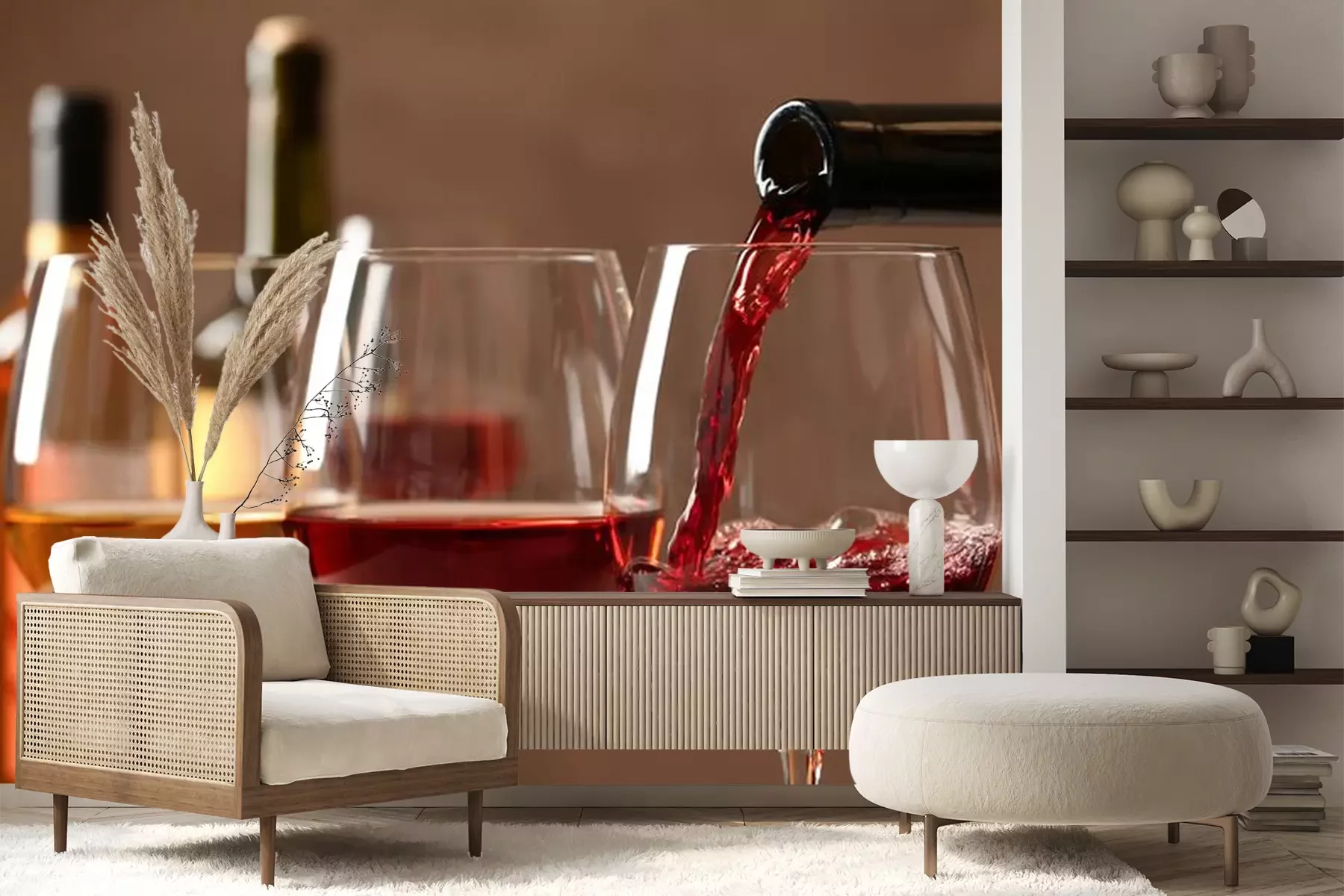 Papier peint  Du vin versé dans des verres