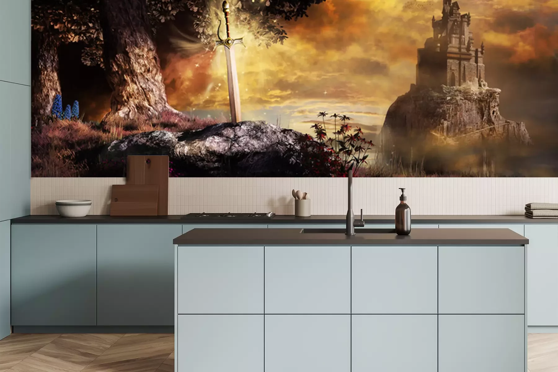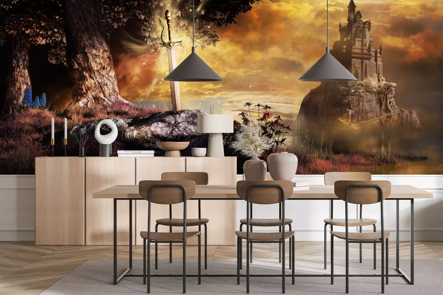 Papier peint  Epée dans la pierre dans un monde fantastique