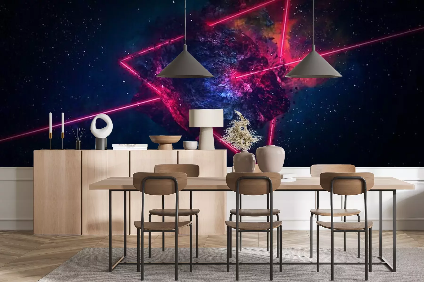 Papier peint  Espace abstrait, comète en feu, flash, laser à travers la pierre, couleurs vives