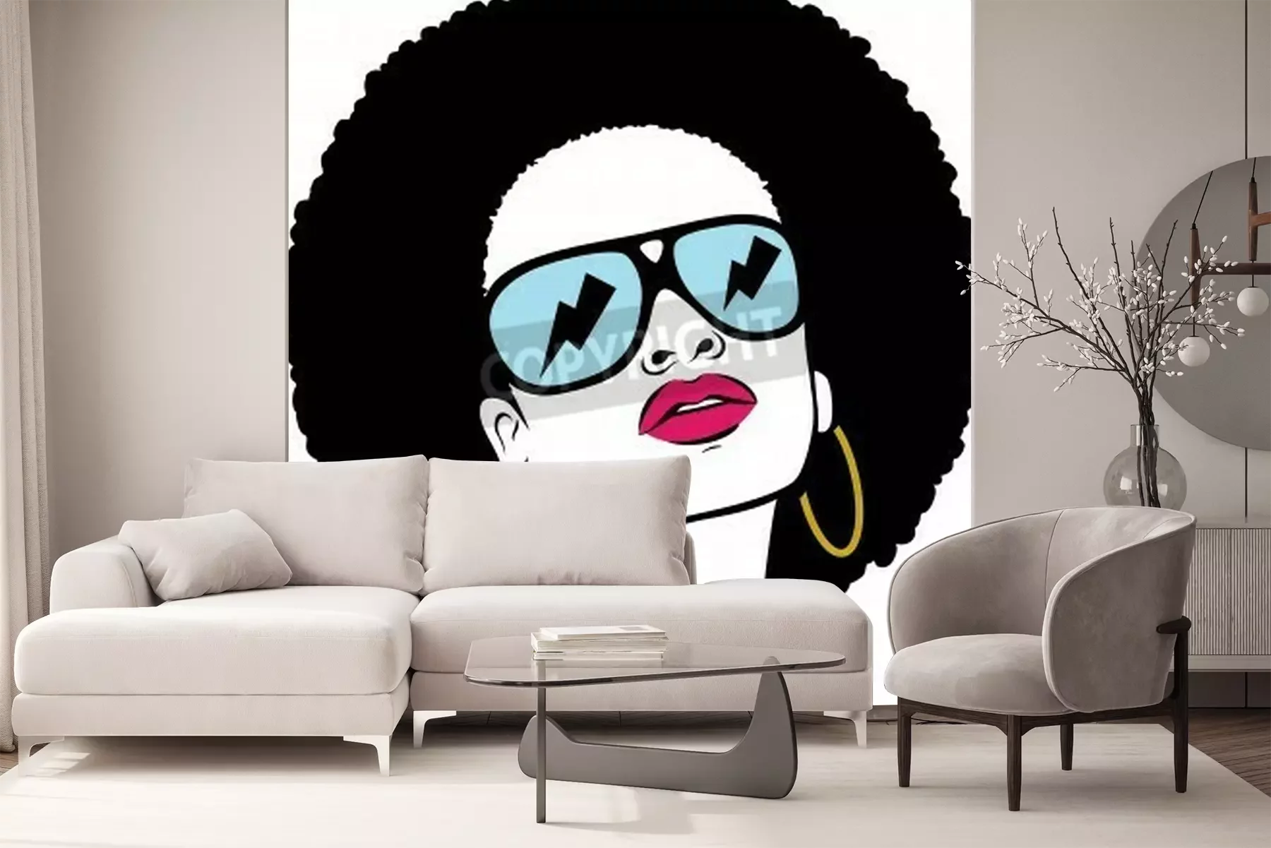 Papier peint  Femme coiffure afro pop art