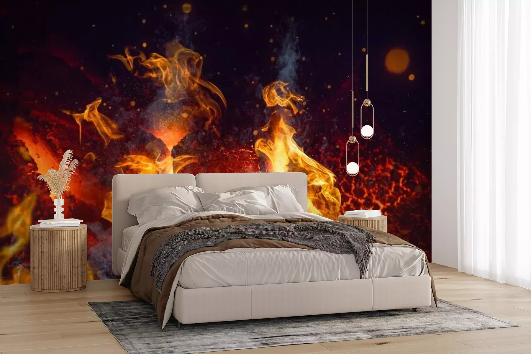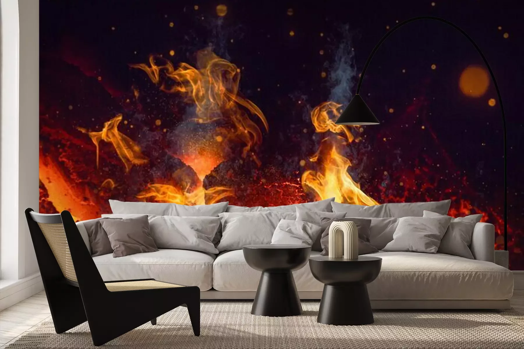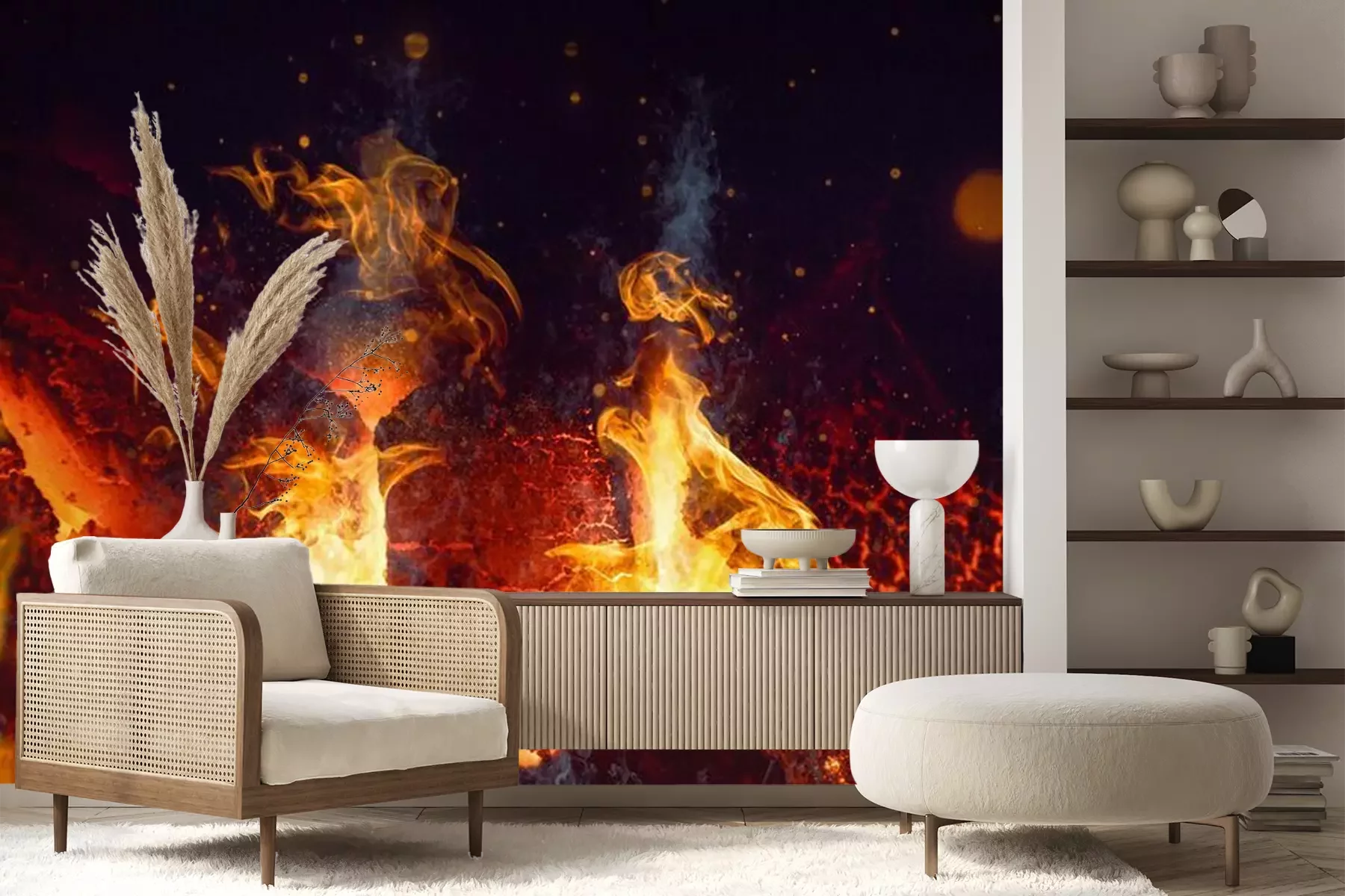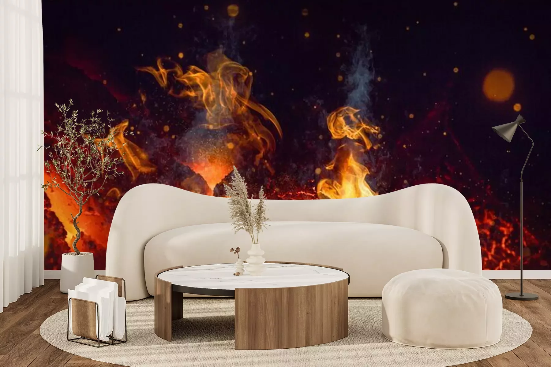 Papier peint  Feu doux du bois brûlant dans un foyer