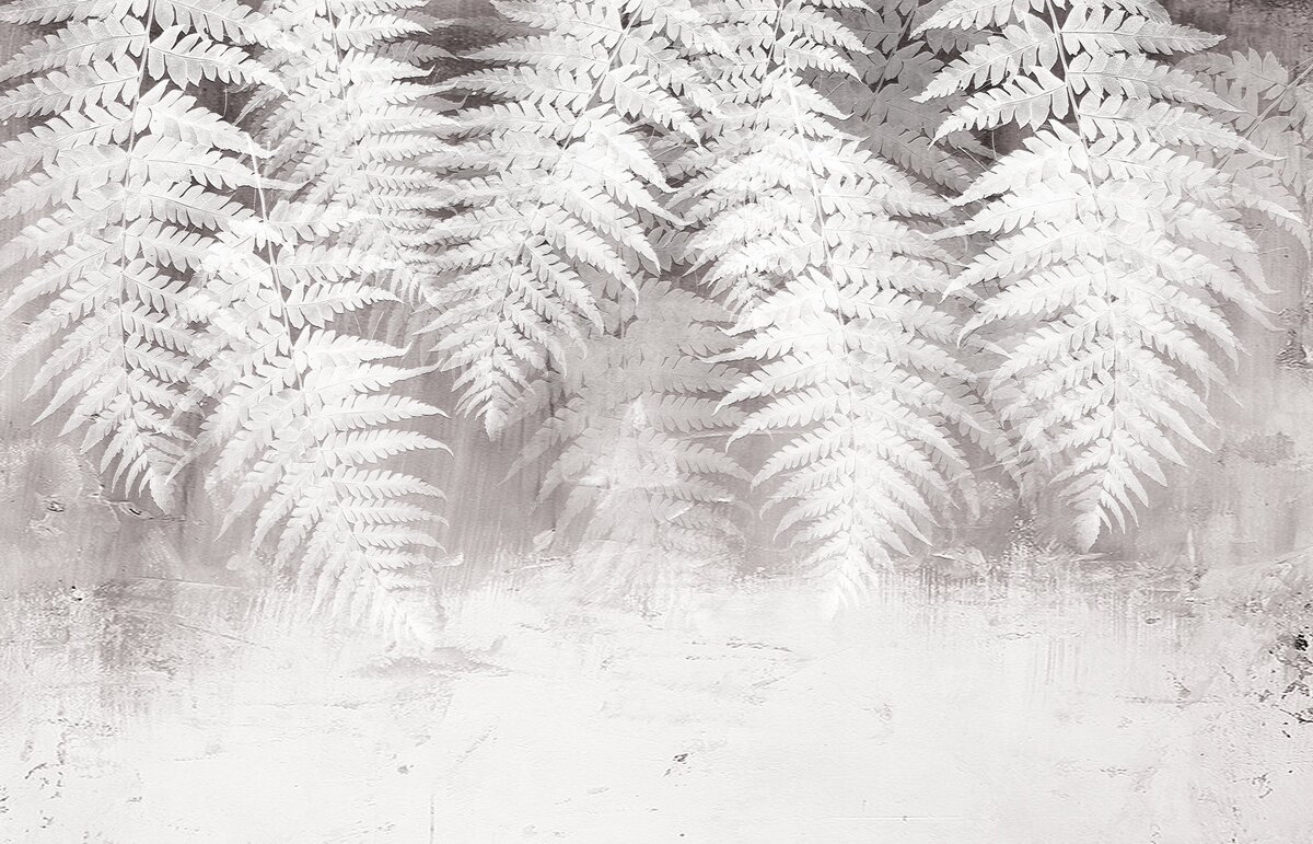 Papier peint : Feuilles de fougère blanches sur fond de béton