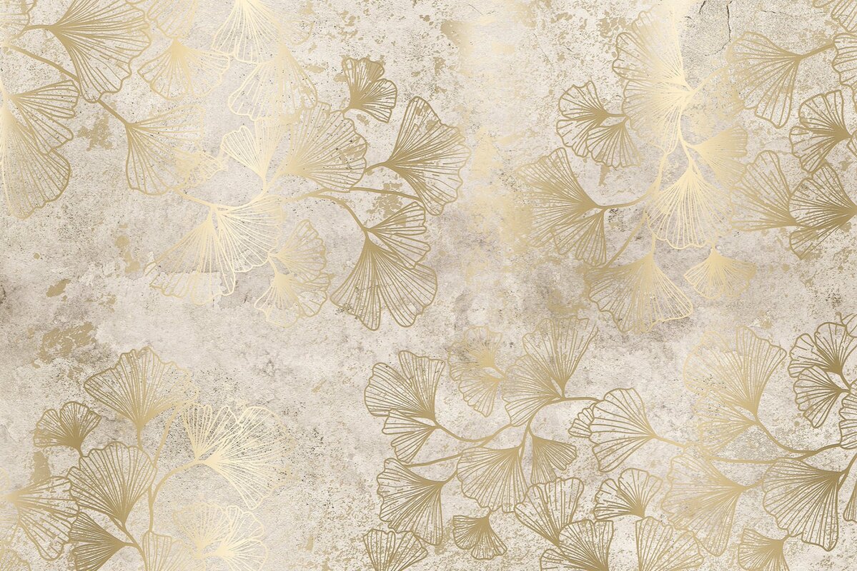 Papier peint : Feuilles de ginkgo avec décoration dorée
