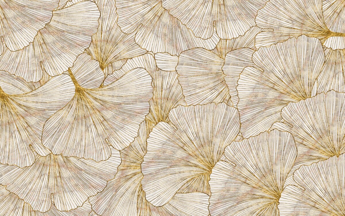 Papier peint : Feuilles de ginkgo avec éléments dorés