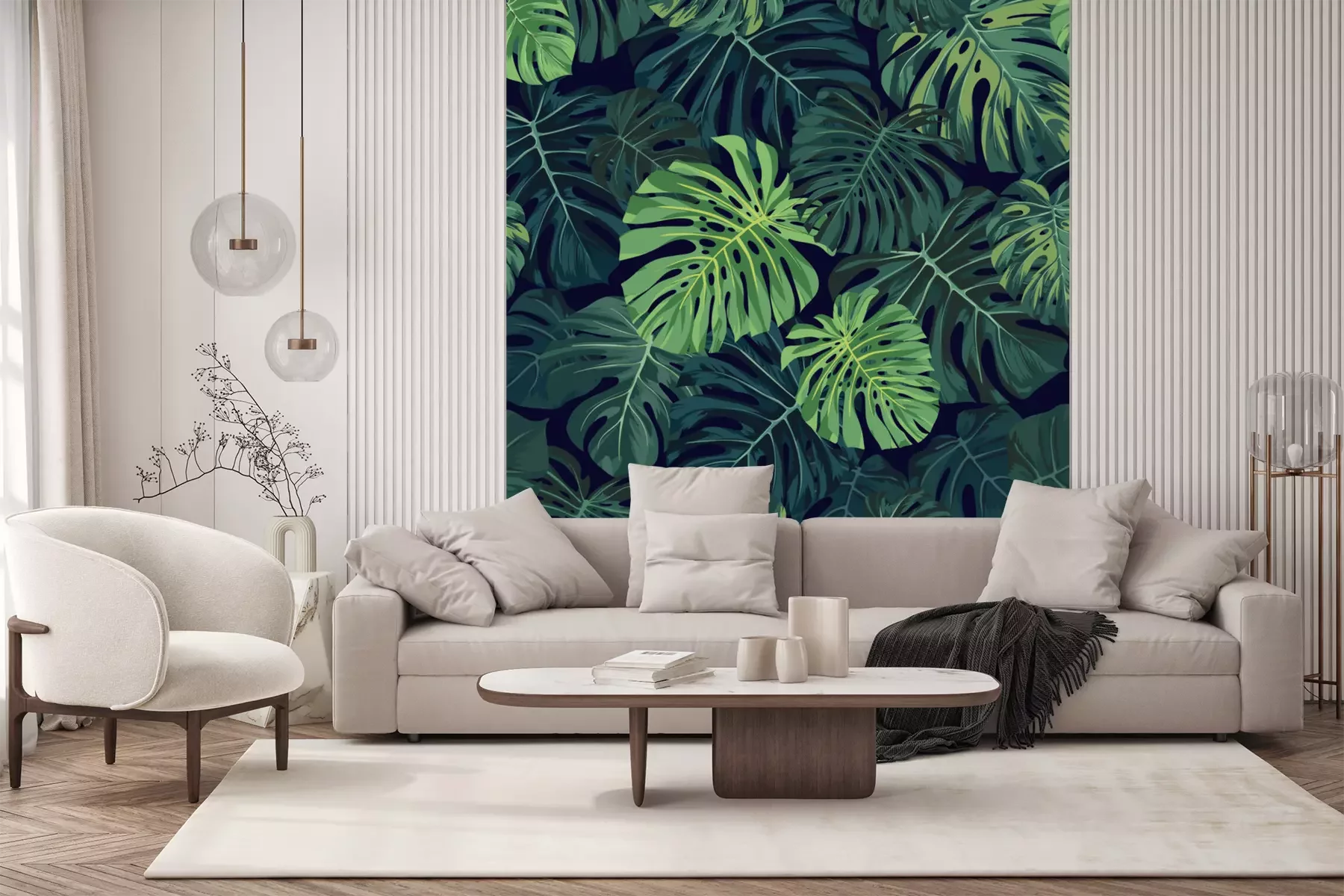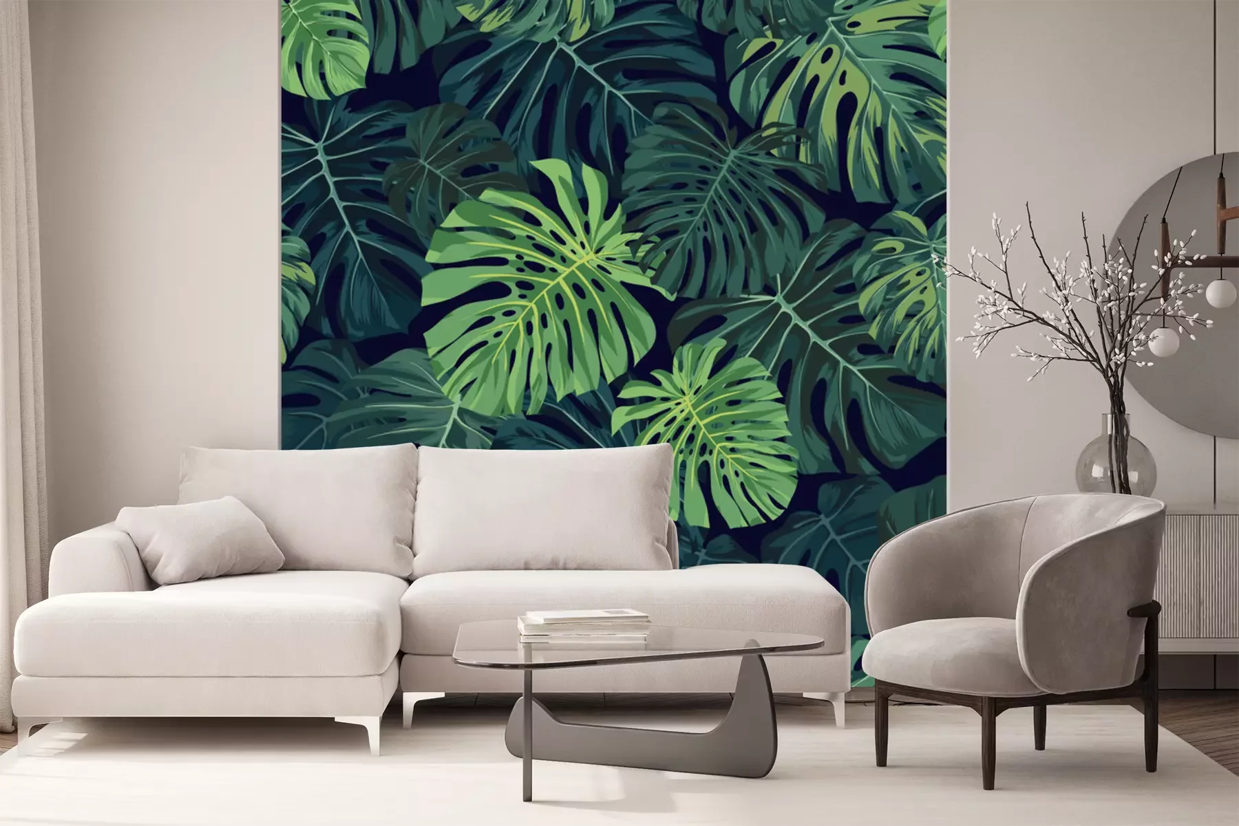 Feuilles de monstera dans deux couleursPapier peint à motif