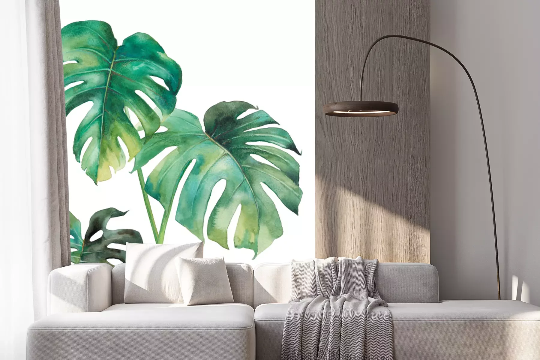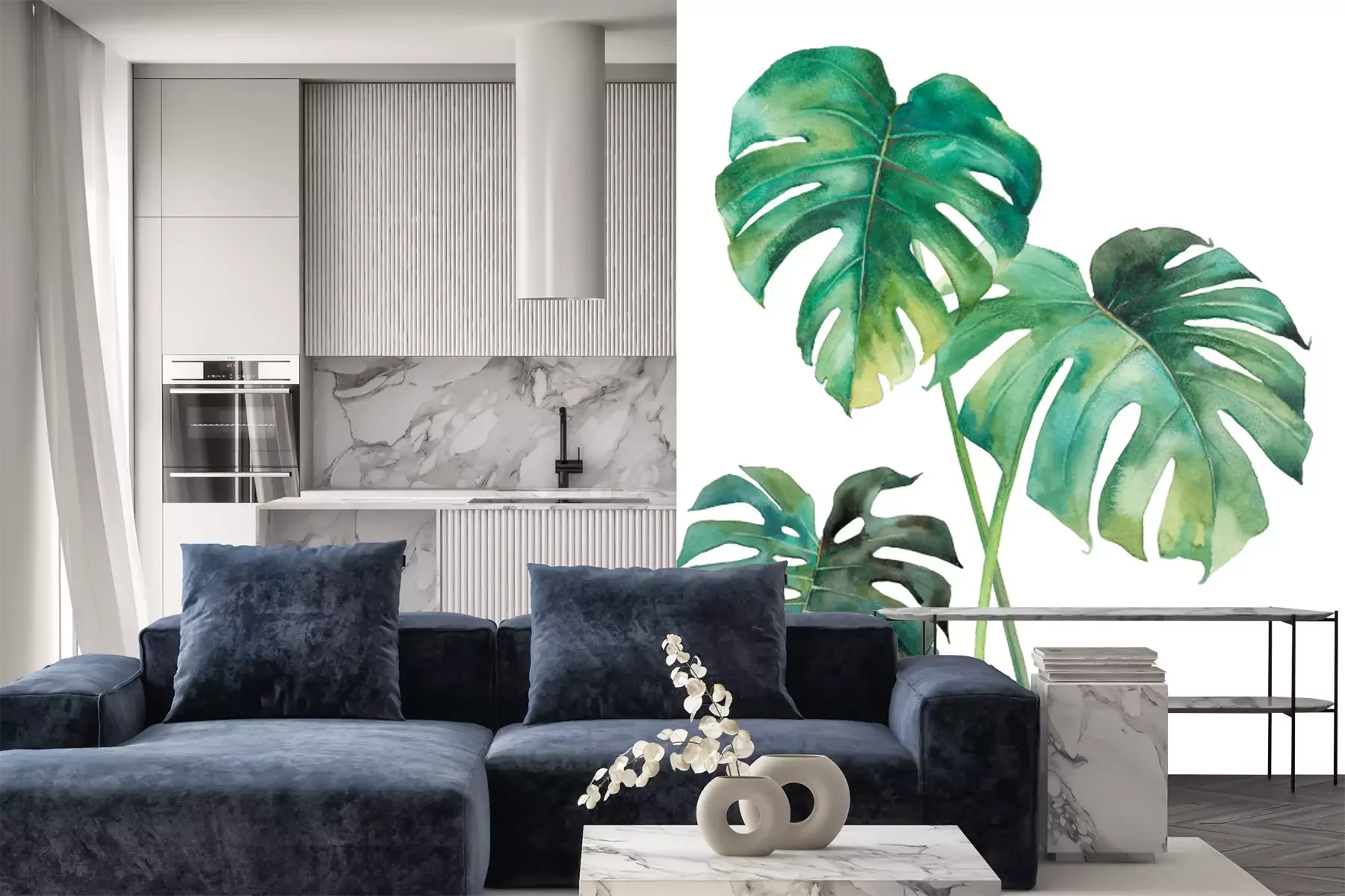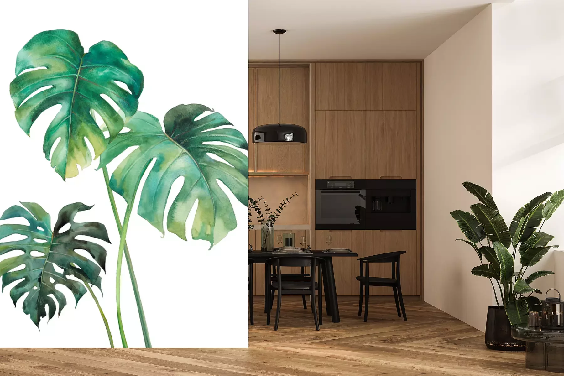 Papier peint  Feuilles de Monstera peintes à l'aquarelle